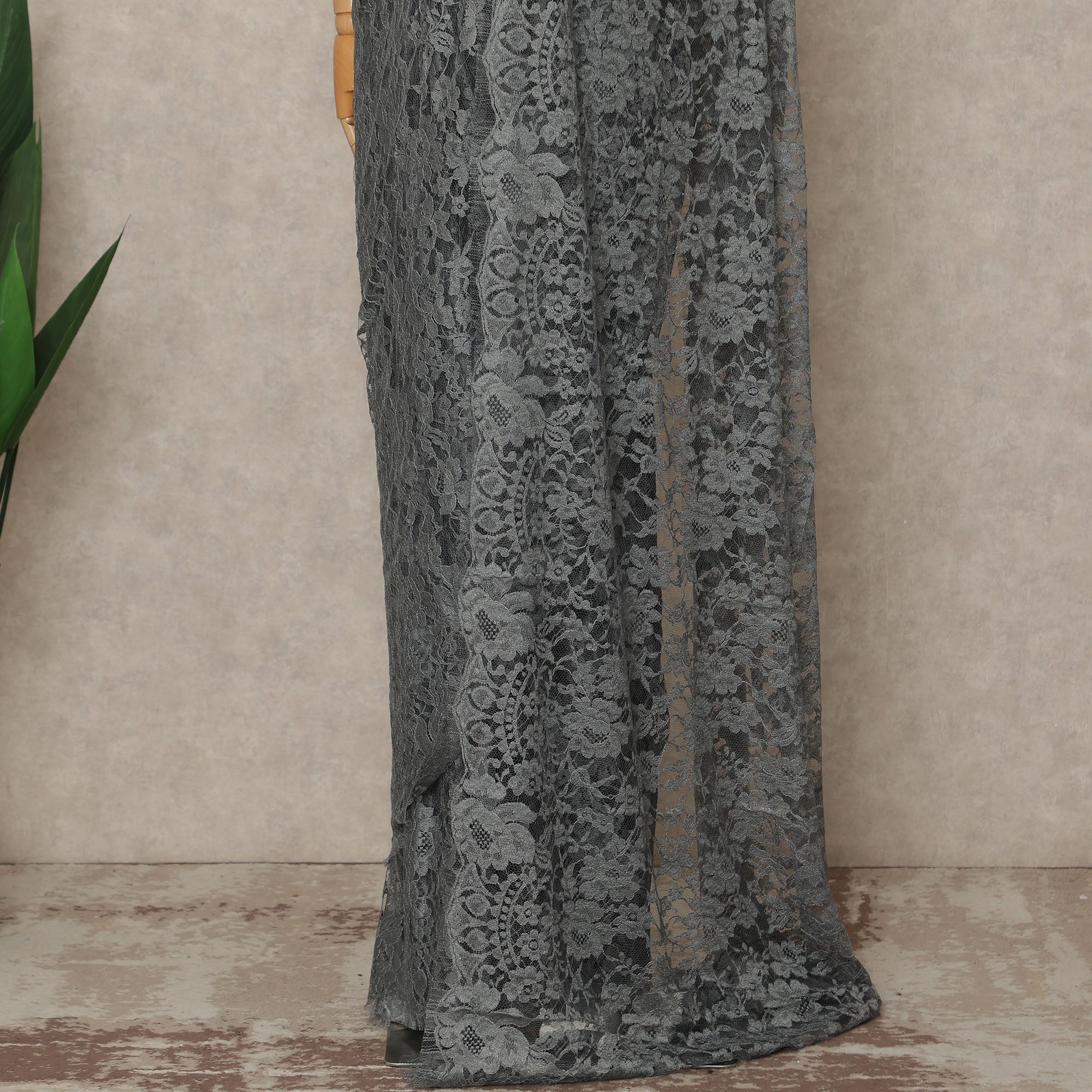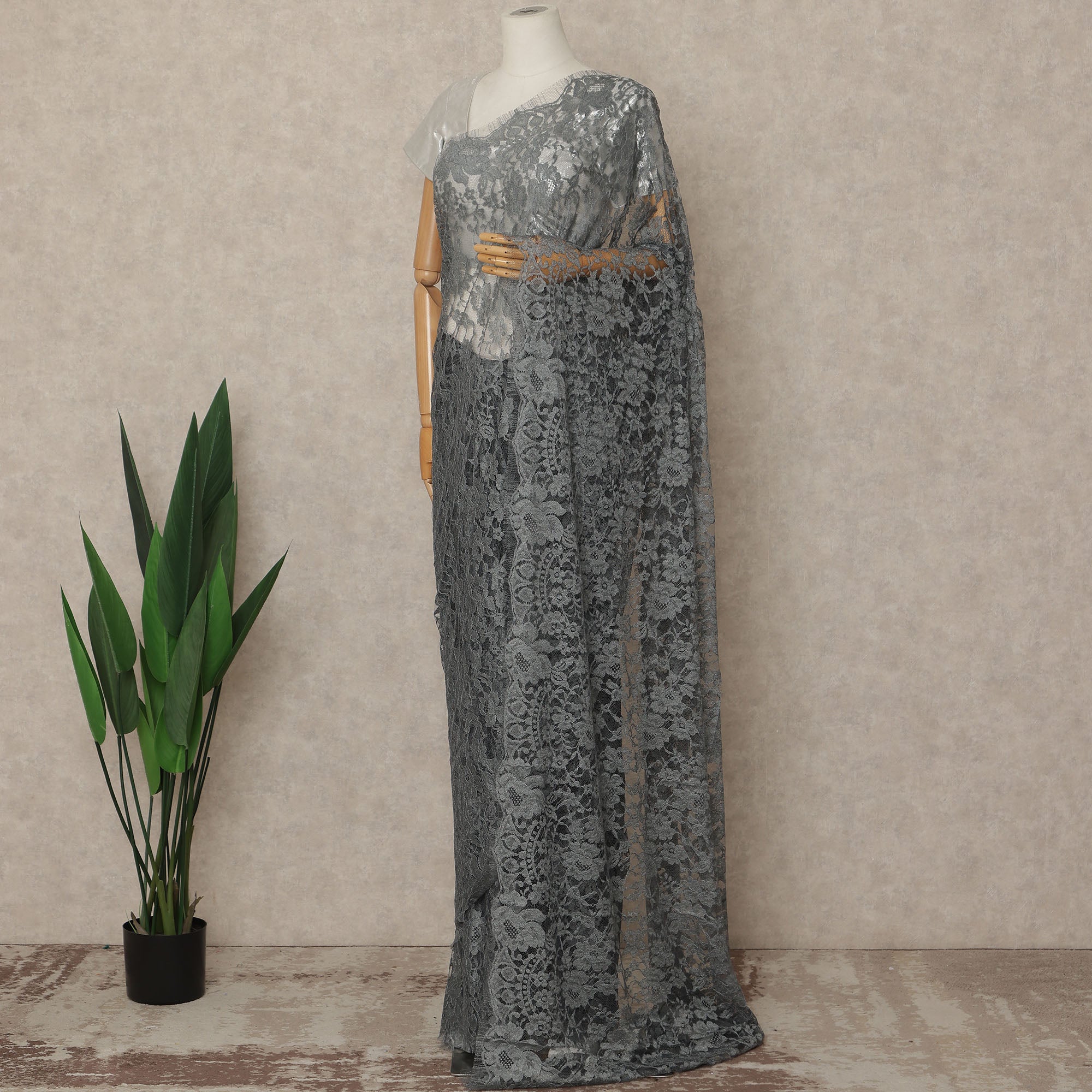 Charcoal Grey Black Premium French 2 Tone Chantilly Saree Lace Fabric 5.5 Meters x 110 Cms Width Elegant Floral Net Material From France Unstitched Blouse Not Included-D28155