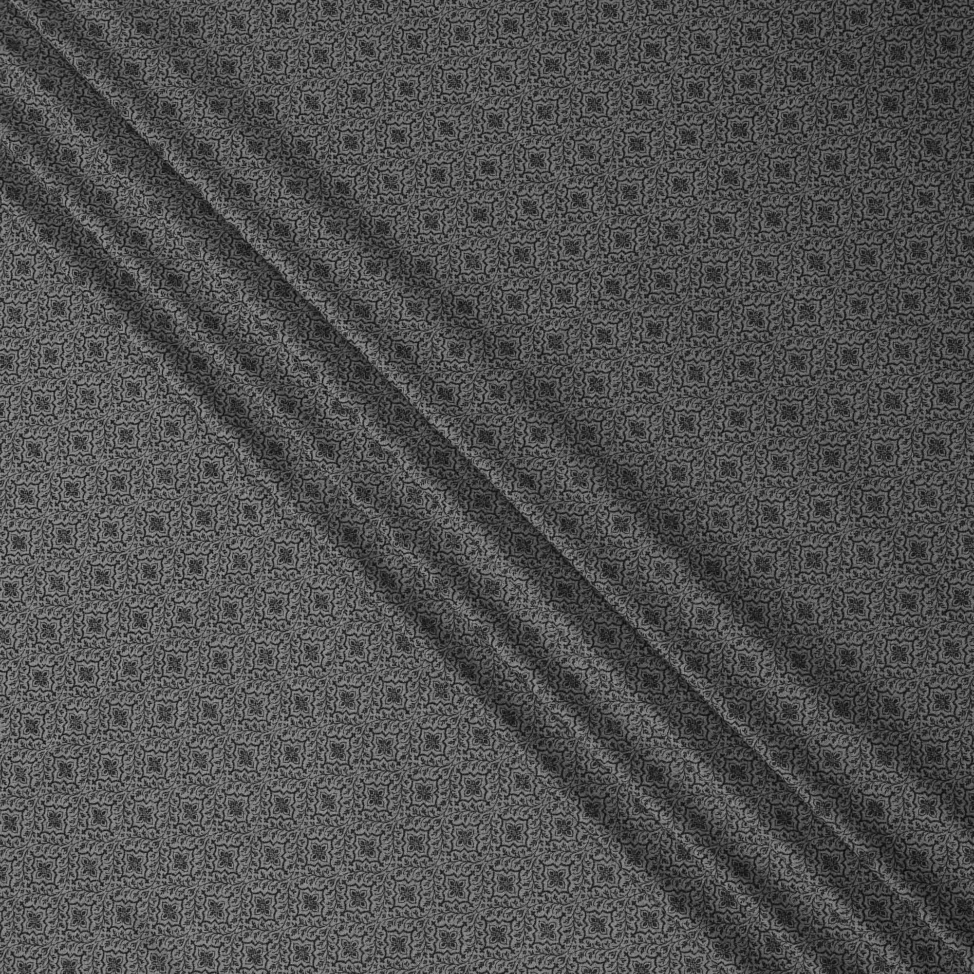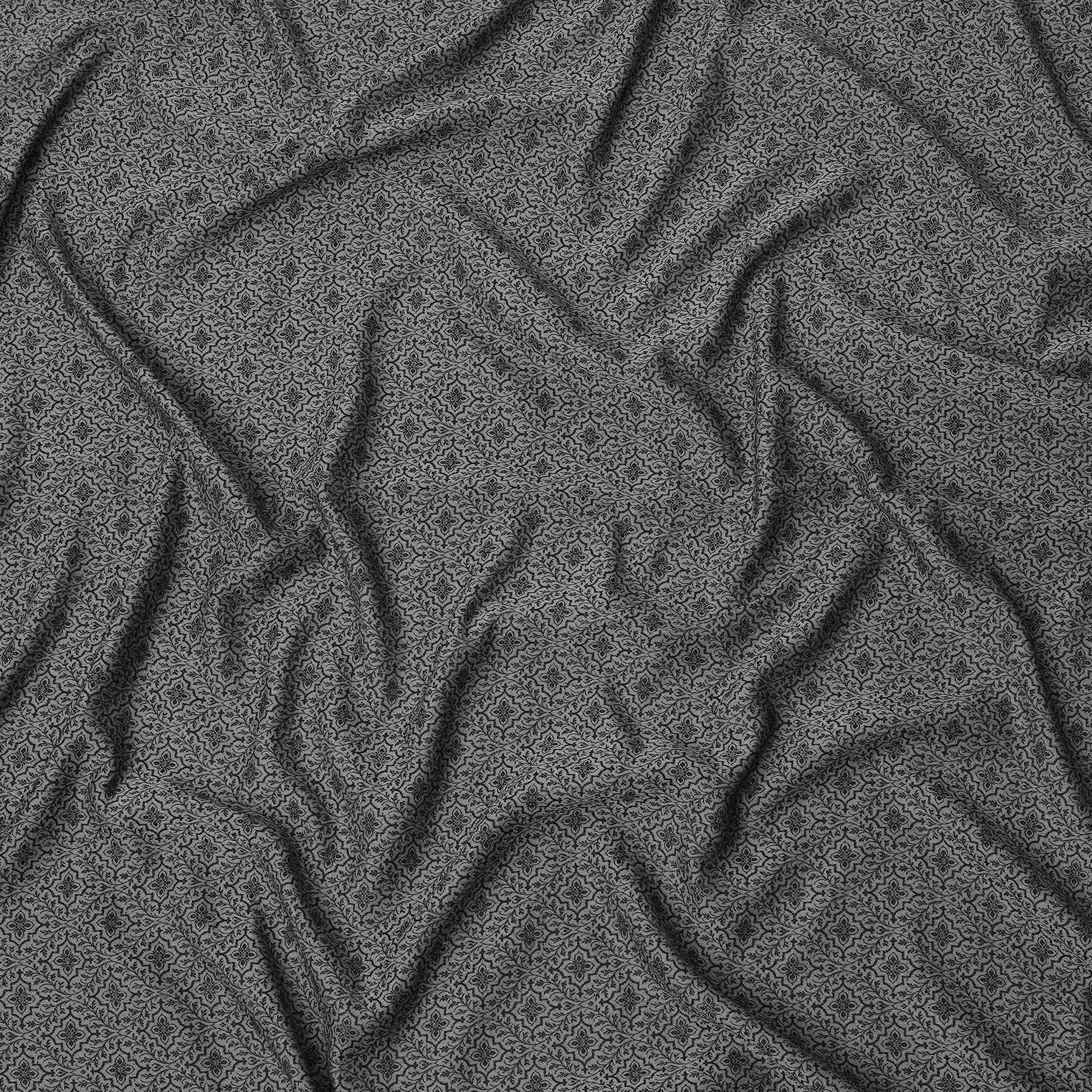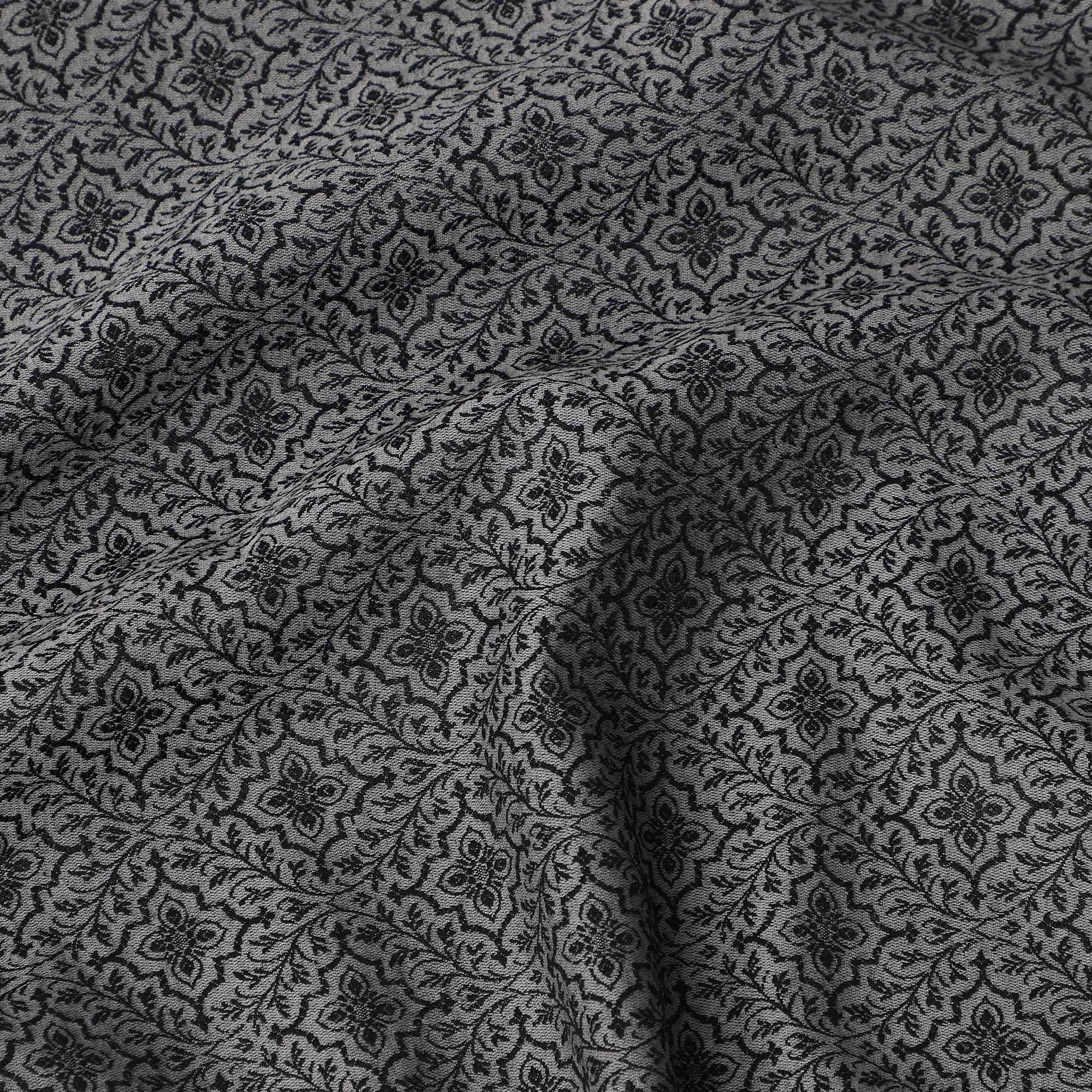 Charcoal Grey Floral Motif Self Design Synthetic Cotton Fabric, 140 Cms, India-D25380