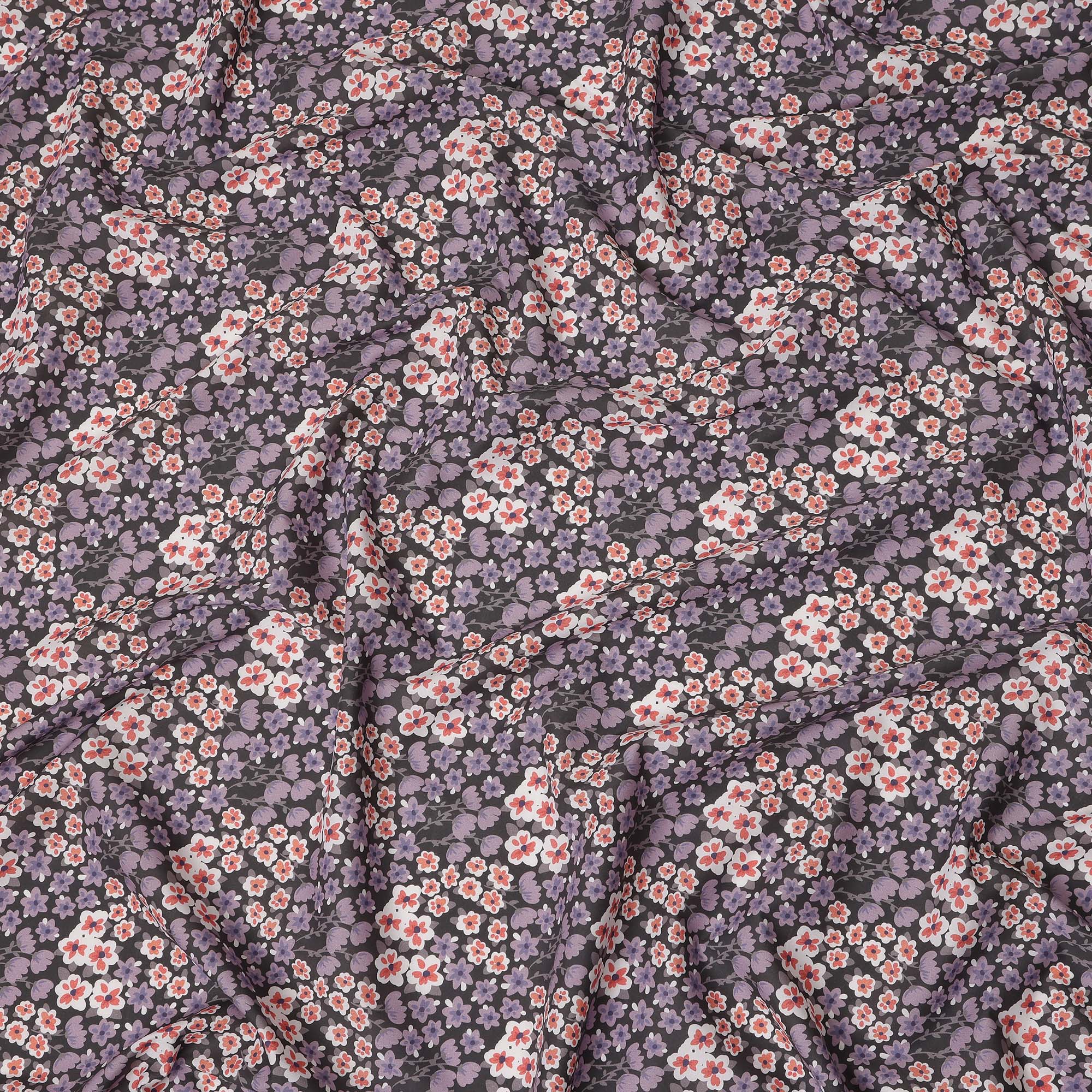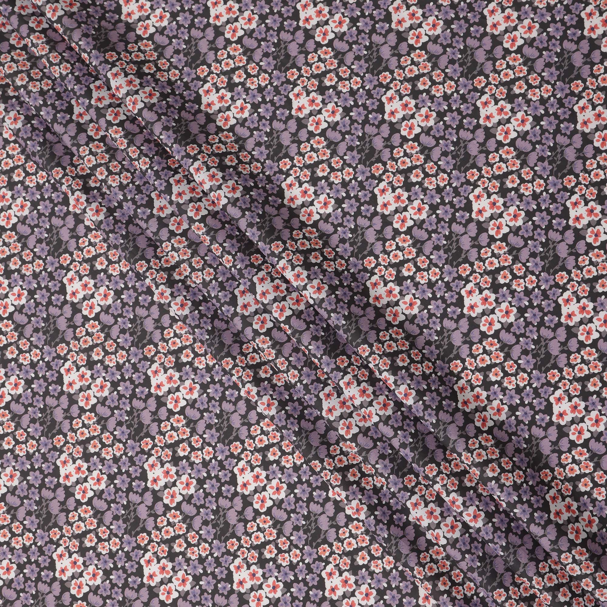This charcoal grey floral printed cotton voile fabric is a soft, lightweight, and breathable textile crafted for designers, tailors, and... Read more Read more