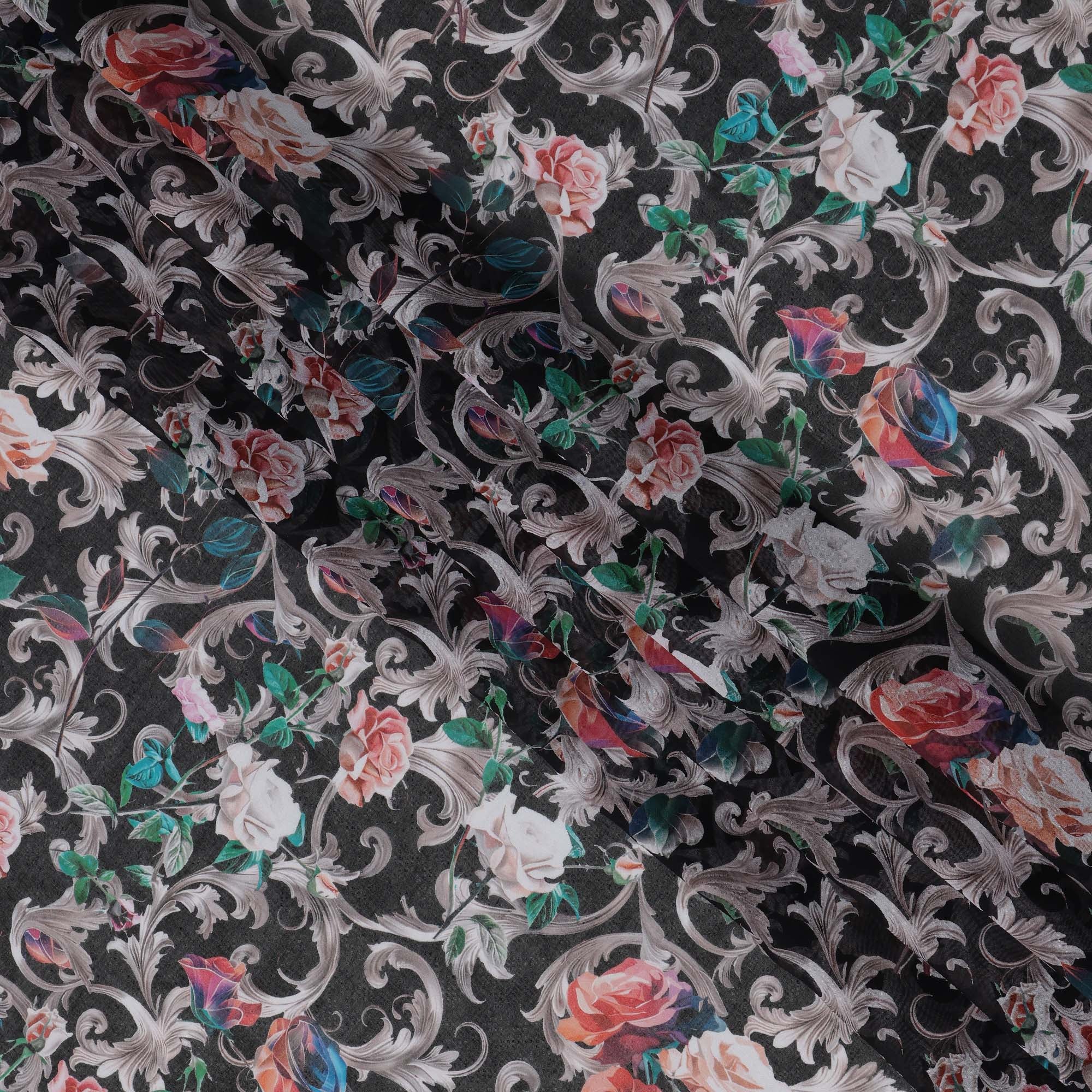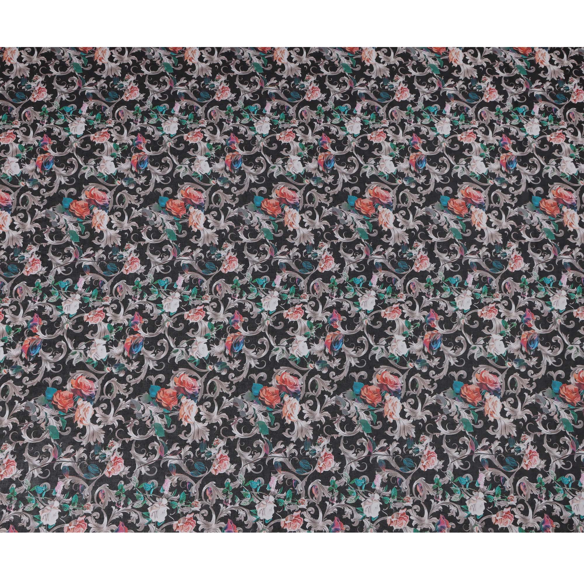 Charcoal grey base enhanced with vibrant floral and vine print for visual richness.