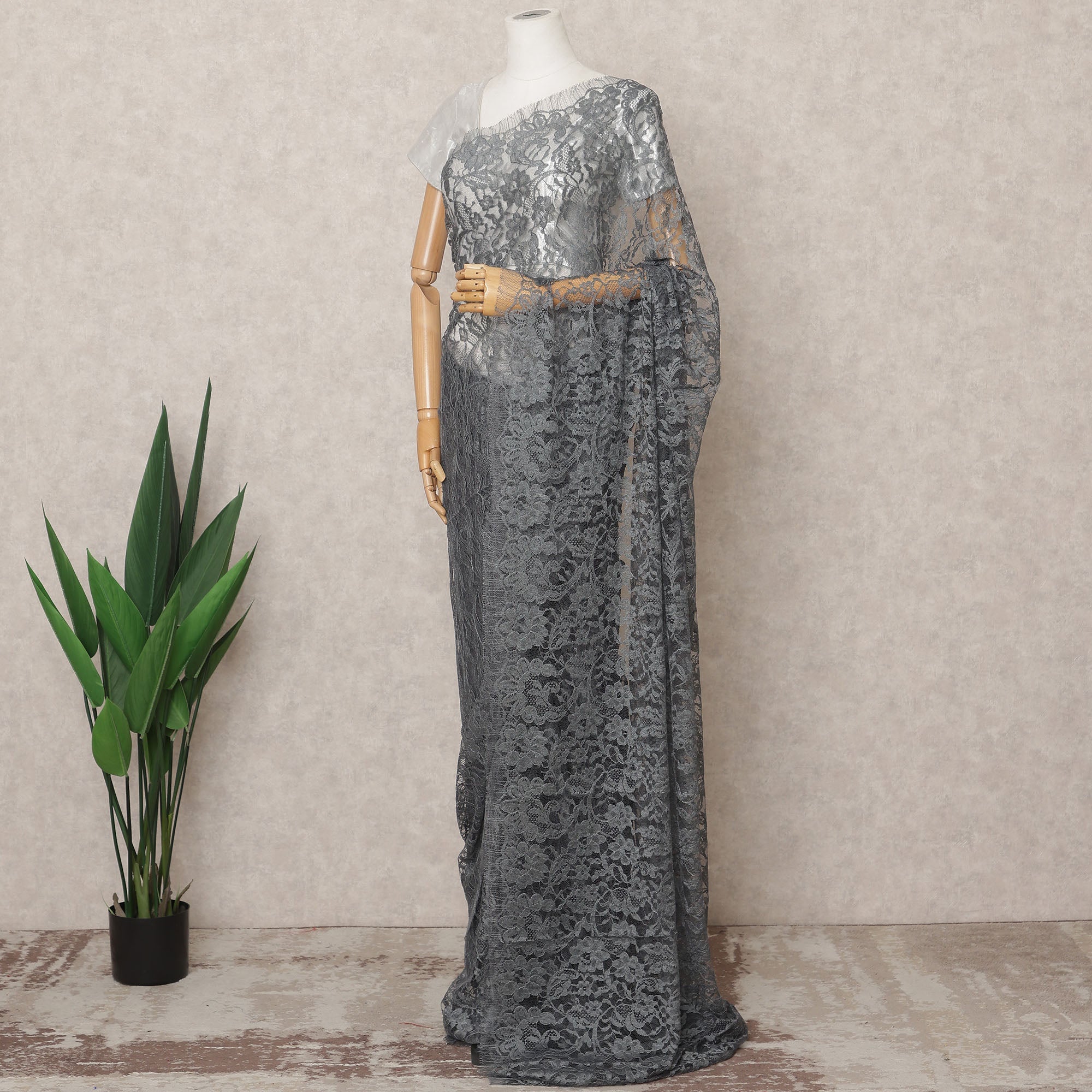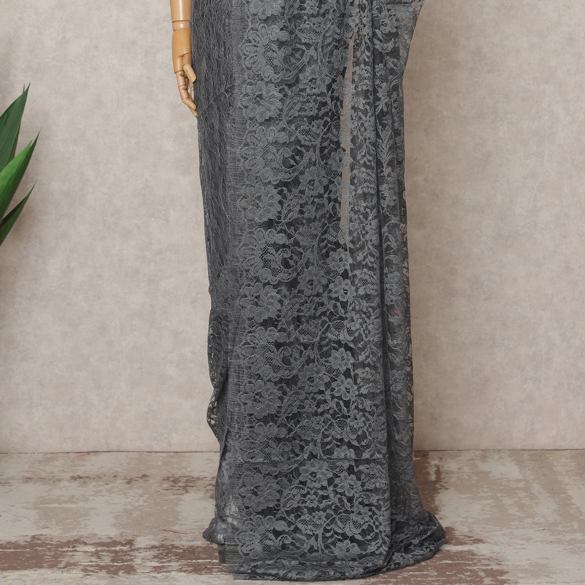Charcoal Grey Premium French Chantilly Lace Saree Fabric 5.5 Mtrs with 110 Cms Width – Imported from France-D25638