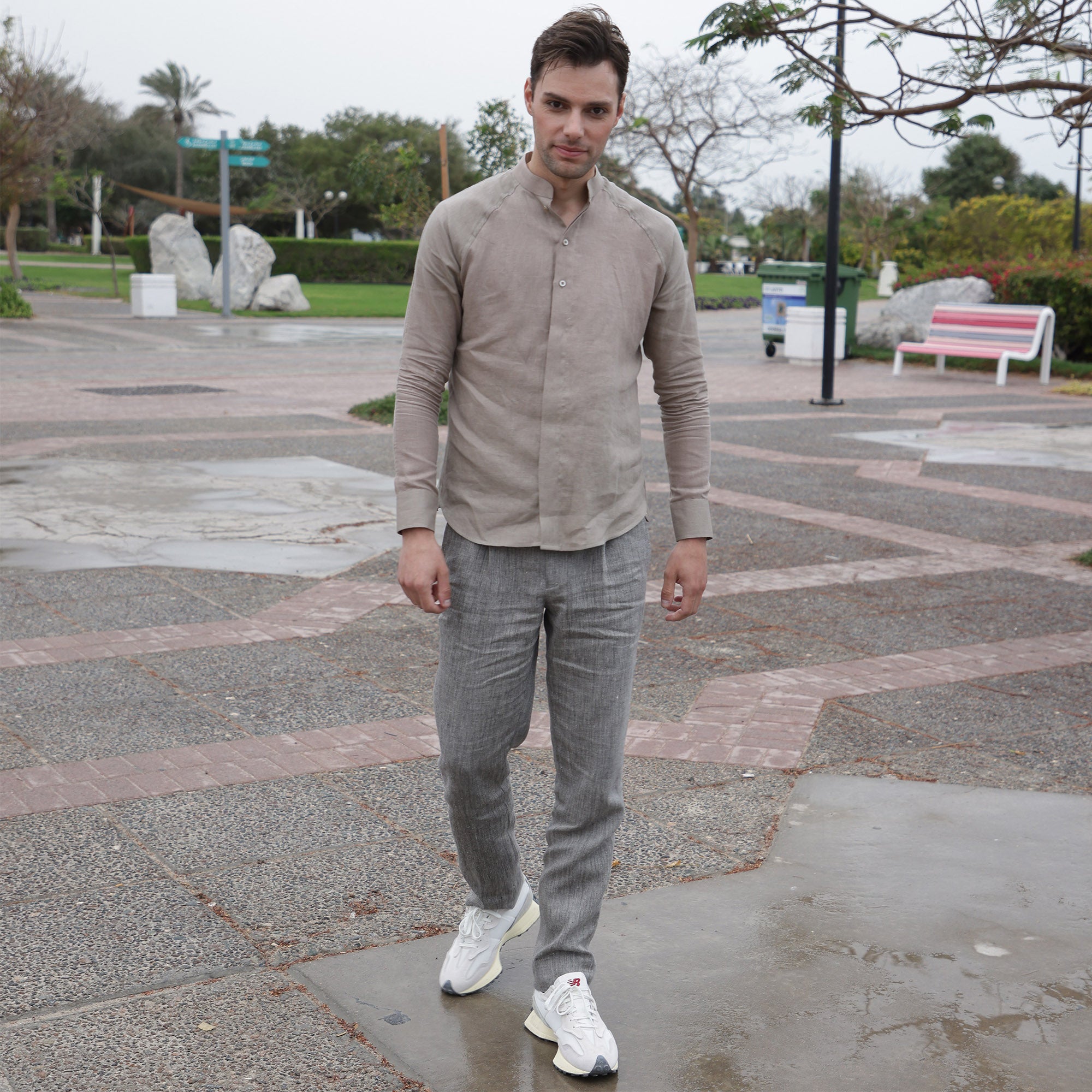 Elevate your wardrobe with the Charcoal Grey Premium Pure Linen Trouser, a perfect blend of sophistication and comfort. Expertly crafted in the UAE using 100% pure linen, this trouser offers unmatched breathability and a lightweight feel, ideal for warm climates and year-round wear. The refined charcoal grey shade enhances its versatility, seamlessly pairing with both formal and casual ensembles. Designed with a tailored fit, pleated front, and premium button detailing, it delivers a structured yet comfortable silhouette. Precision stitching and superior fabric quality reflect a legacy of craftsmanship, ensuring durability and elegance in every wear. Whether styled for a business-casual look or relaxed outings, this linen trouser embodies effortless luxury and timeless appeal.
