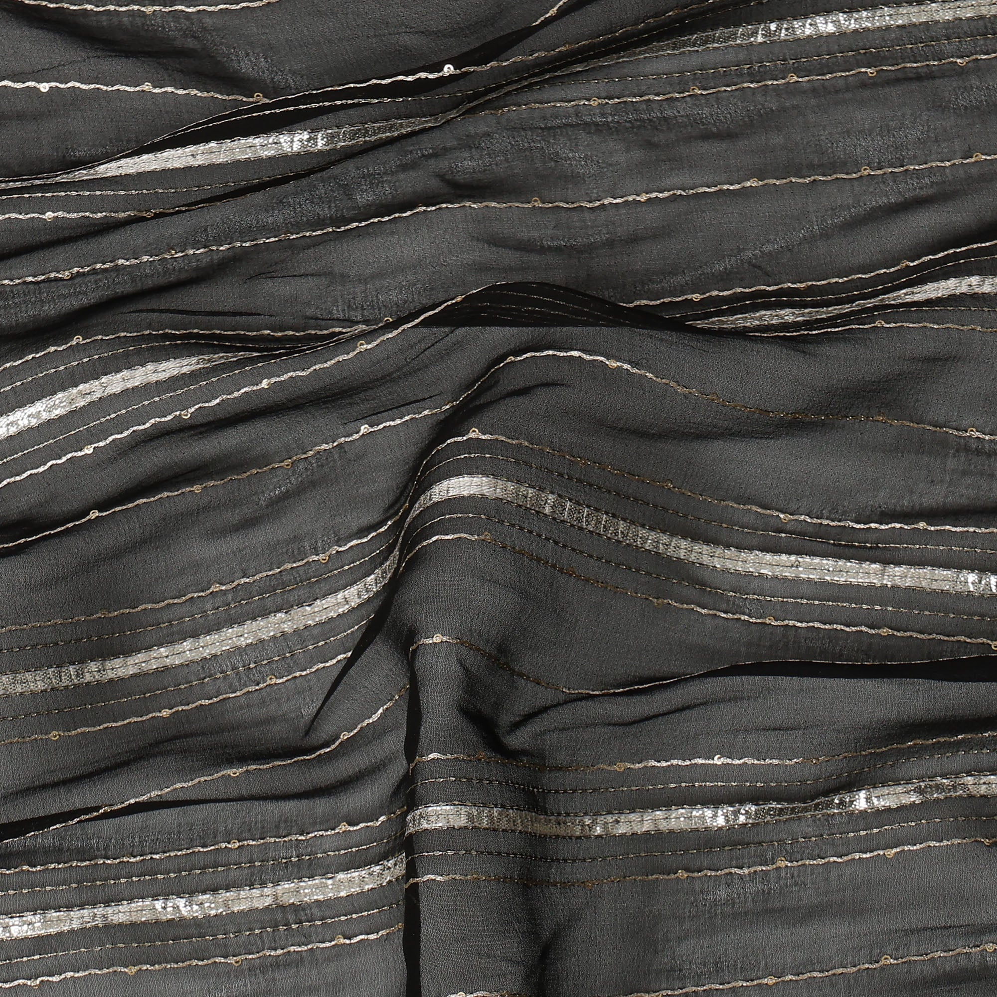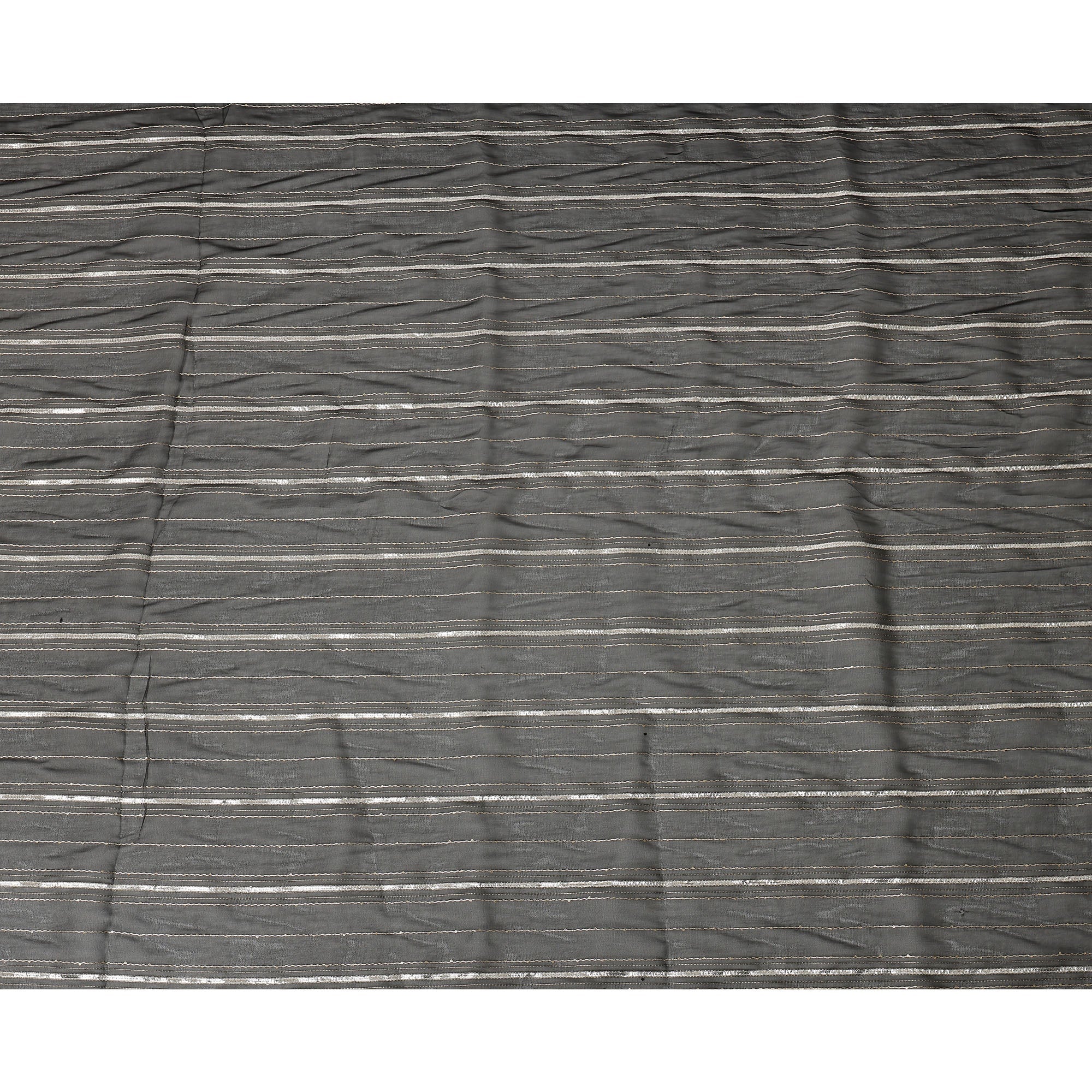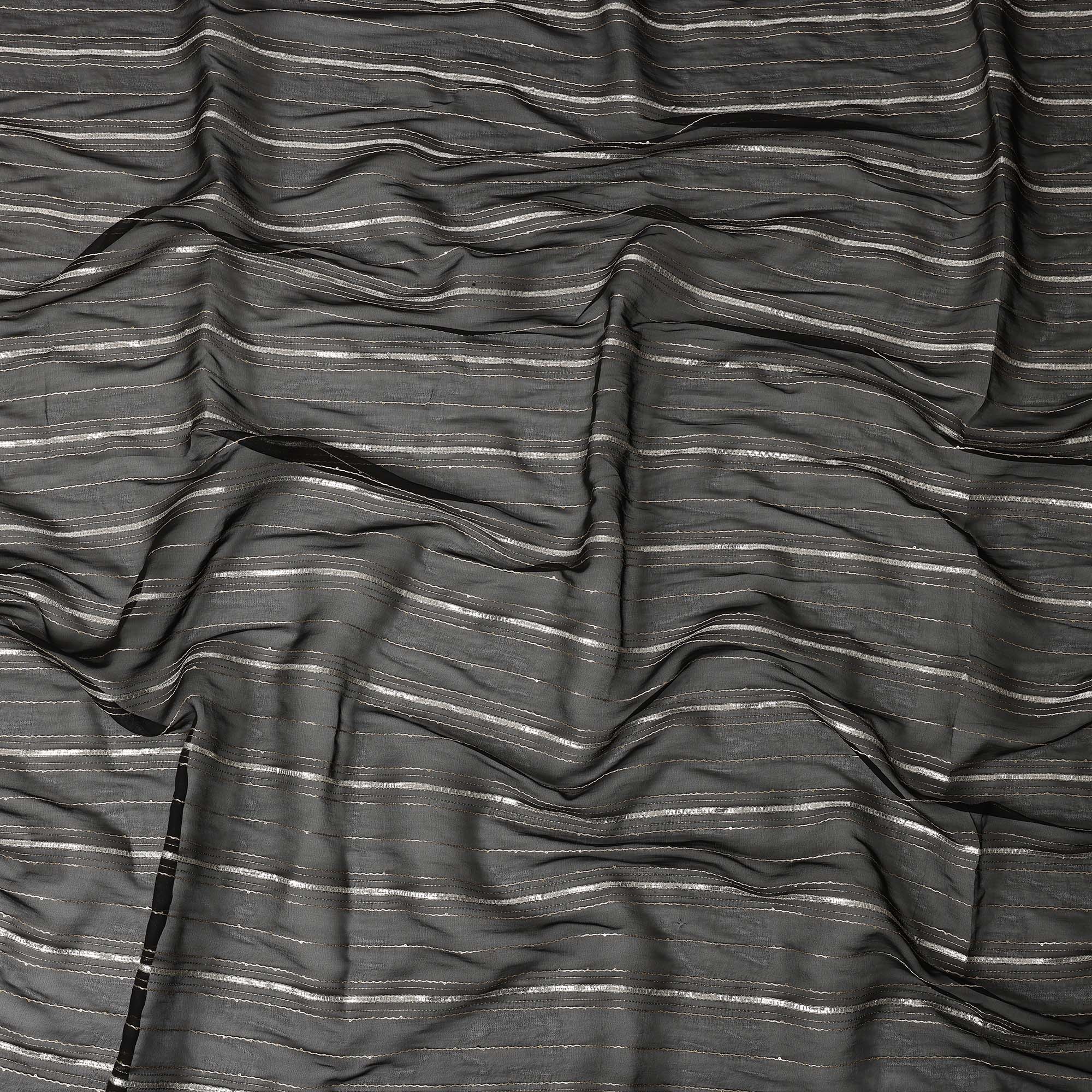 Charcoal Silver Zari Striped Synthetic Georgette Chiffon Fabric, 110 Cms Width, Made in India-D26204