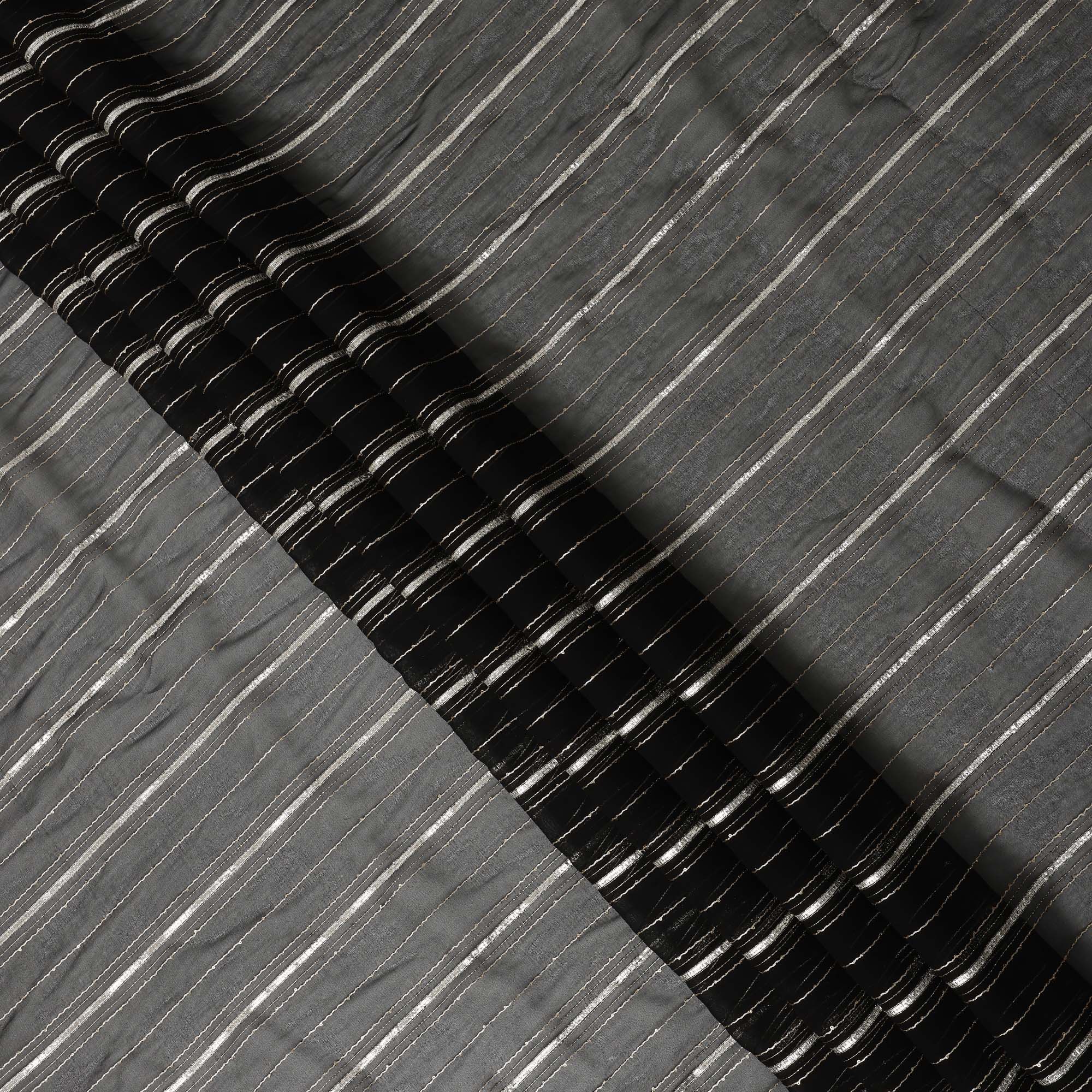 Charcoal base enhanced with elegant silver zari stripes for a rich finish