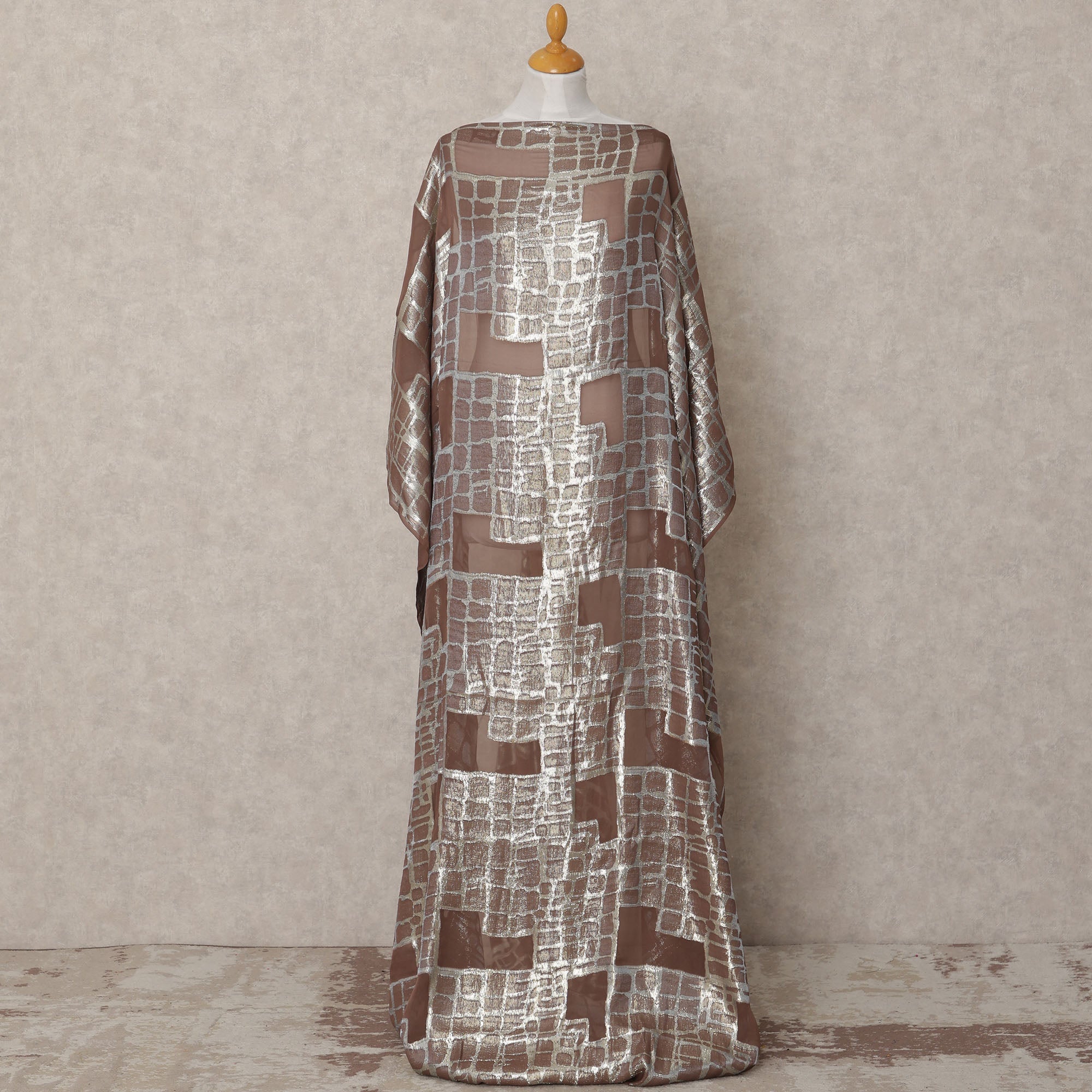 Chocolate Brown Metallic Somali Chiffon Dirac with Silver Lurex Grid Design, 3.5 Mtrs, Width 140 Cms, Made in South Korea-D24027