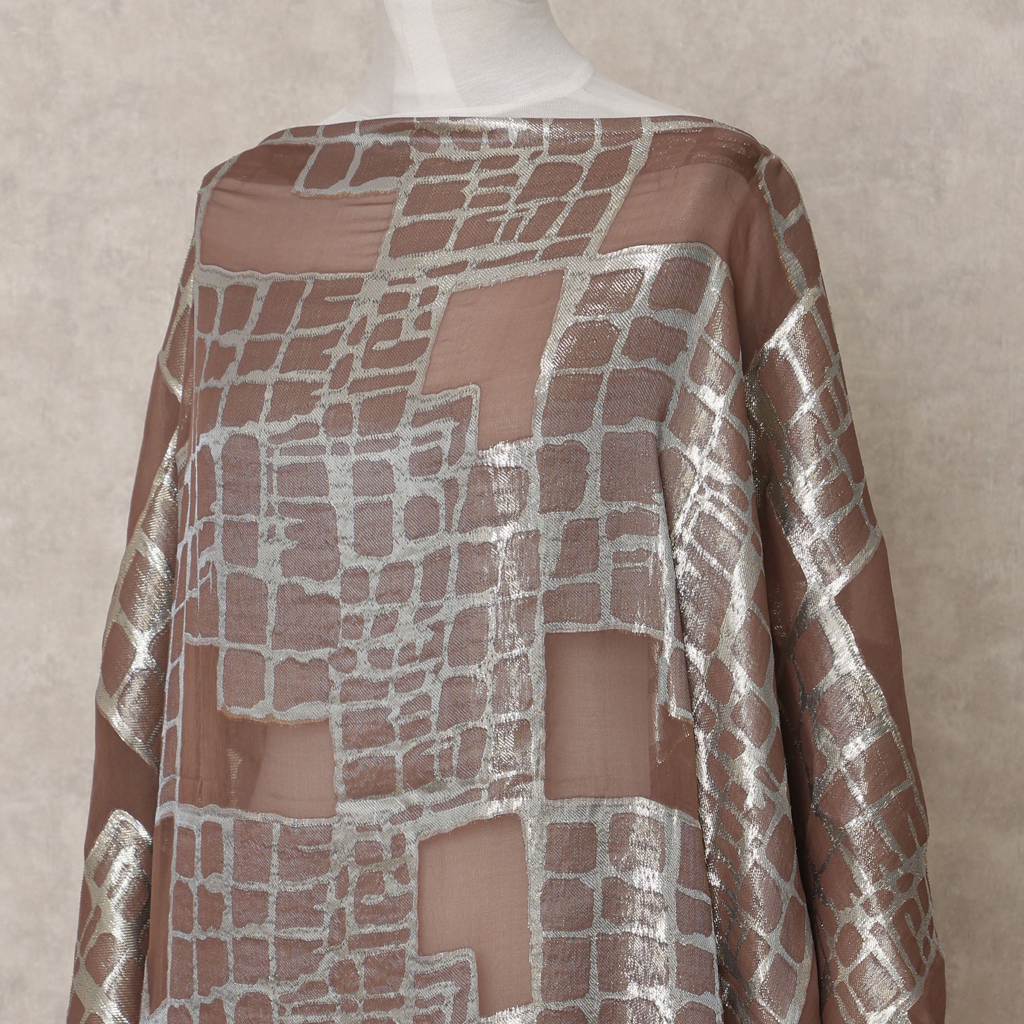 Rich chocolate brown silk chiffon with radiant silver lurex accents