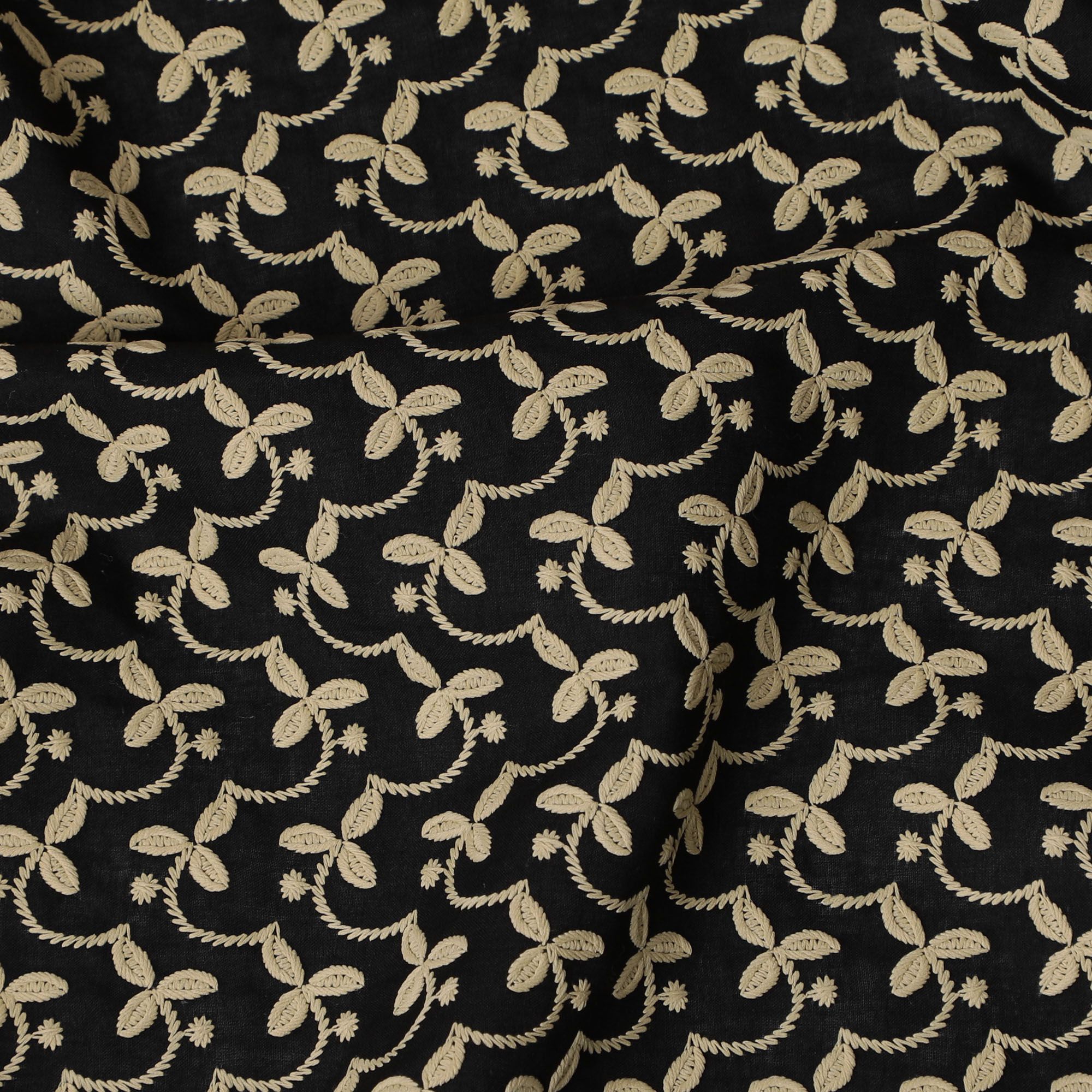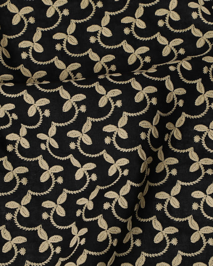 Classic Ebony and Gold Paisley Embroidered Cotton Lawn Fabric, 110cm Wide - Available by the Meter-D18866