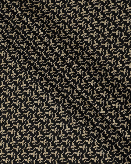Enrich your fabric collection with the timeless elegance of our Classic Ebony and Gold Paisley Embroidered Cotton Lawn Fabric. This stunning textile is 110 cm wide and crafted with precision in India. It features an ebony black base exquisitely embroidered with golden paisley patterns, a design that evokes a sense of regal charm and sophistication. The light and airy cotton lawn is perfect for creating statement pieces such as elegant dresses, sophisticated blouses, or chic accessories. Sold by the Meter, it allows for custom lengths to perfectly suit your sartorial endeavors.