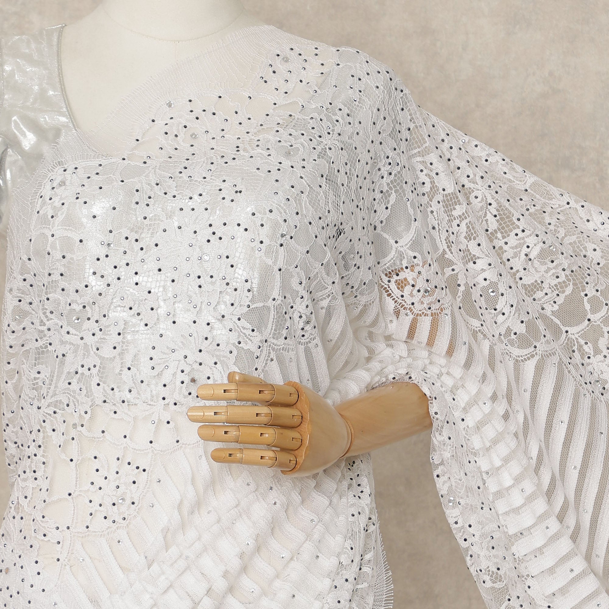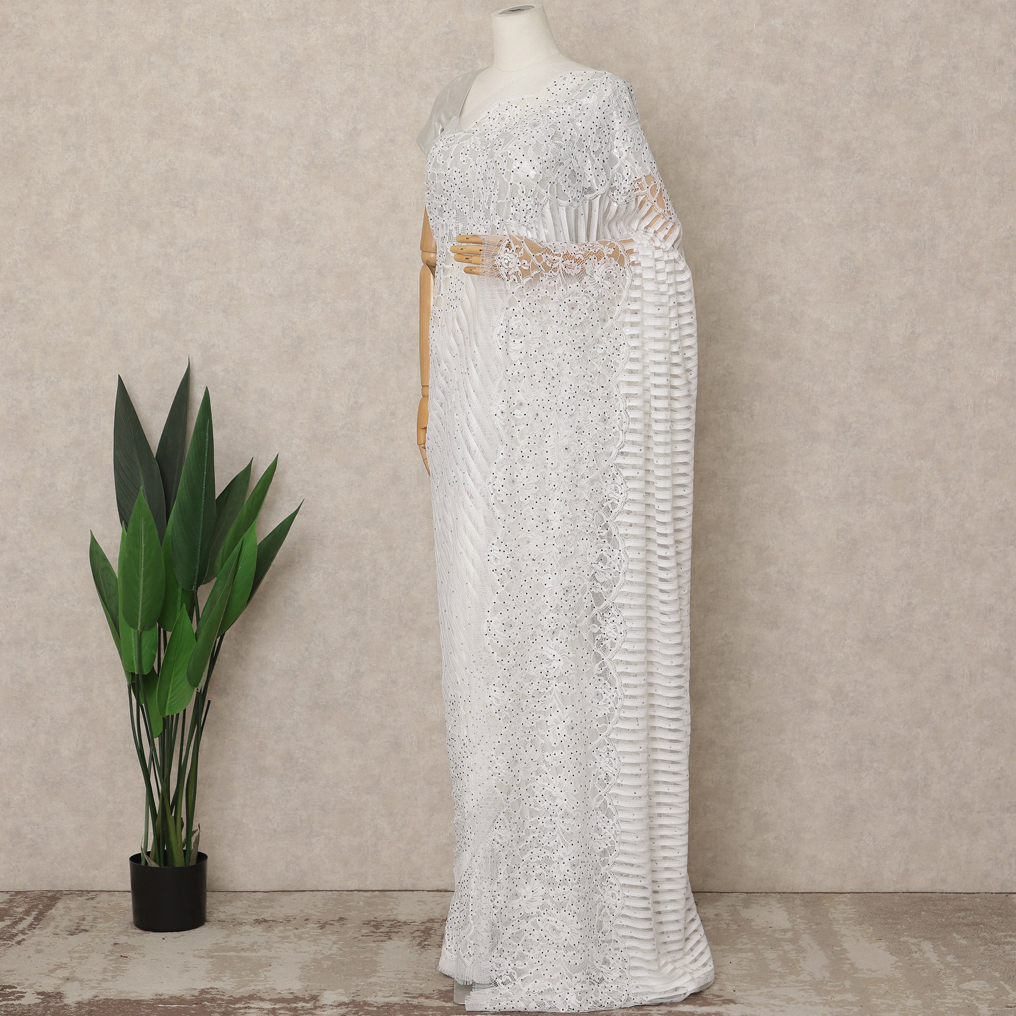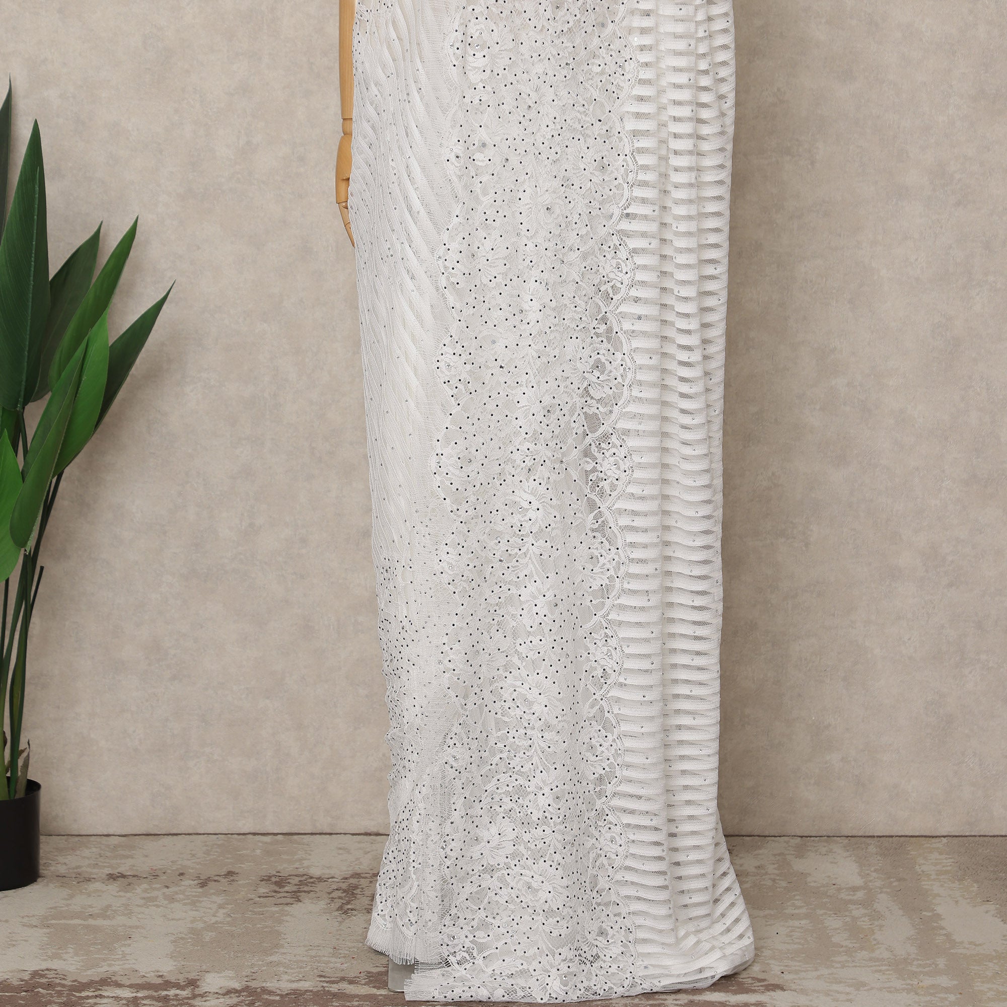 Classic White Premium French Chantilly Saree Lace with Stone Work 5.5 Mtrs Length, Width 110 Cms and Made in France-D27177