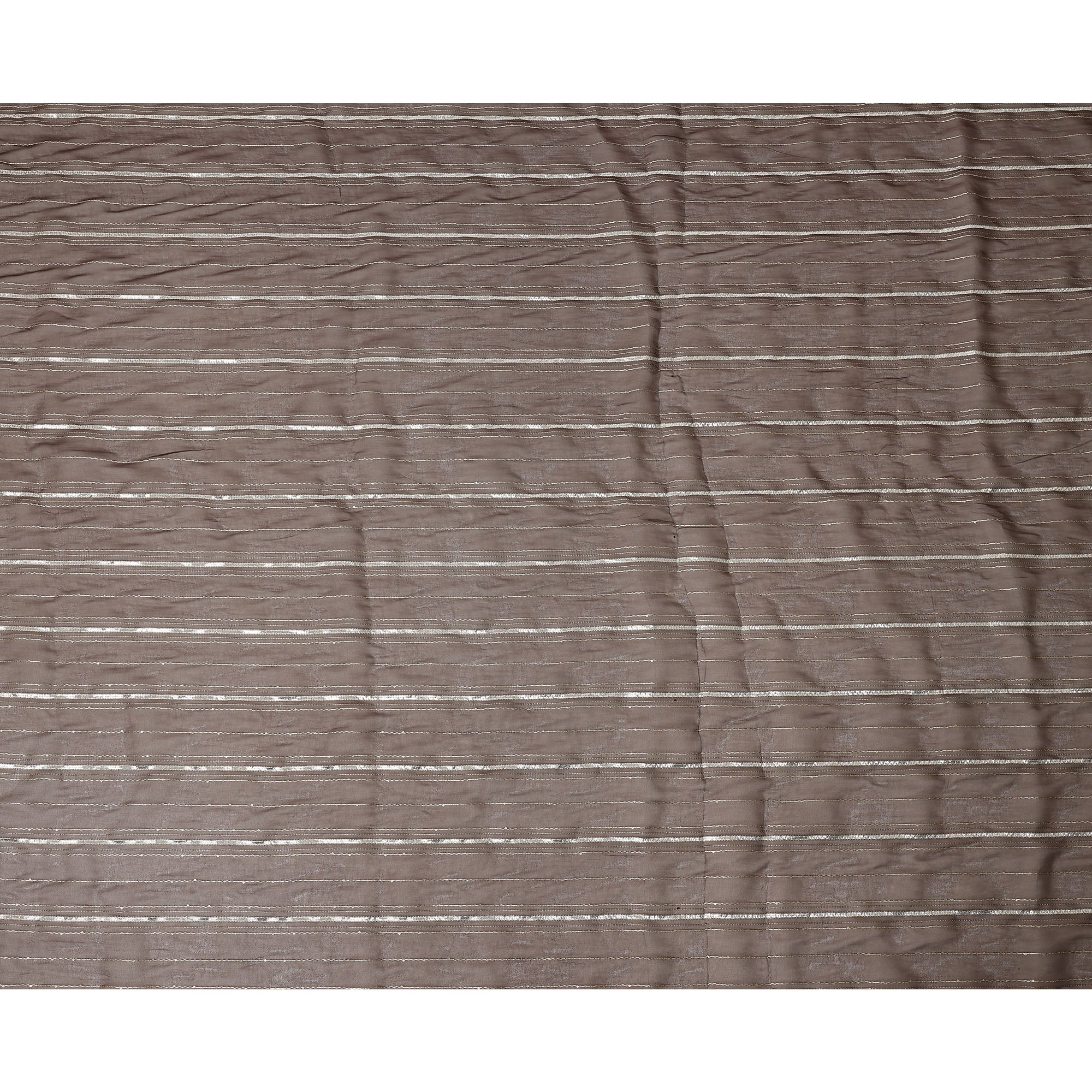 Coffee Brown Silver Zari Striped Synthetic Georgette Chiffon Fabric, 110 Cms Width, Made in India-D26197