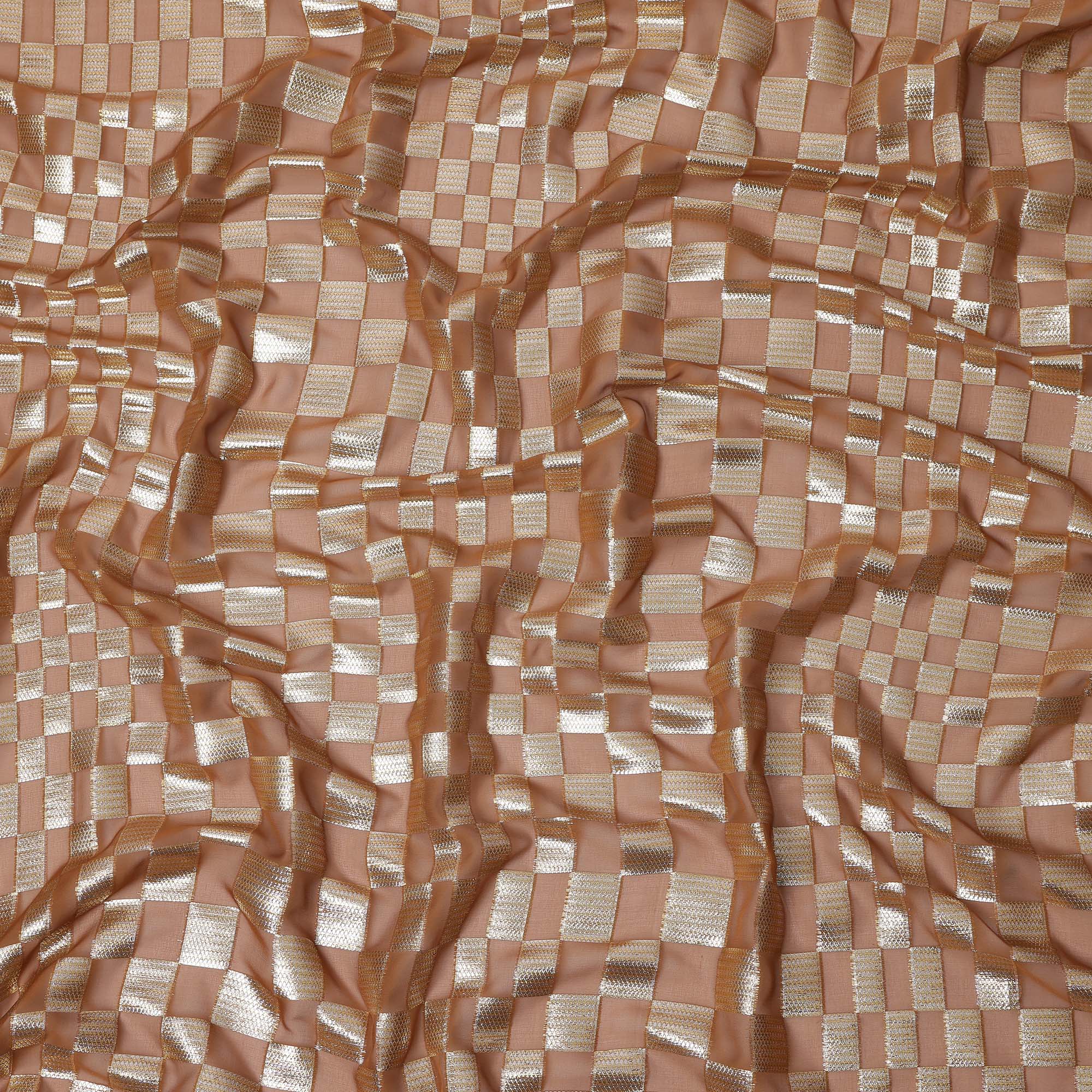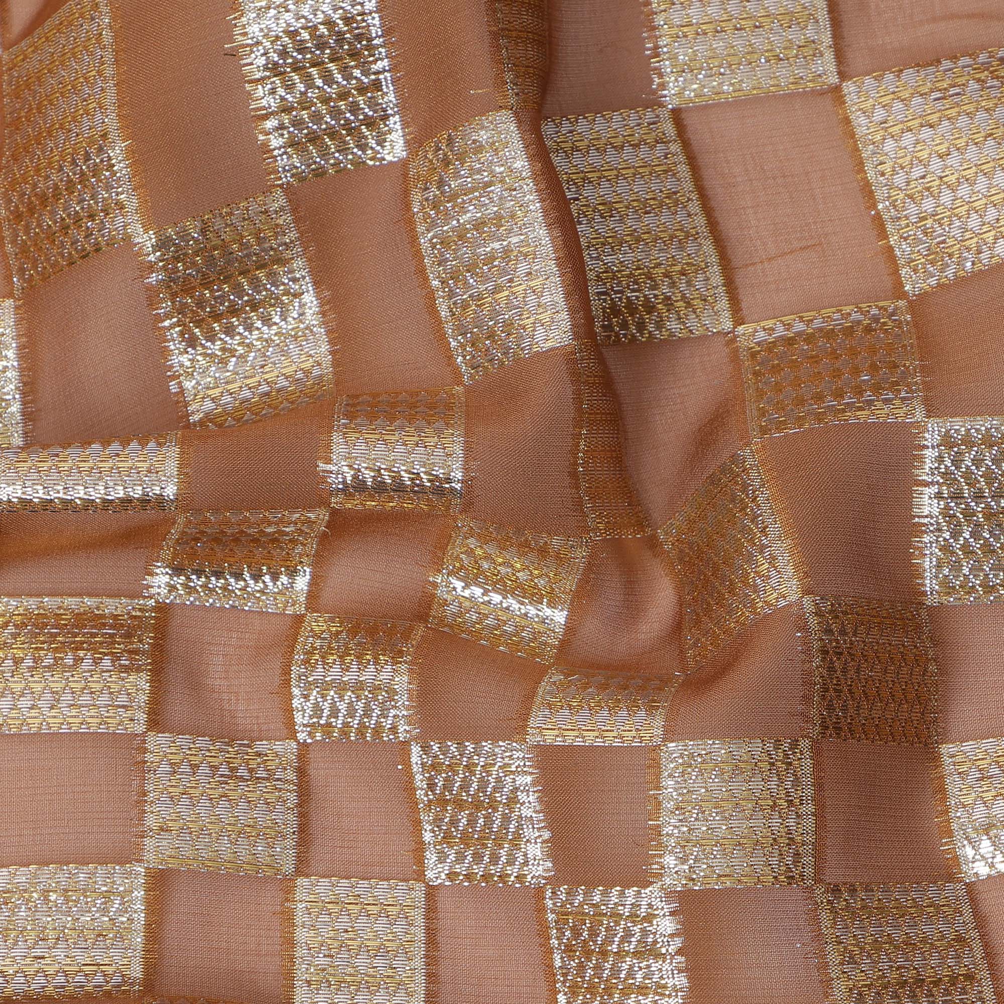 Copper Brown Geometric Check Silk Chiffon Fabric with Metallic Lurex 110 Cms Width South Korea-D24987