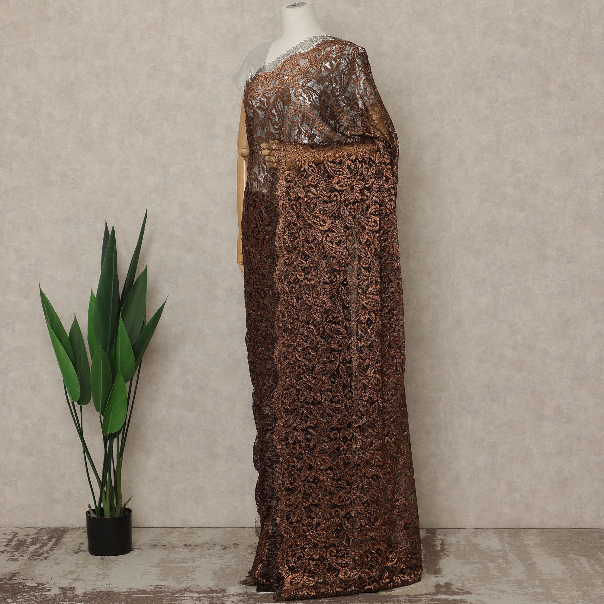 Copper Brown Premium French Metallic Chantilly Saree Lace, 5.5 Mtrs Length, 110 Cms Width, Crafted in France -Blouse Not Included-D26725