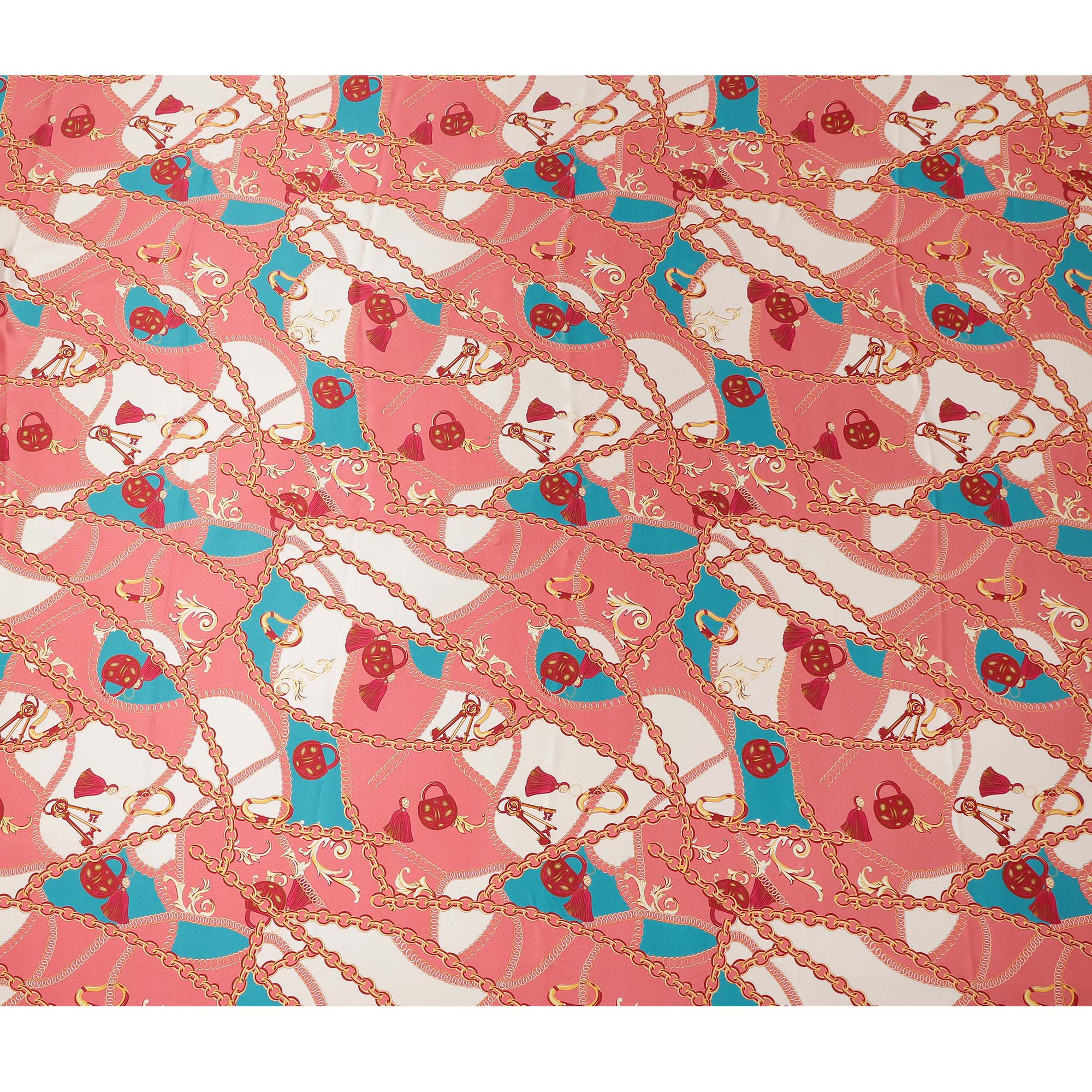 Coral Chain Print Premium Pure Silk Satin Fabric Smooth Lustrous Designer Finish 140 Cms Width, 3.5 Mtrs Piece and Made in Italy-D27188