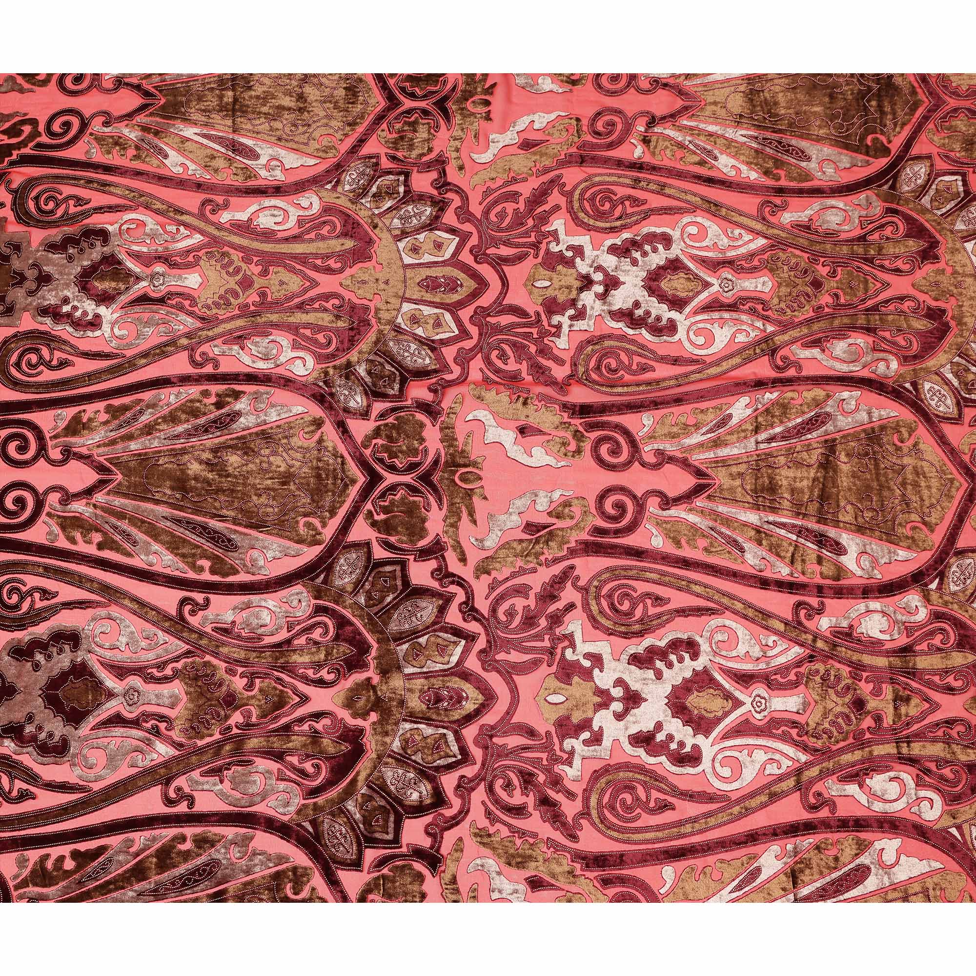 Vibrant coral pink base with brown ornamental paisley print offers a rich traditional look.