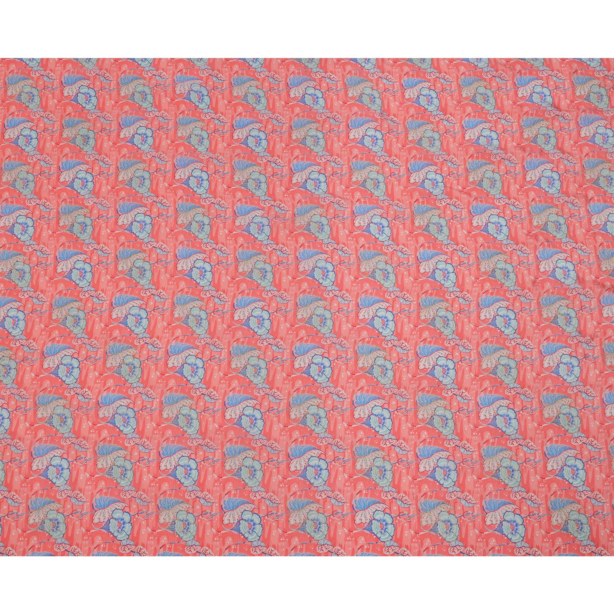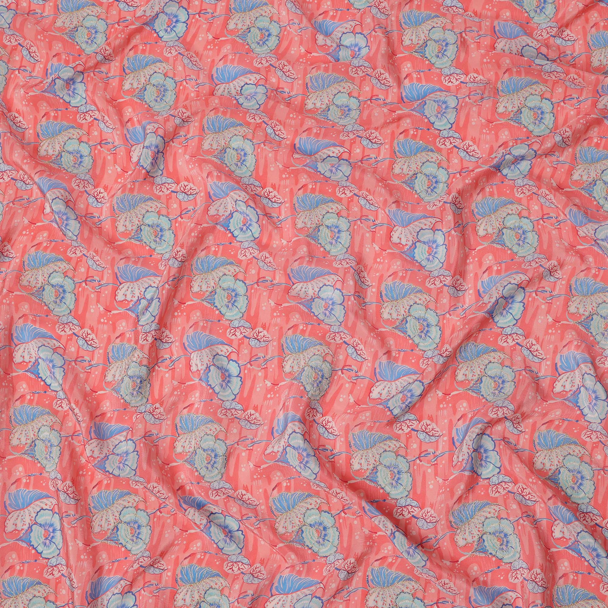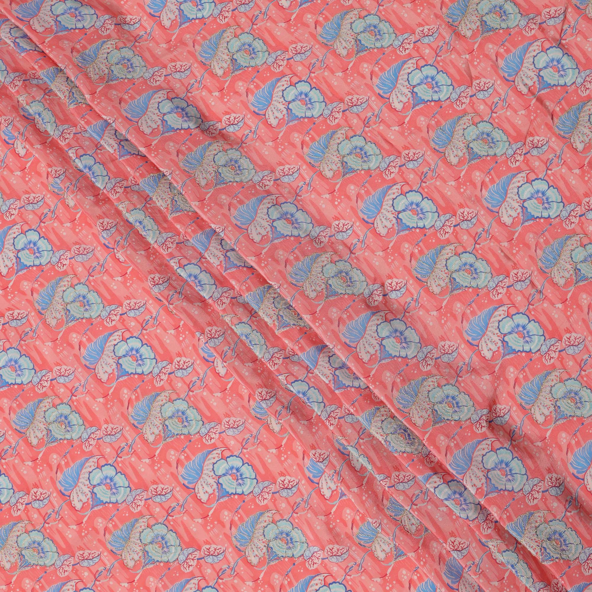 Coral Pink Floral Printed Viscose Crepe Fabric, 110 Cms Width, India-D24804