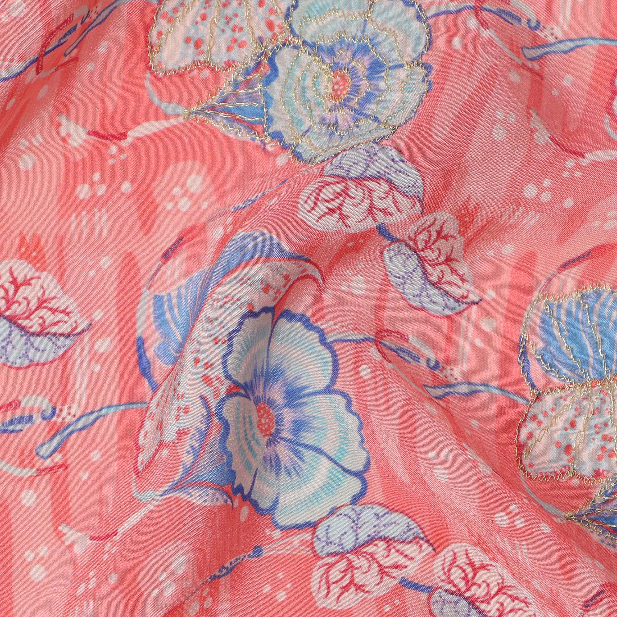 This coral pink floral printed viscose crepe fabric is a perfect blend of elegance and versatility, designed for those who... Read more Read more