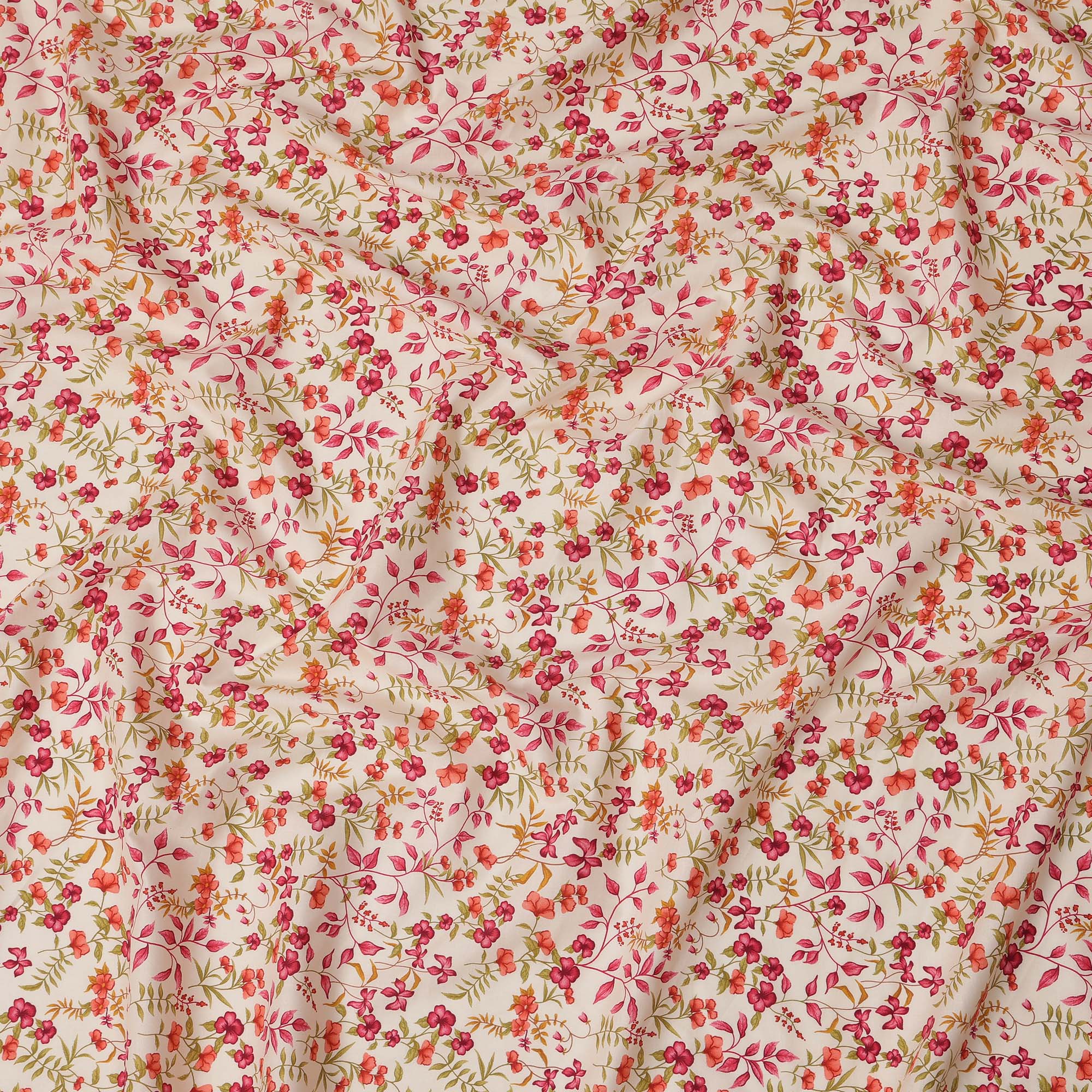 Pure cotton fabric with vibrant floral print.
