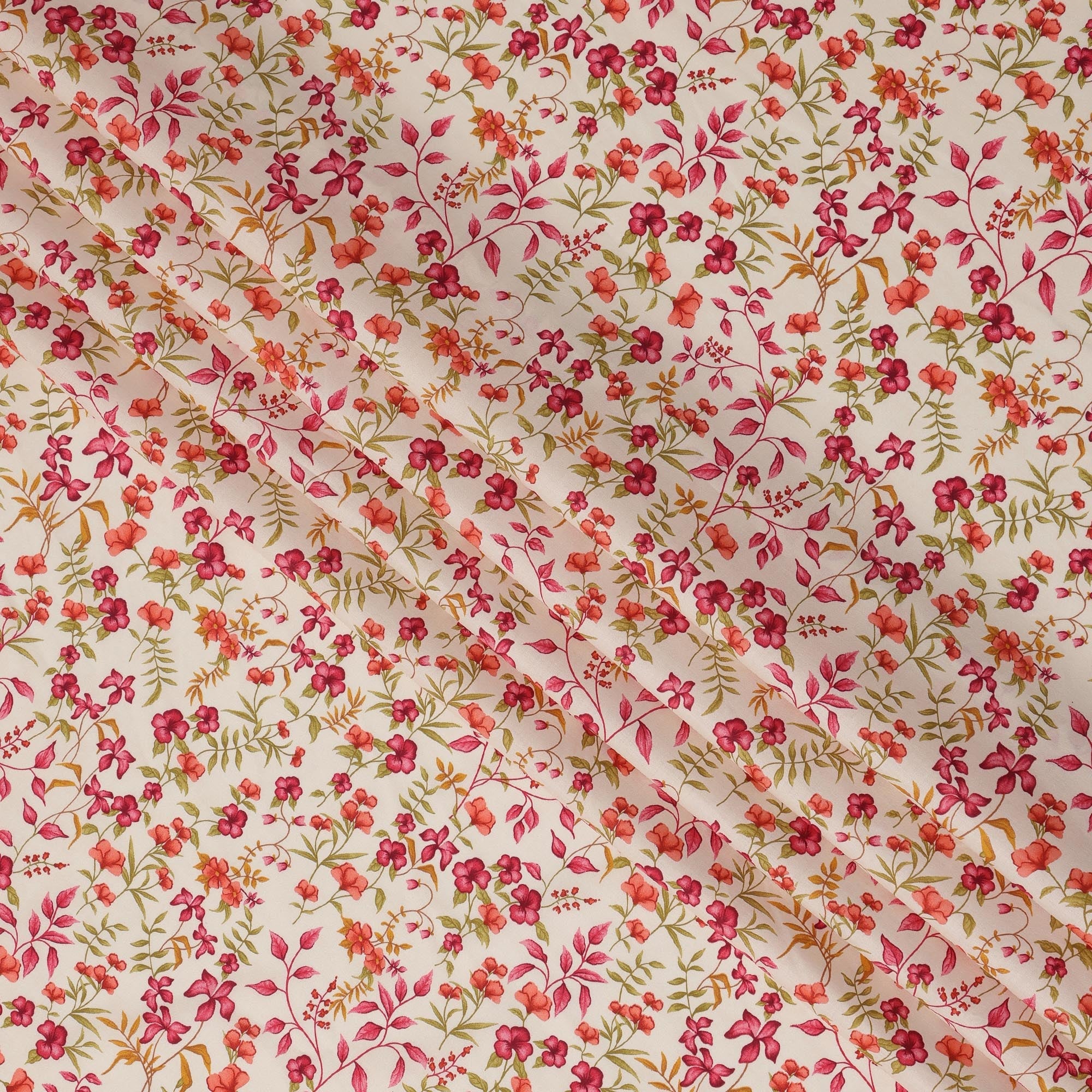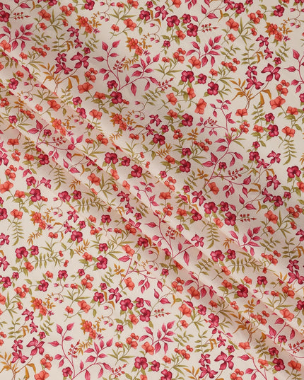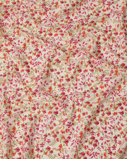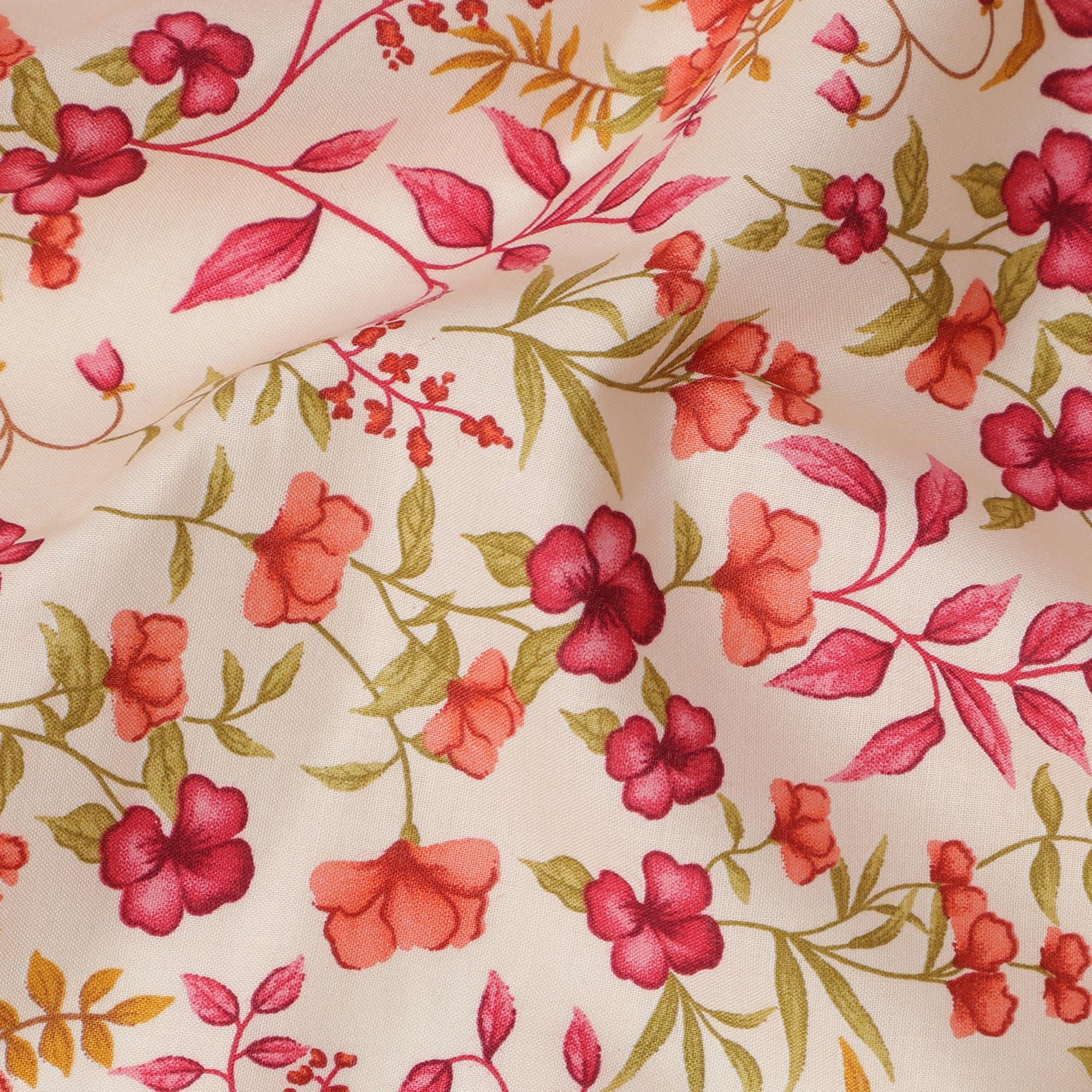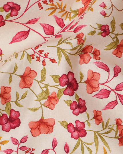 Cream and Pink Floral Pure Cotton Printed Fabric – Width 110 cm-D21784