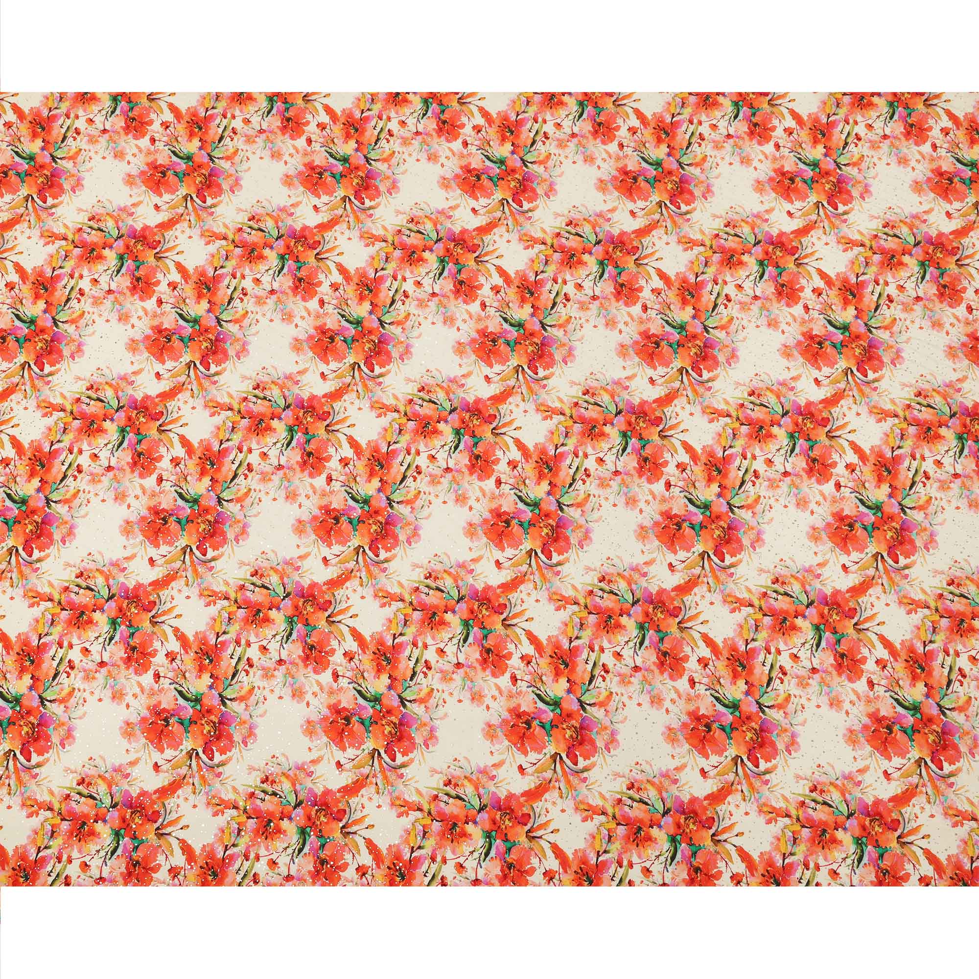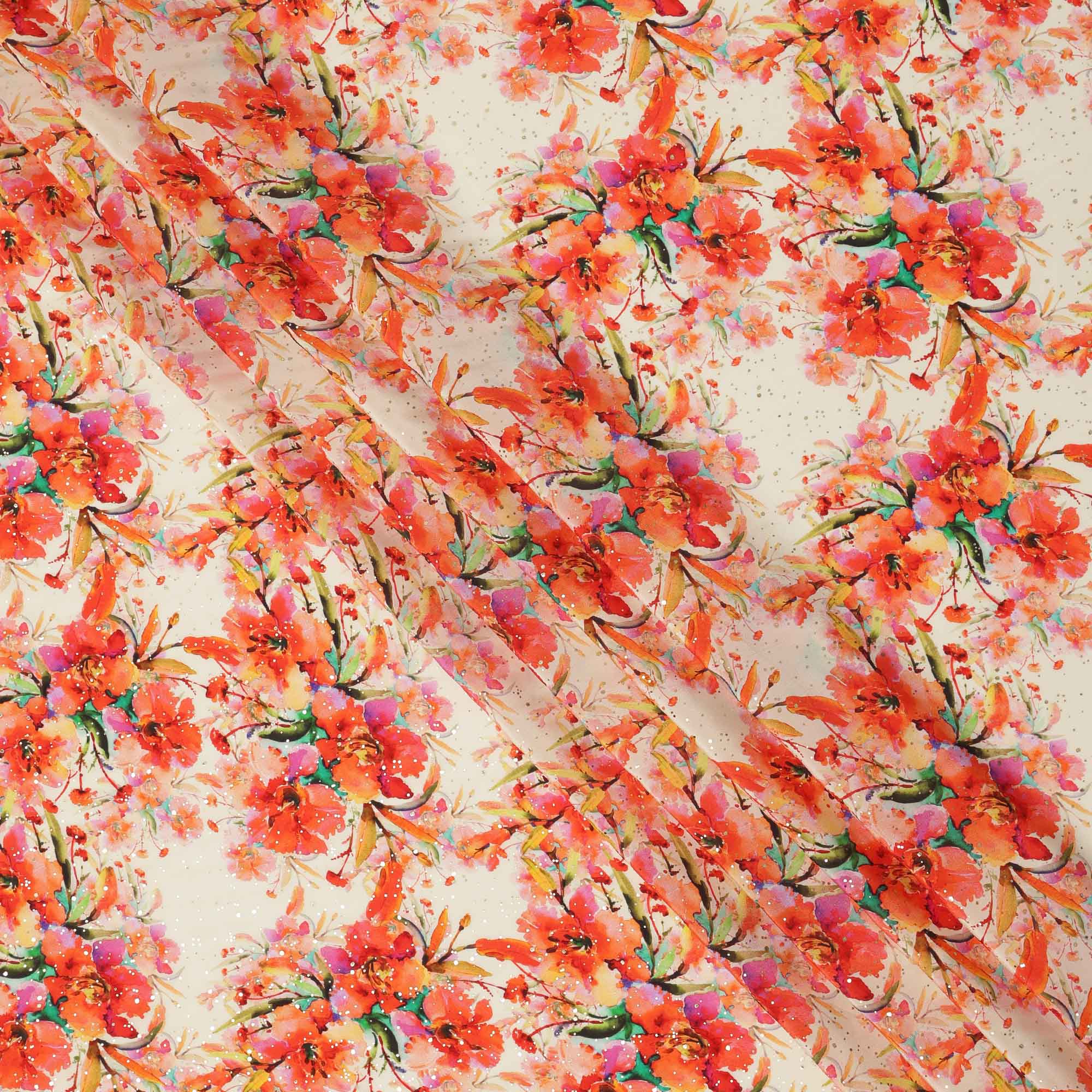 Cream Base Orange Floral Watercolor Digital Print Viscose Crepe Fabric, 110 Cms Width, Made in India-D23634