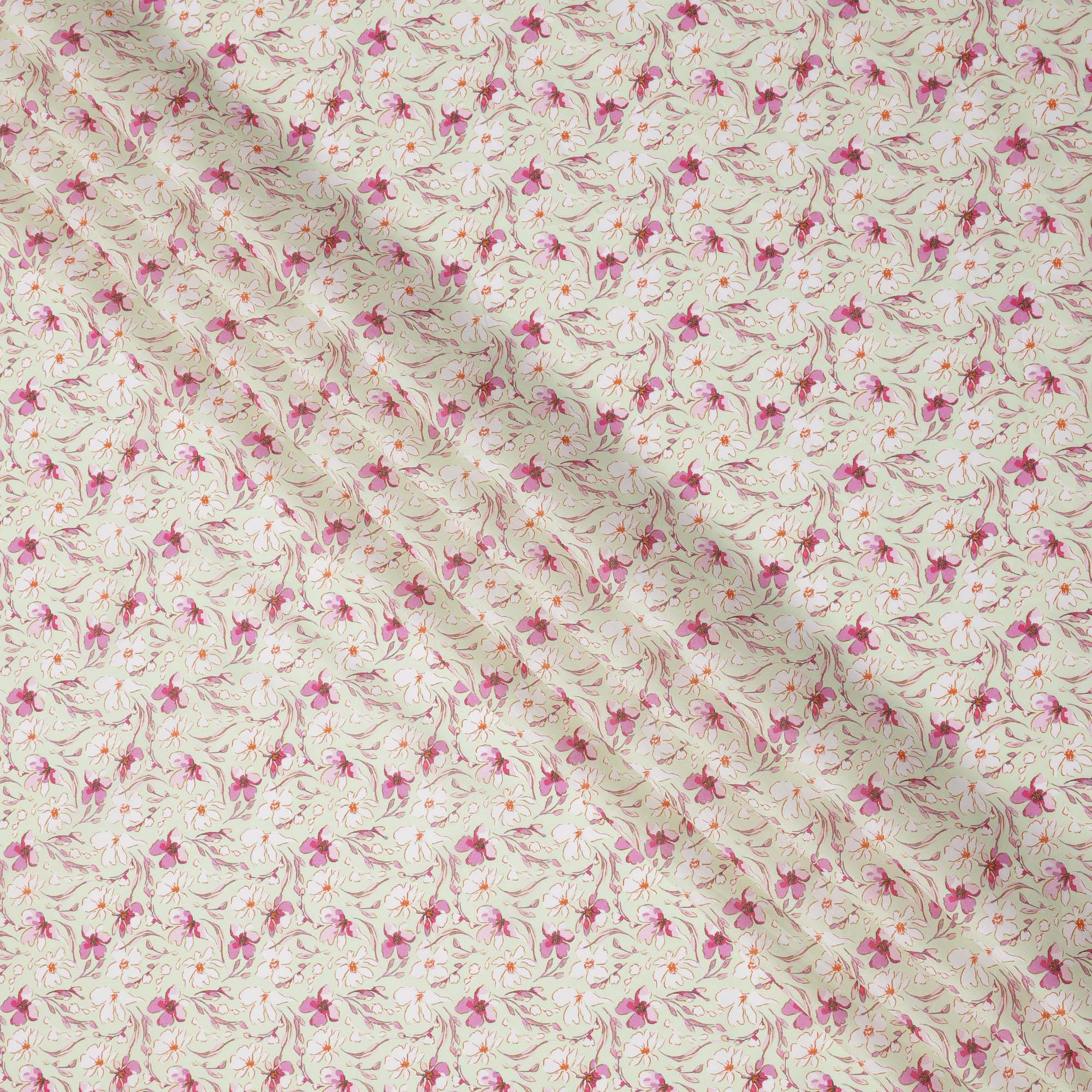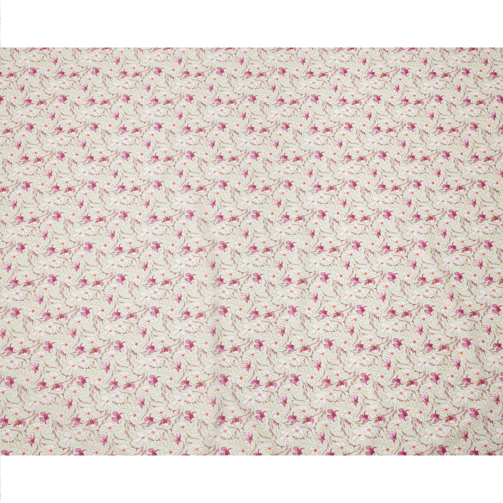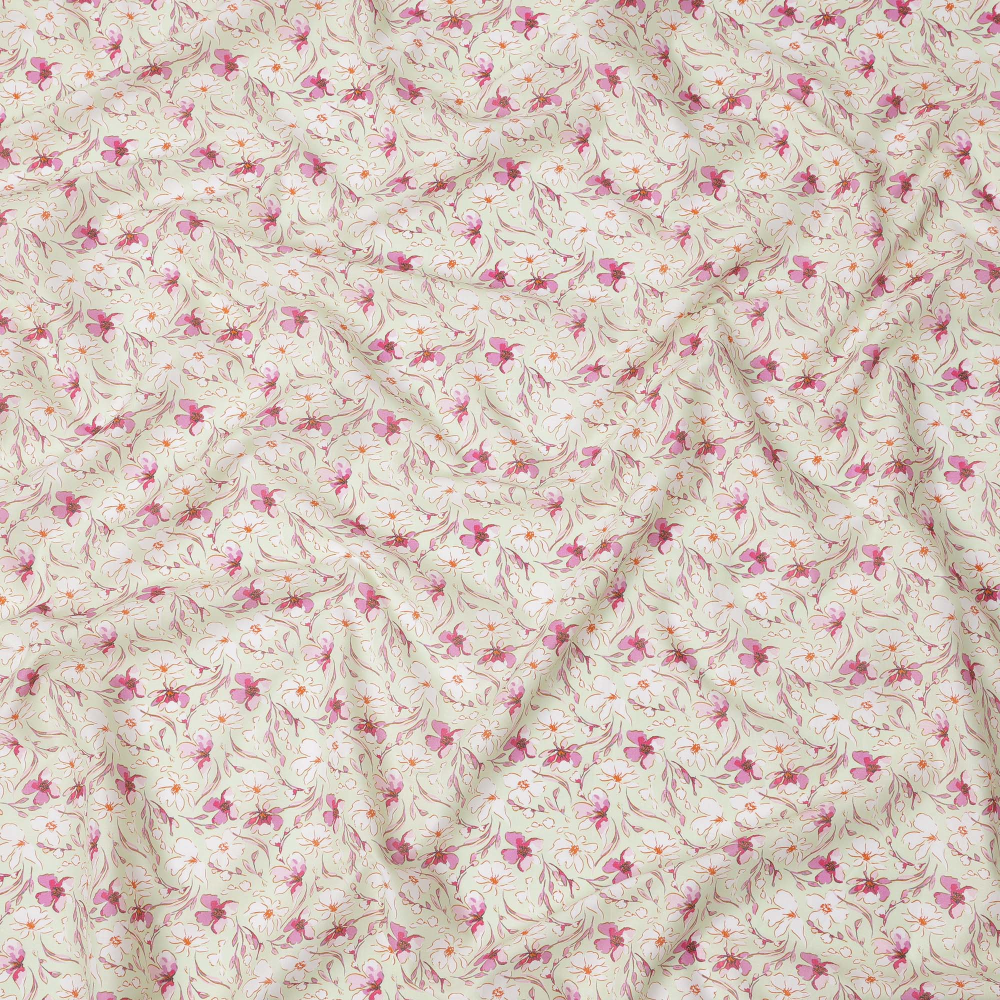 Cream Base Pink and Magenta Floral Printed Cotton Lawn Fabric with Delicate Vine Motifs, 110 Cms Width, Made in India-D24279