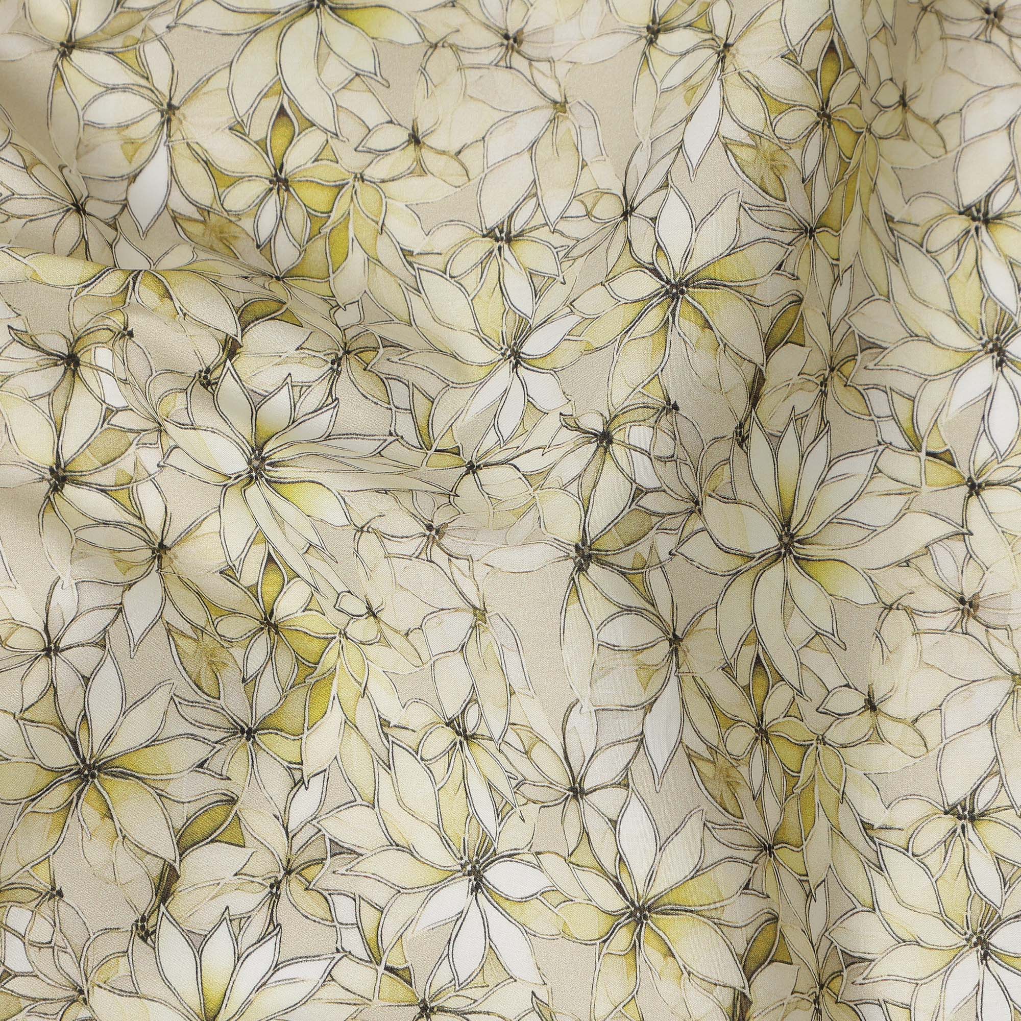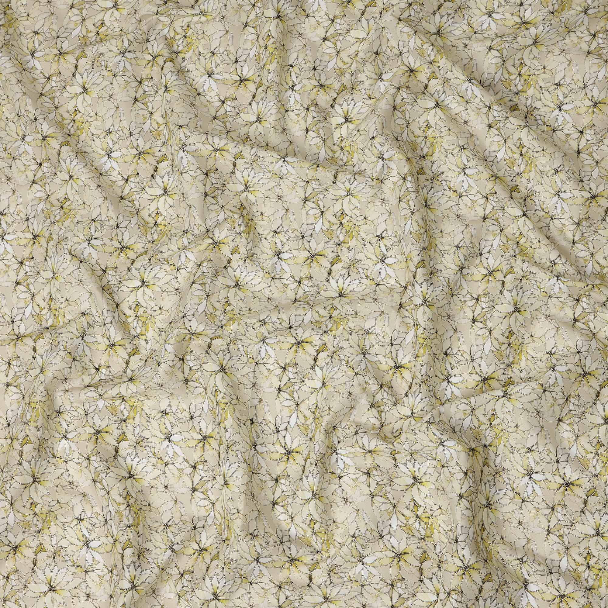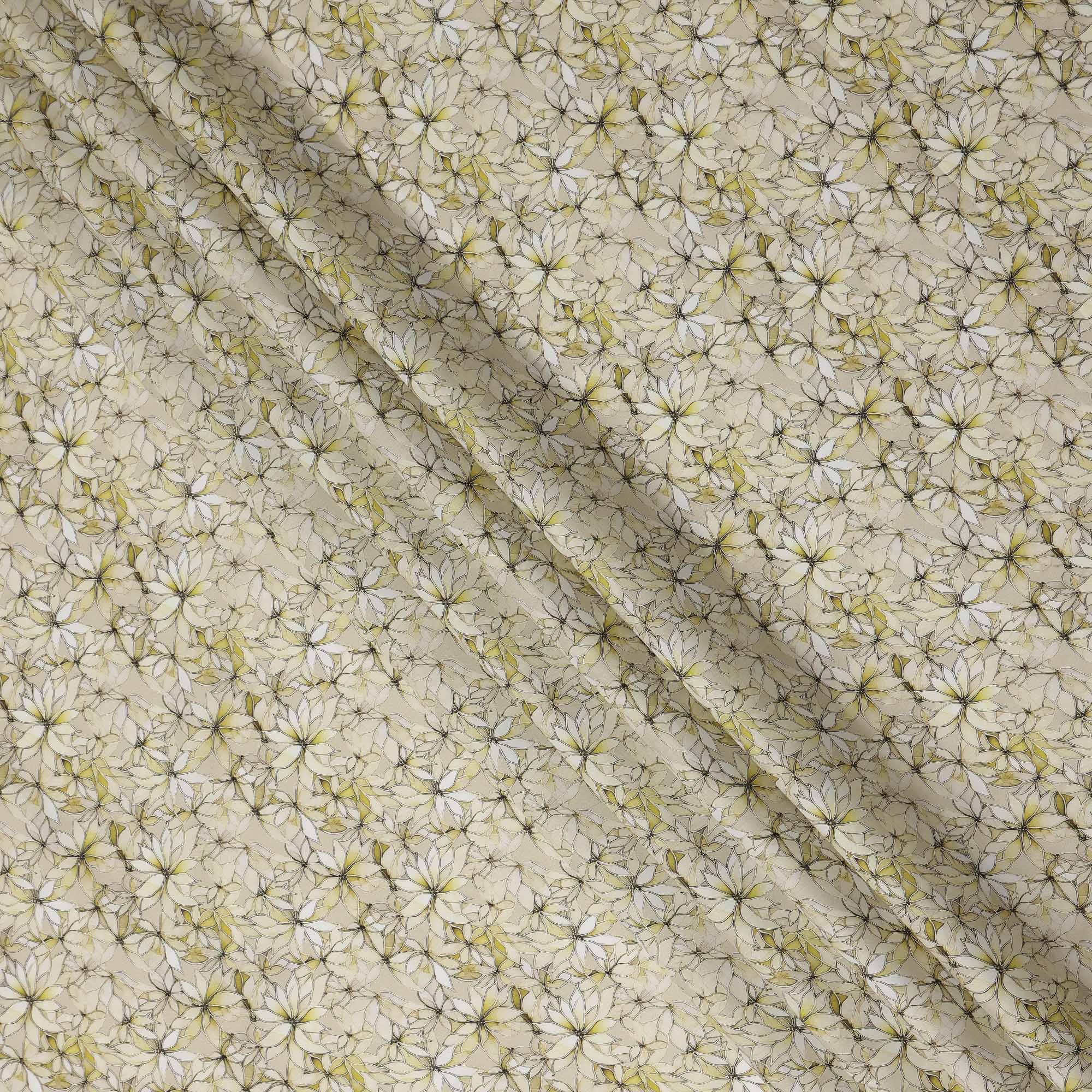 Cream Beige Abstract Floral Printed Cotton Lawn Fabric All Over Line Art Flower Design Soft Dressmaking Material 4.0 Meters Length 110 Cms Width India-D27657