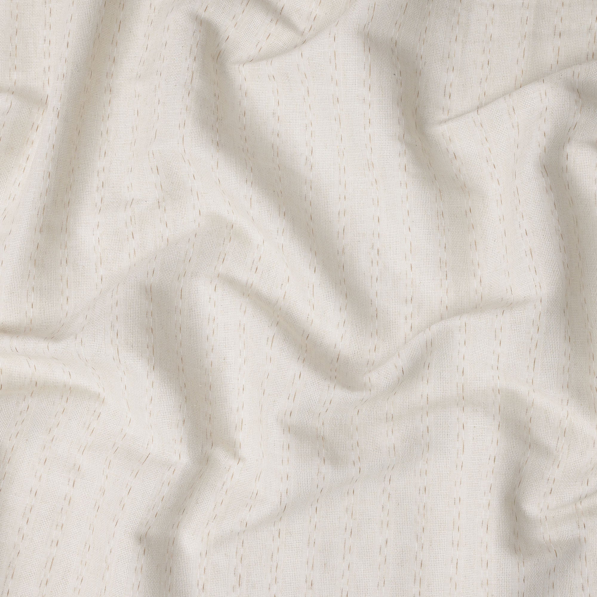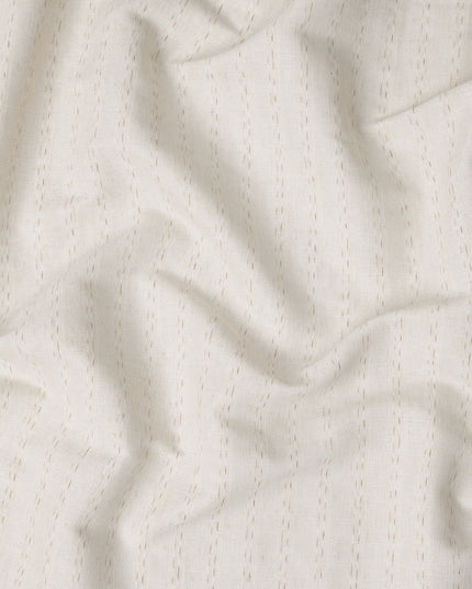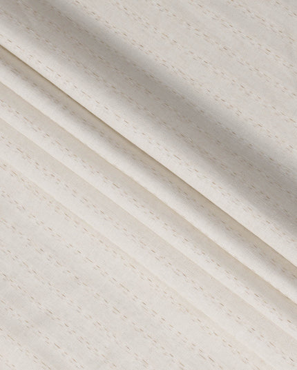 Cream Beige Striped Textured Blended Linen Fabric – Width 140 Cms, Made in India, Sold Per Meter-D23087