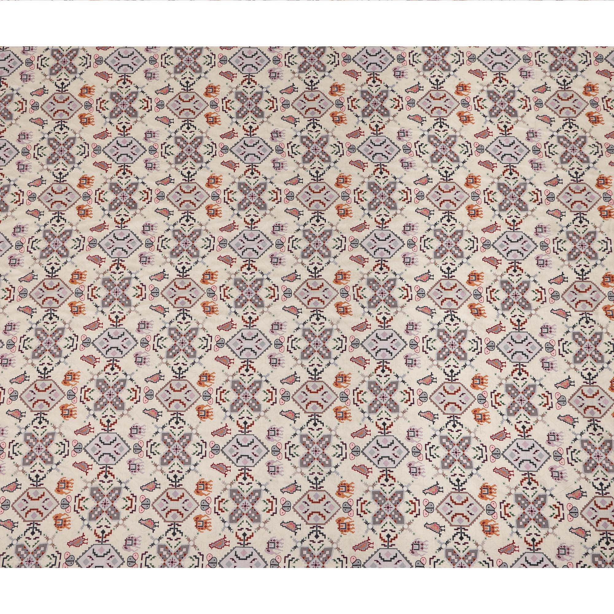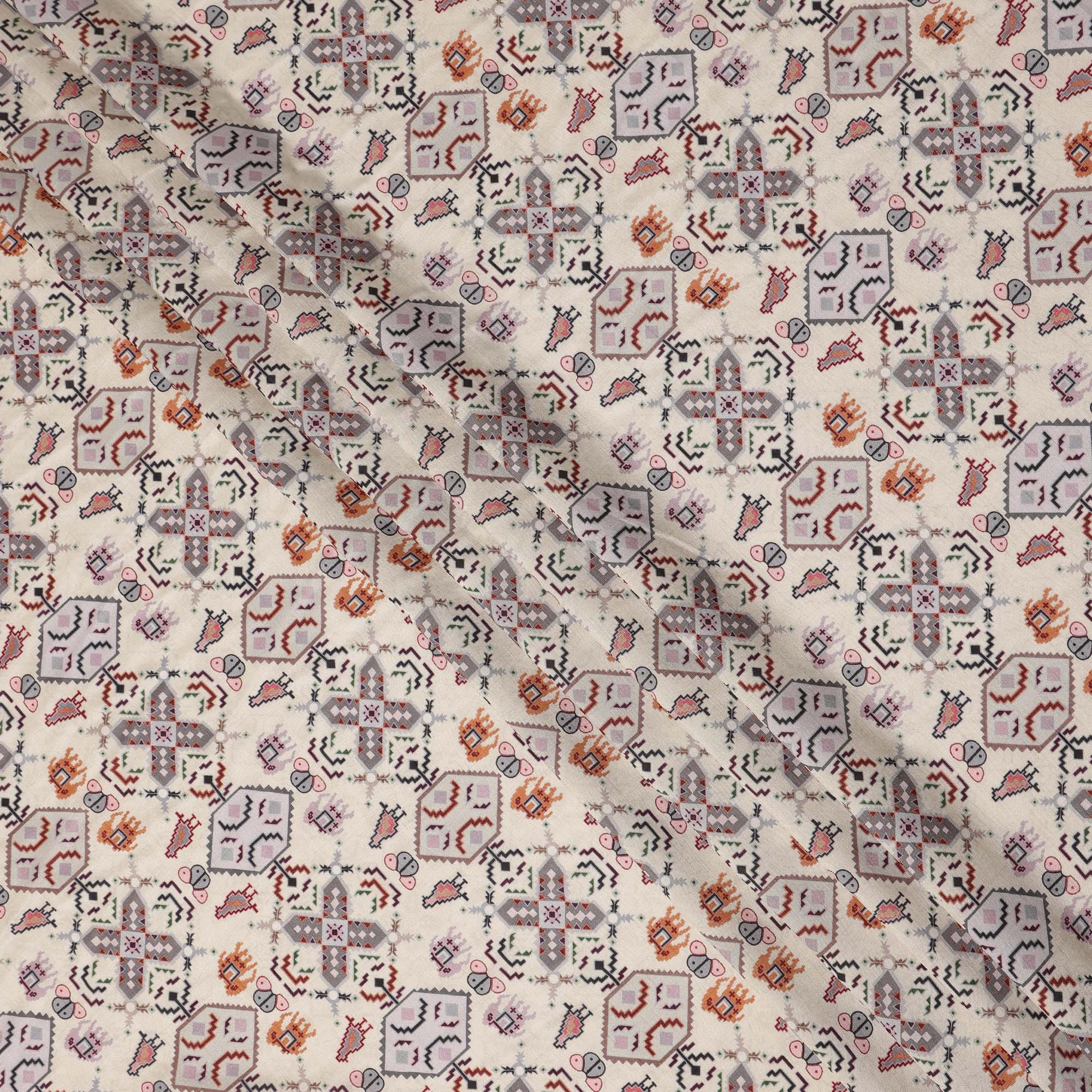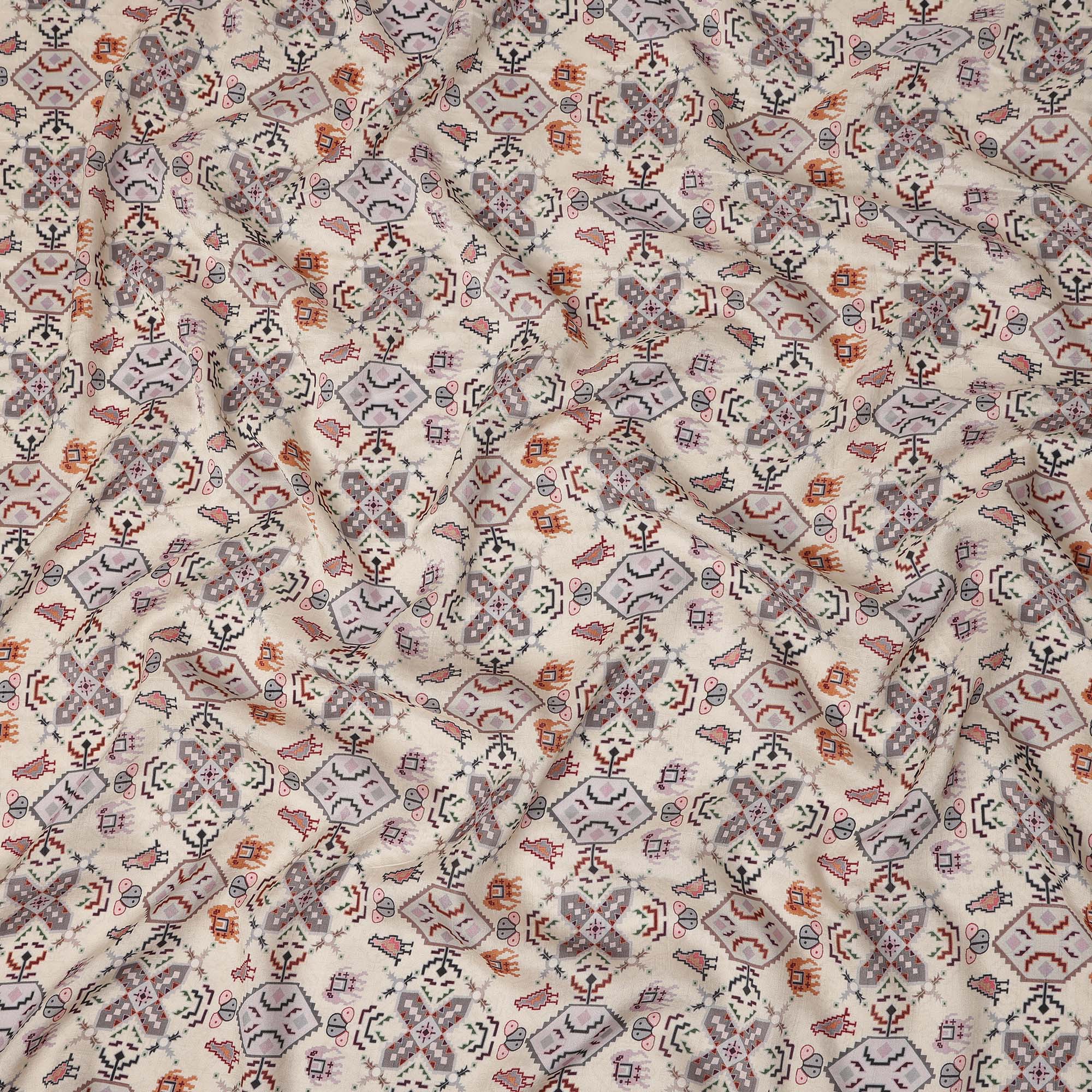 Cream base enhanced with elegant ethnic geometric multicolor print.