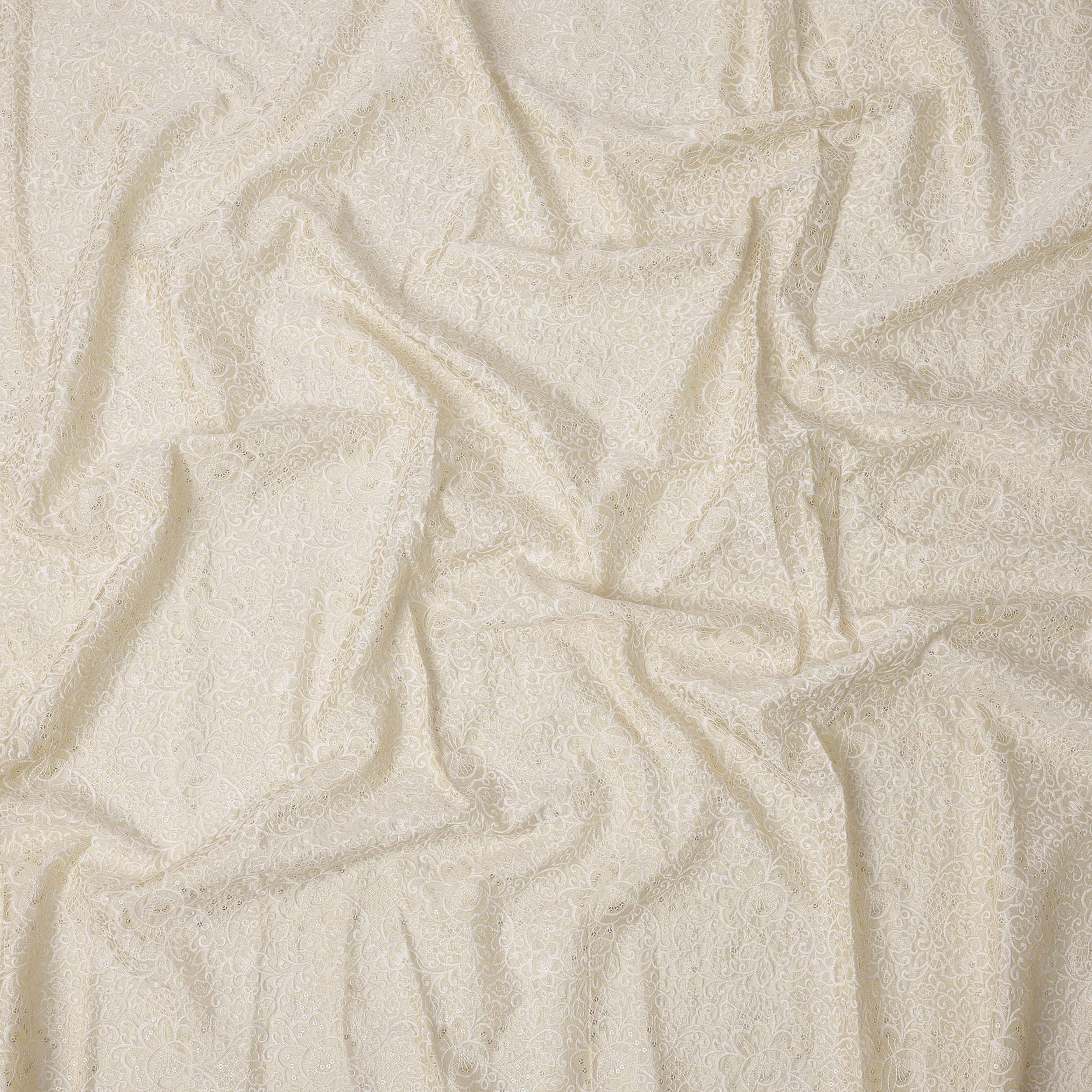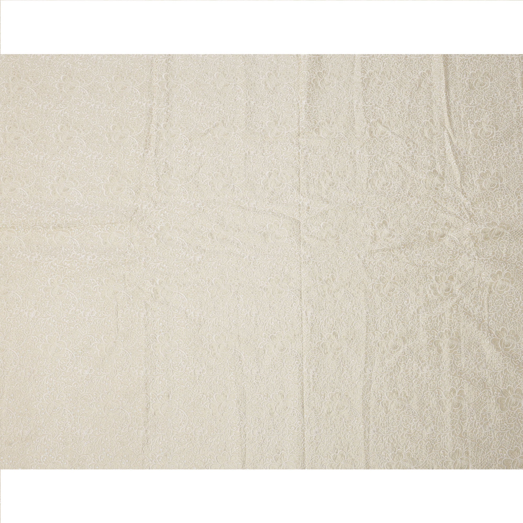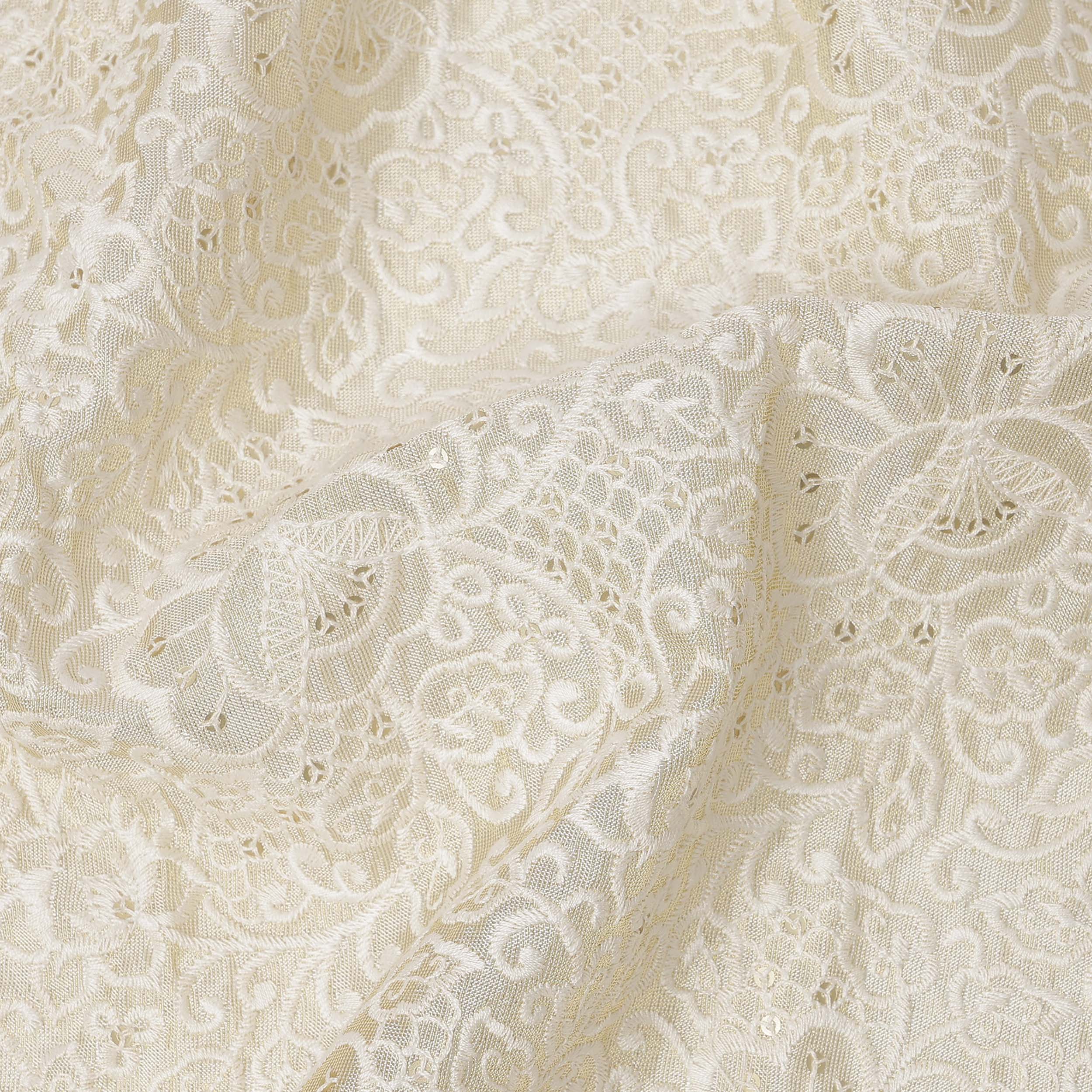 Cream Floral Pattern Embroidered Cotton Viscose Fabric, 110 Cms Width, Made in India-D26273