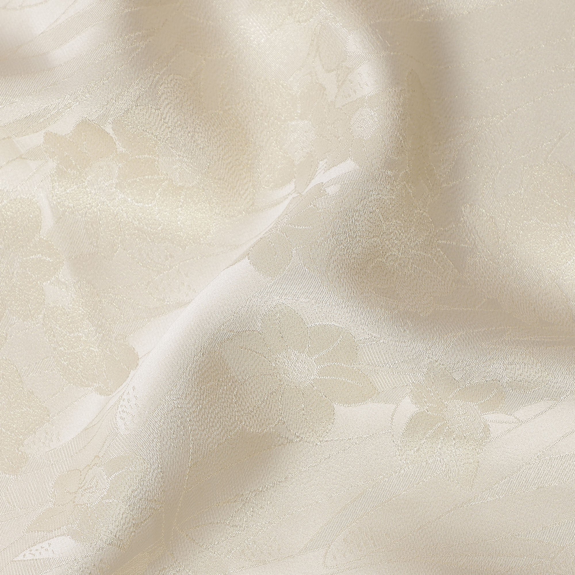Cream Floral Self-Design Pure Silk Satin Fabric 140 Cms Width Made in China-D24895