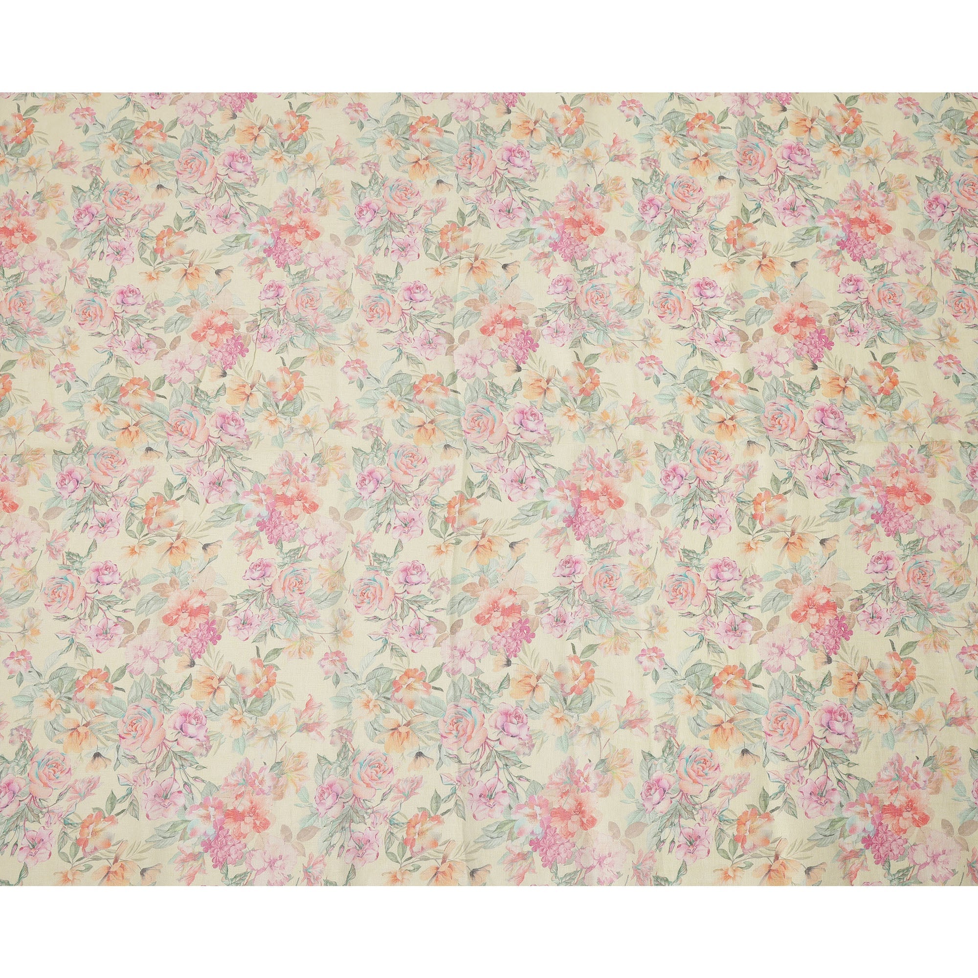 Cream Multicolor Floral Printed Cotton Linen Fabric, 110 Cms Width, India-D25188