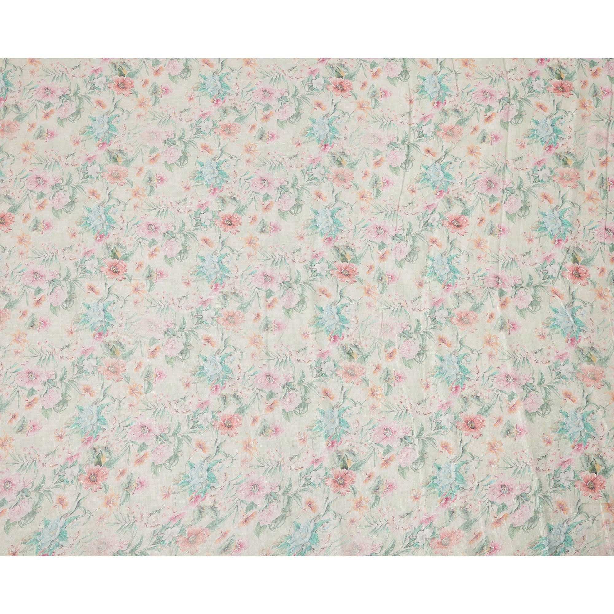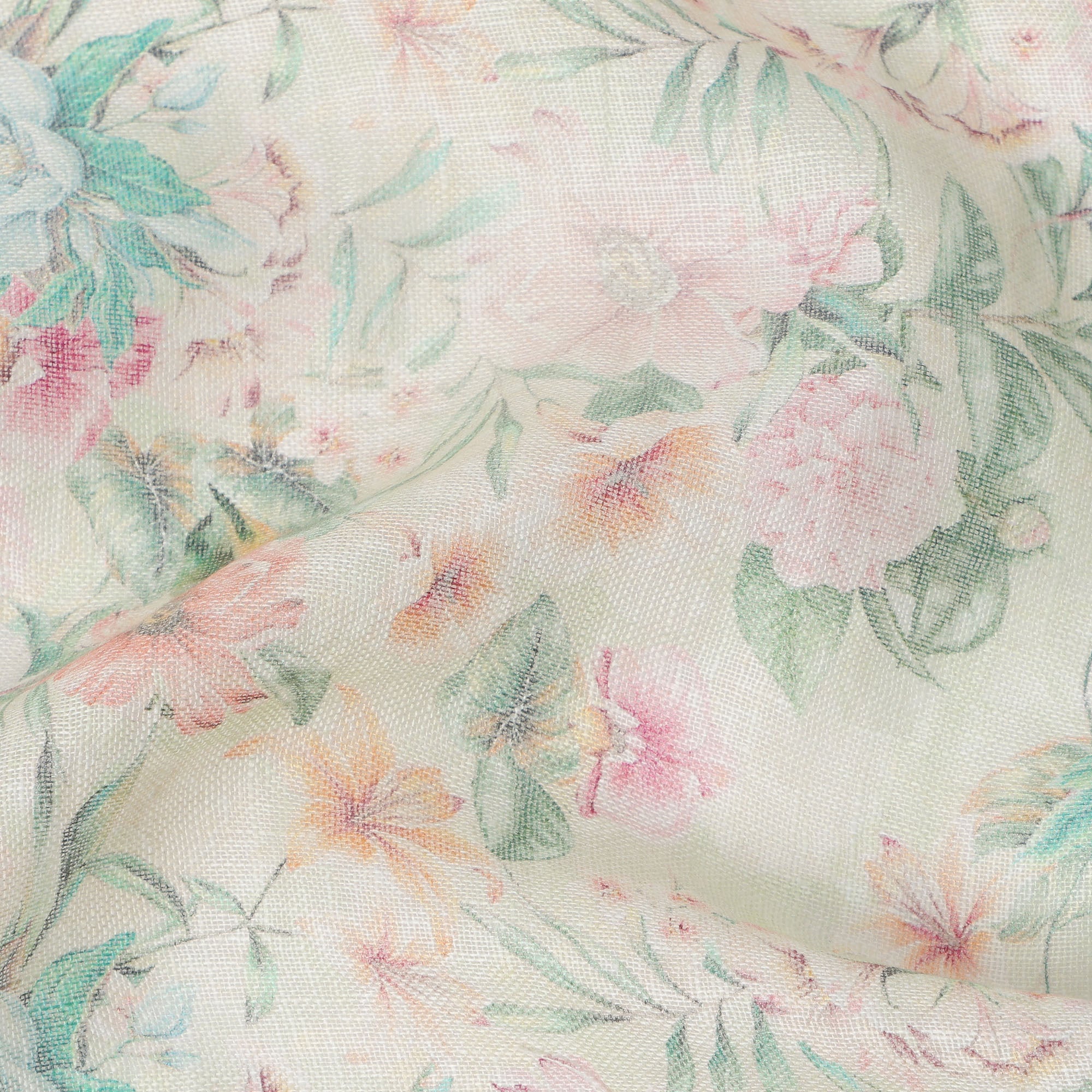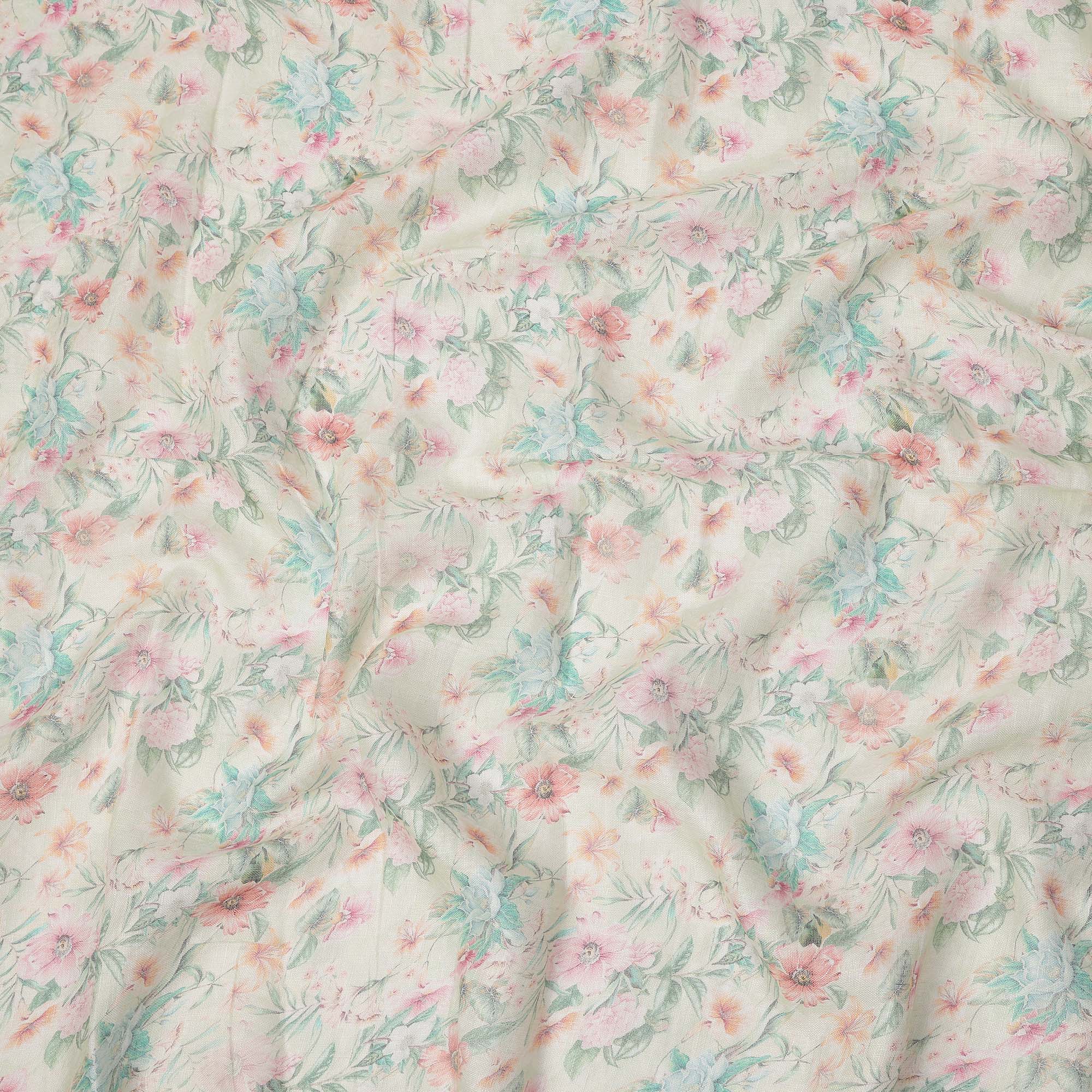 Cream Pastel Floral Printed Blended Cotton Linen Fabric, 110 Cms Width, India-D25172