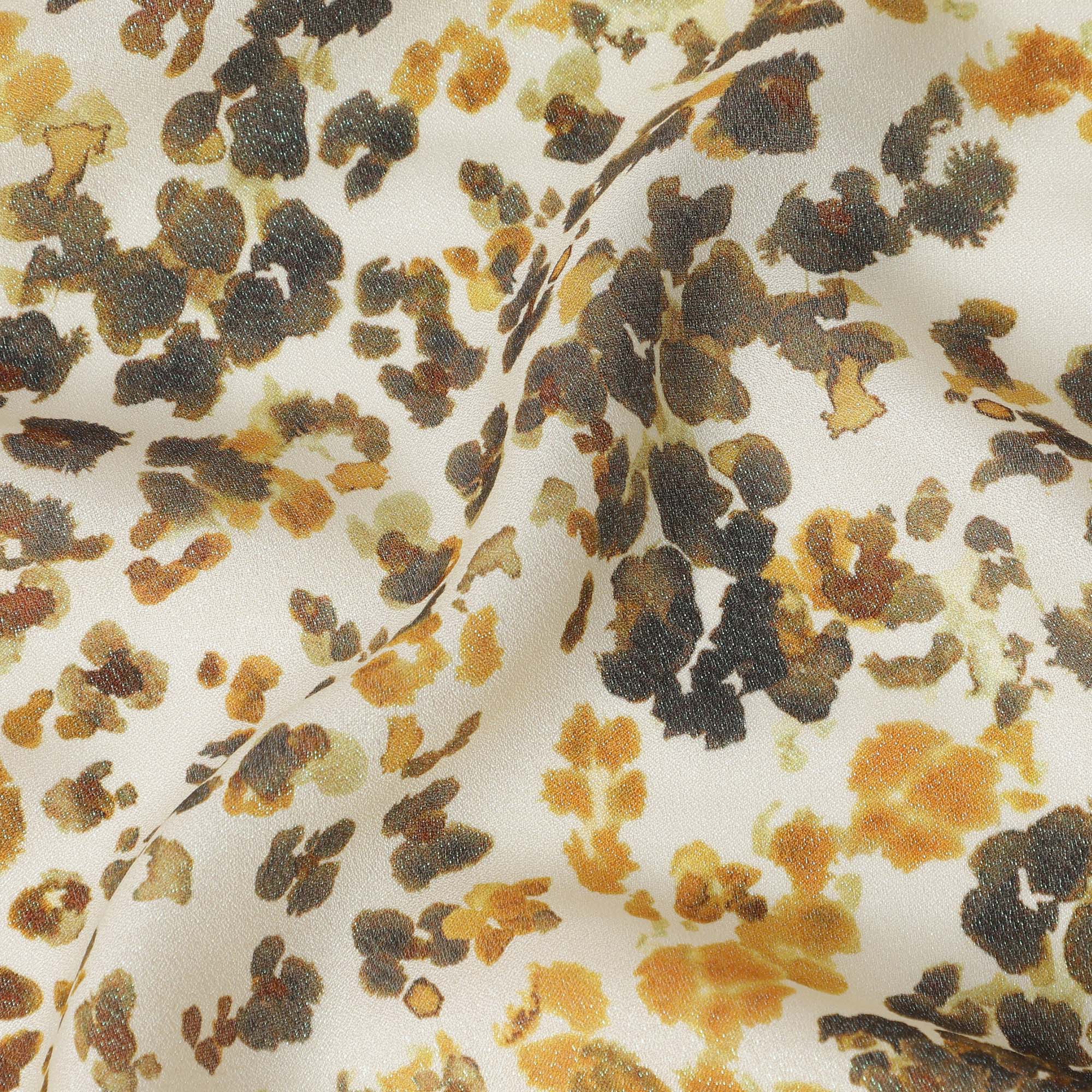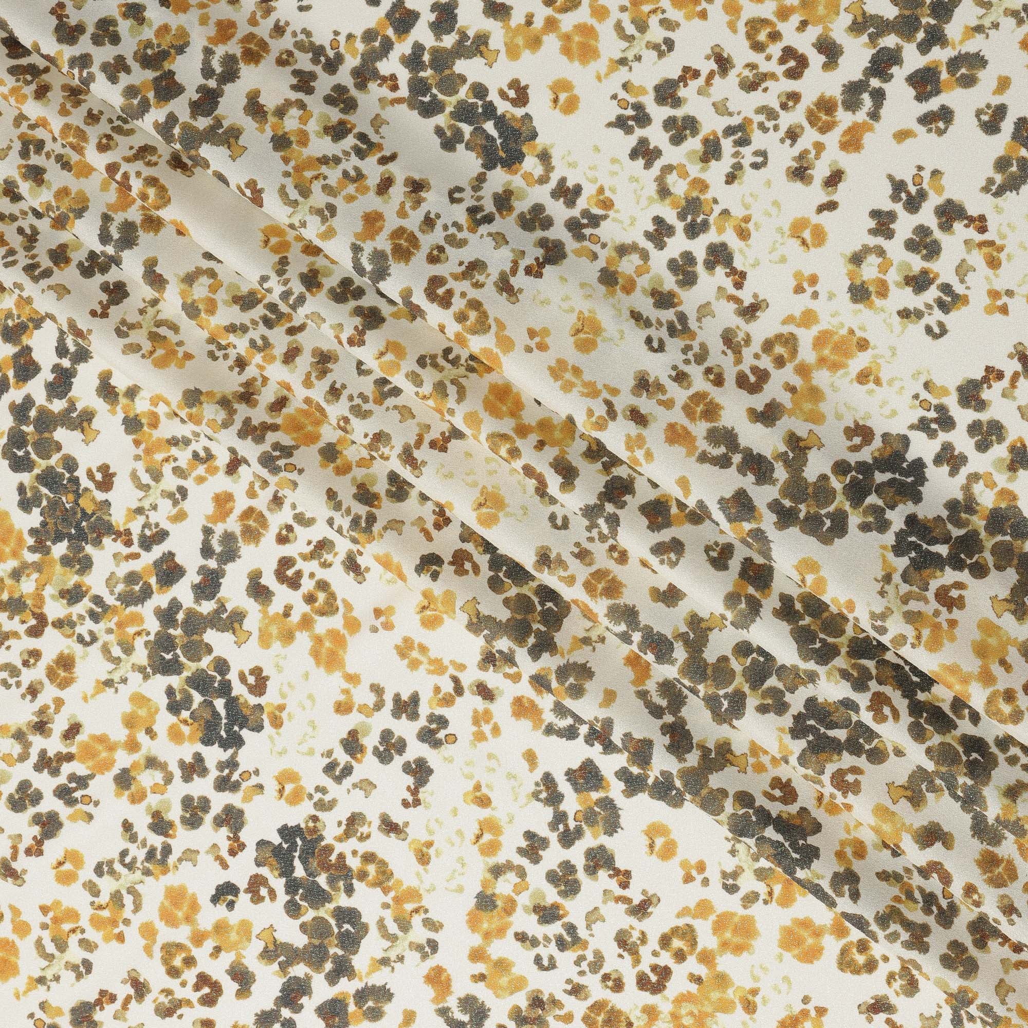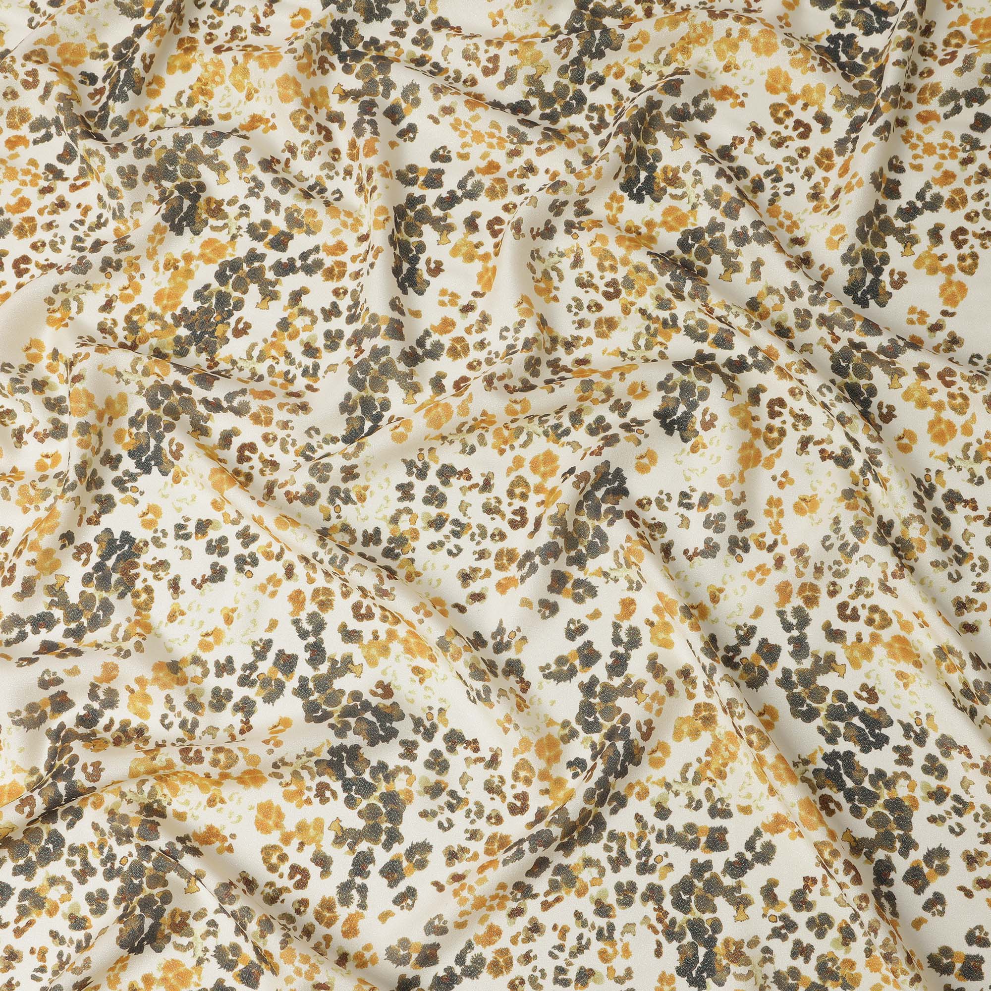 Cream pure silk satin fabric with an elegant gold & black abstract print.