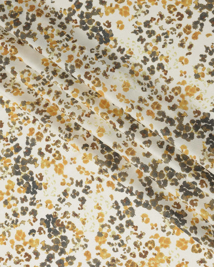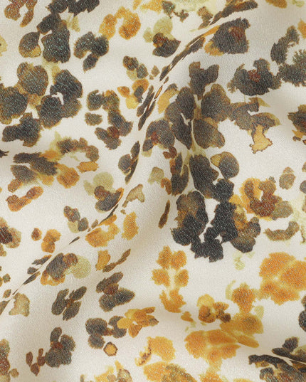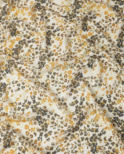 Cream Pure Silk Satin Fabric with Gold & Black Abstract Print – 140 cm, Imported from South Korea-D22288
