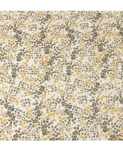 Enhance your designs with this cream pure silk satin fabric, elegantly decorated with a gold and black abstract print for a refined and luxurious look. Imported from South Korea, this high-quality satin features a silky smooth texture, radiant sheen, and graceful drape, making it ideal for designer dresses, evening gowns, scarves, and upscale home décor. The warm gold tones contrast beautifully with the soft cream background, while the abstract pattern adds a modern artistic touch. With a 140 cm width, this fabric is versatile for various fashion and interior applications, while its breathable, lightweight, and skin-friendly properties provide superior comfort. Shop online today and indulge in the elegance of fine South Korean silk satin.