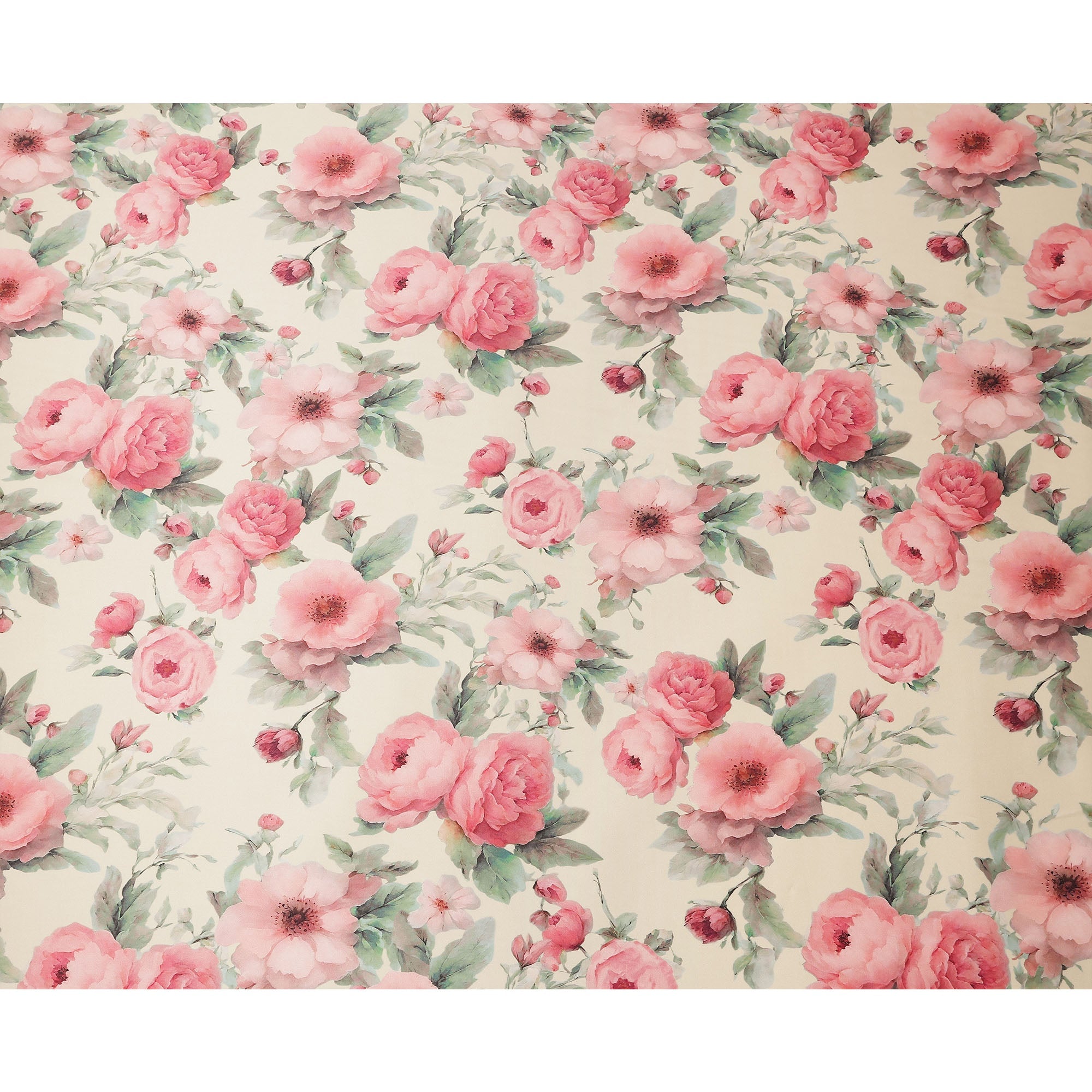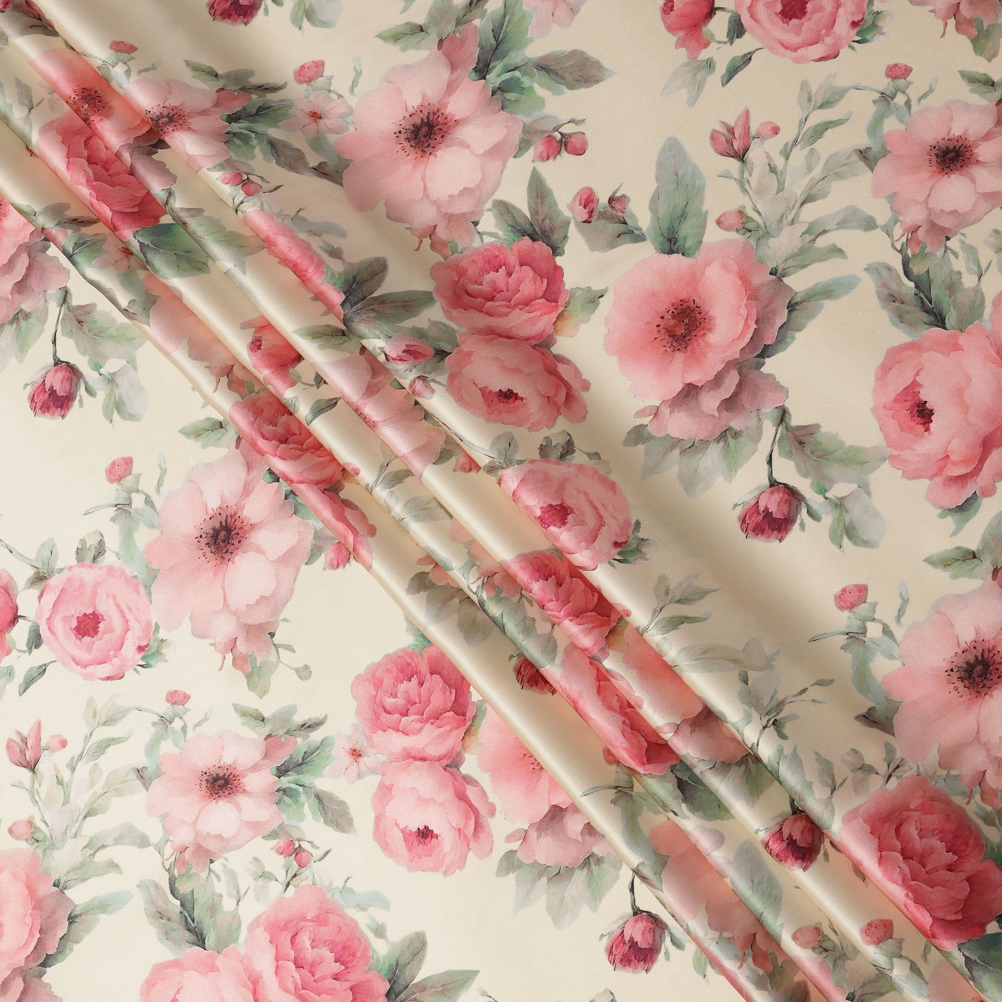Cream Pure Silk Satin Fabric with Pink and Red Floral Print, 140 Cms Width, South Korea-D25359