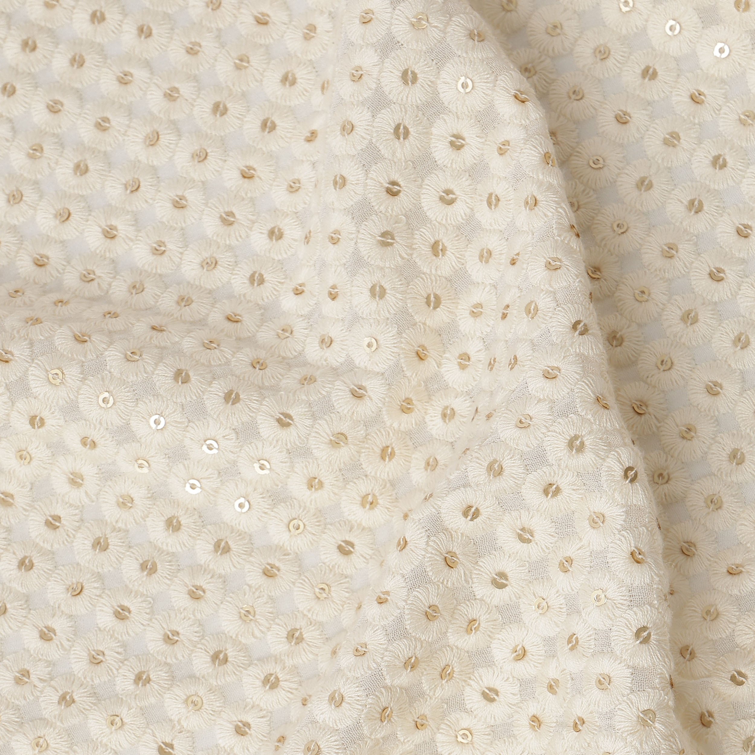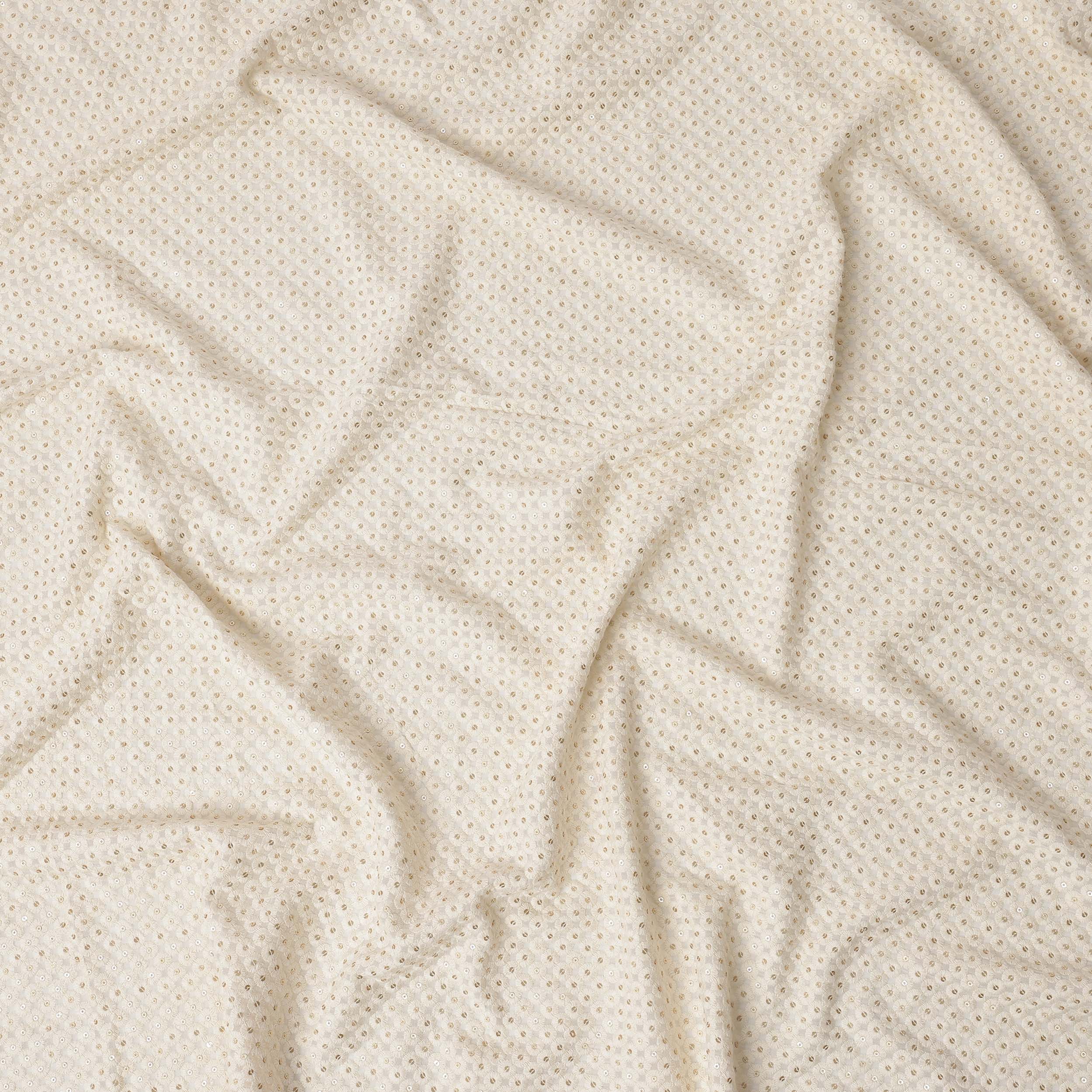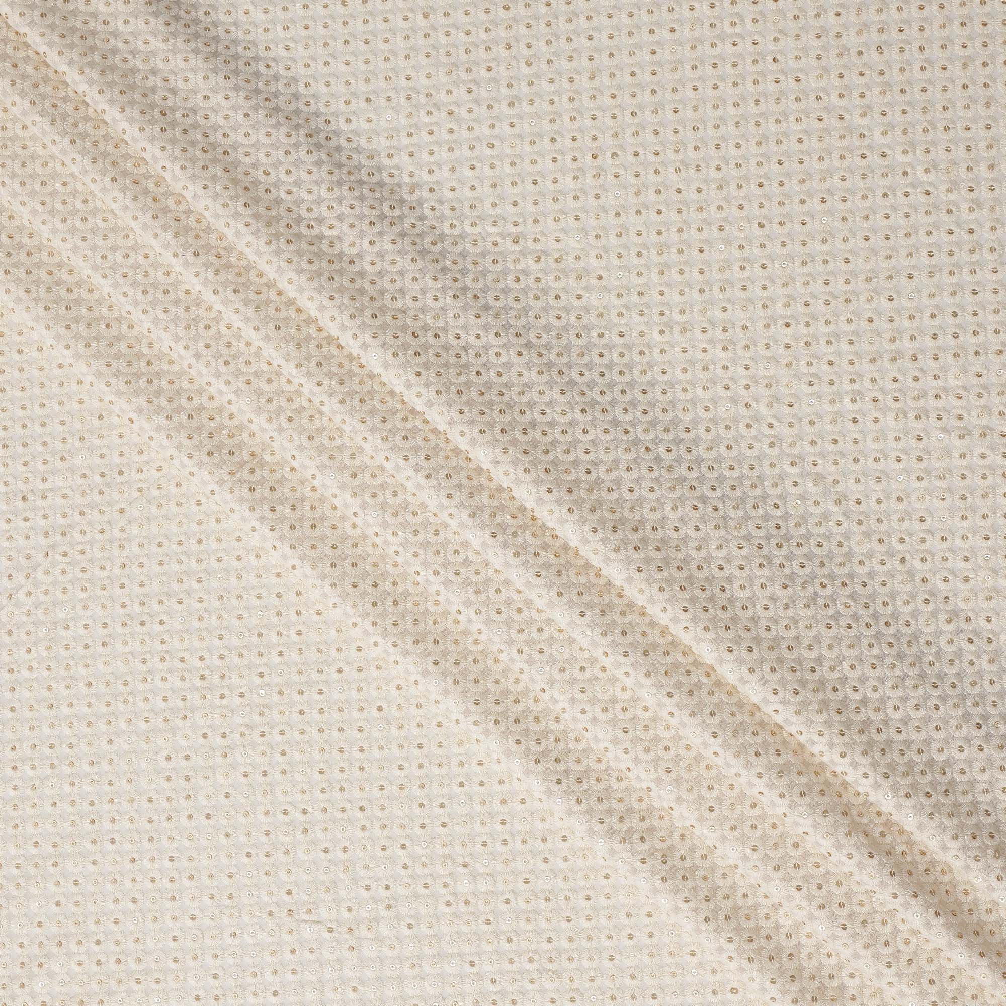 Cream Sequin Embroidered Polka Dot Pattern Synthetic Viscose Fabric, 110 Cms Width, Made in India-D26377