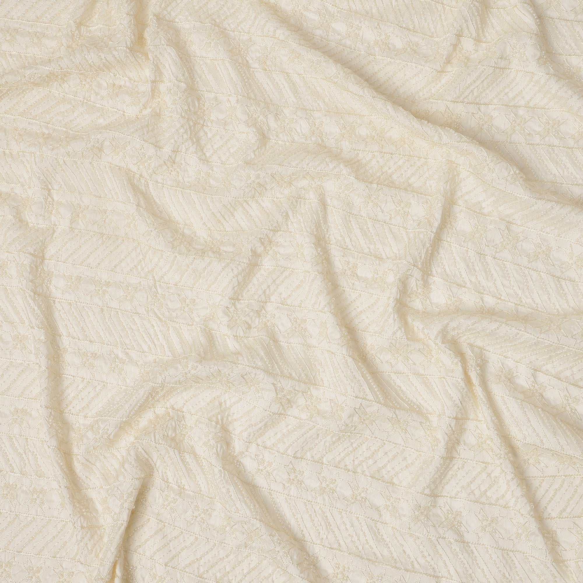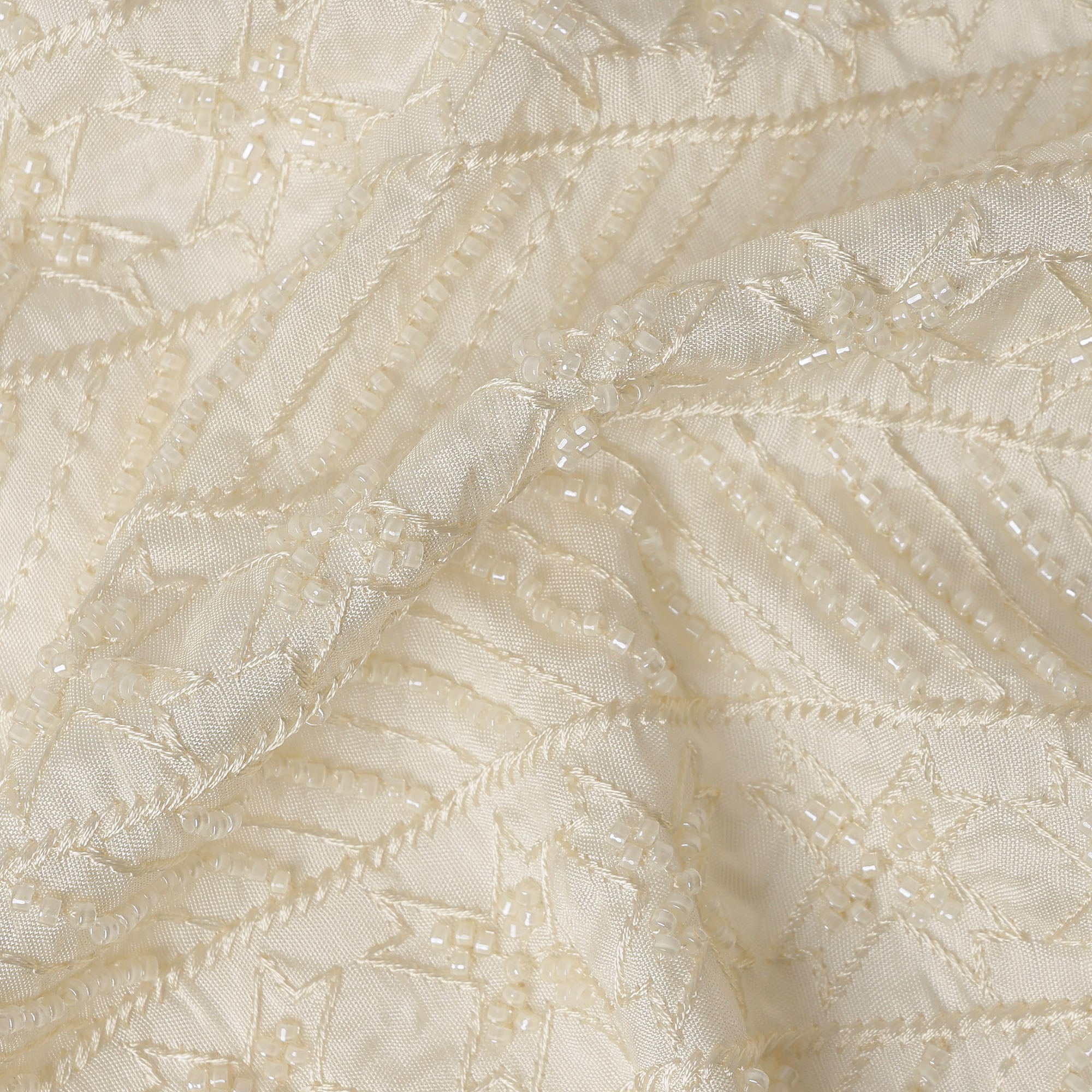 Cream synthetic blended fabric with intricate star-pattern beadwork