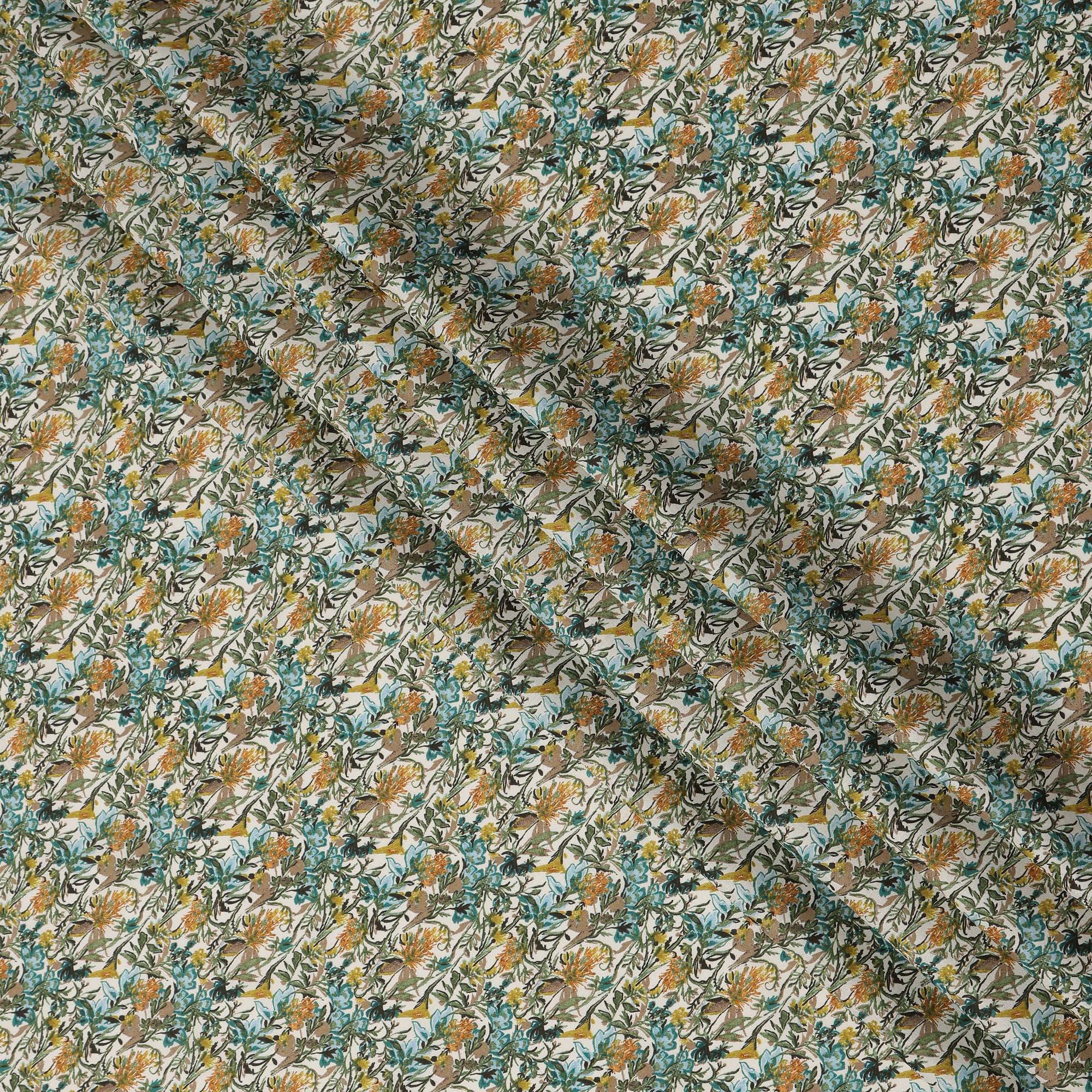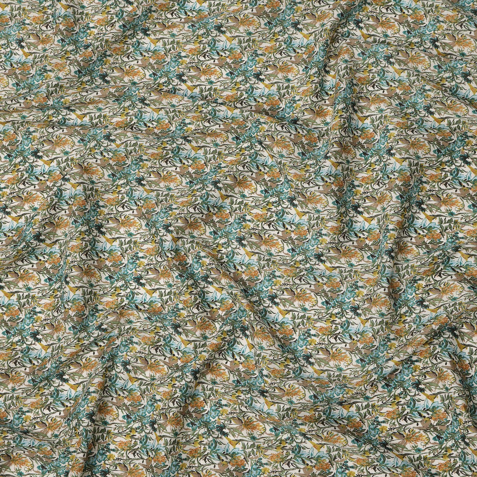 Cream Teal Multicolor Floral Print Cotton Lawn Fabric – Artistic Botanical Design, 110 cm Width, Made in Japan-D26830