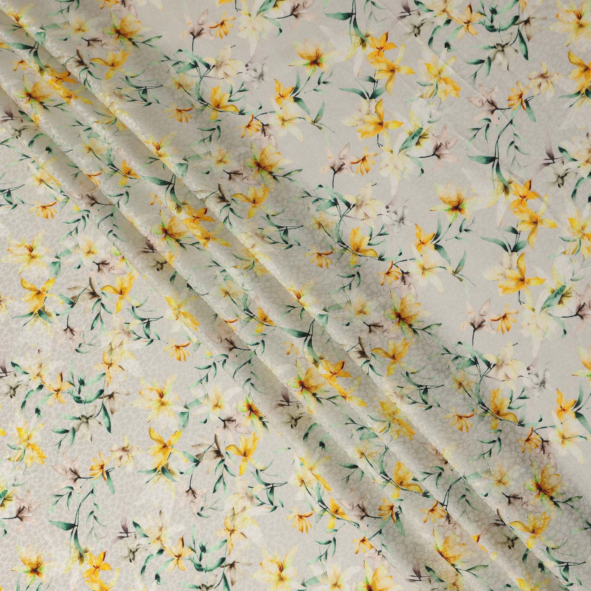 Cream Yellow Floral Printed Viscose Crepe Fabric 110 Cms Width Soft Flowing Lightweight Dress Material India-D27912