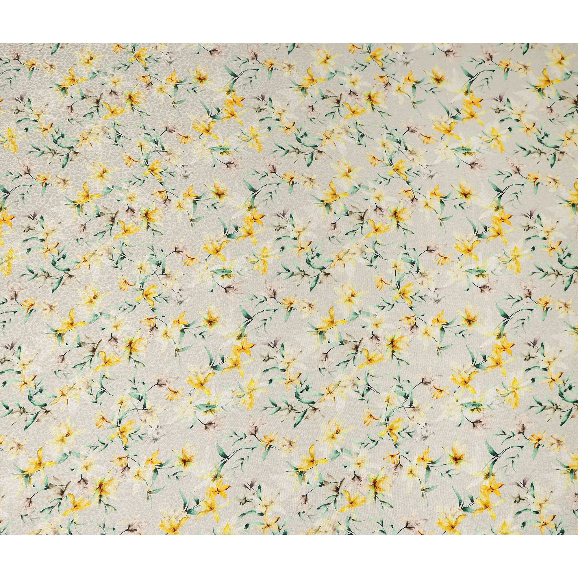 Yellow floral print on cream base creates a fresh and elegant appeal