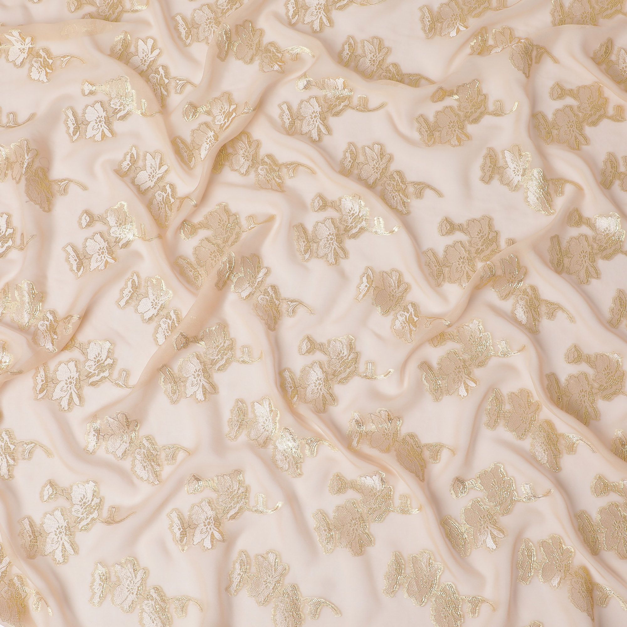 Creamy Opulence Gold-Leaf Silk Chiffon Garbasaar Fabric, 110 cm Wide – South Korean Luxe Textile-Piece of 2.0 Mtrs-D18665