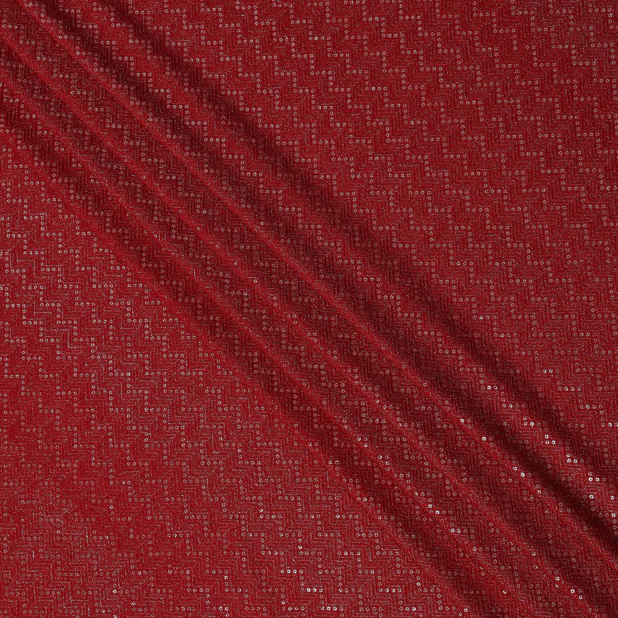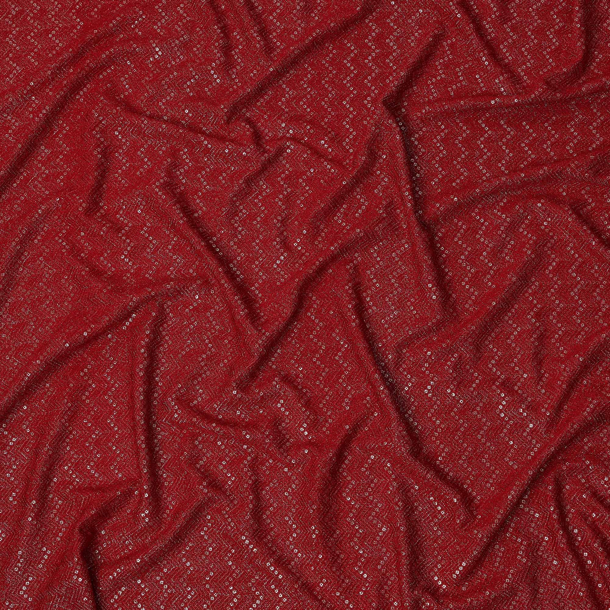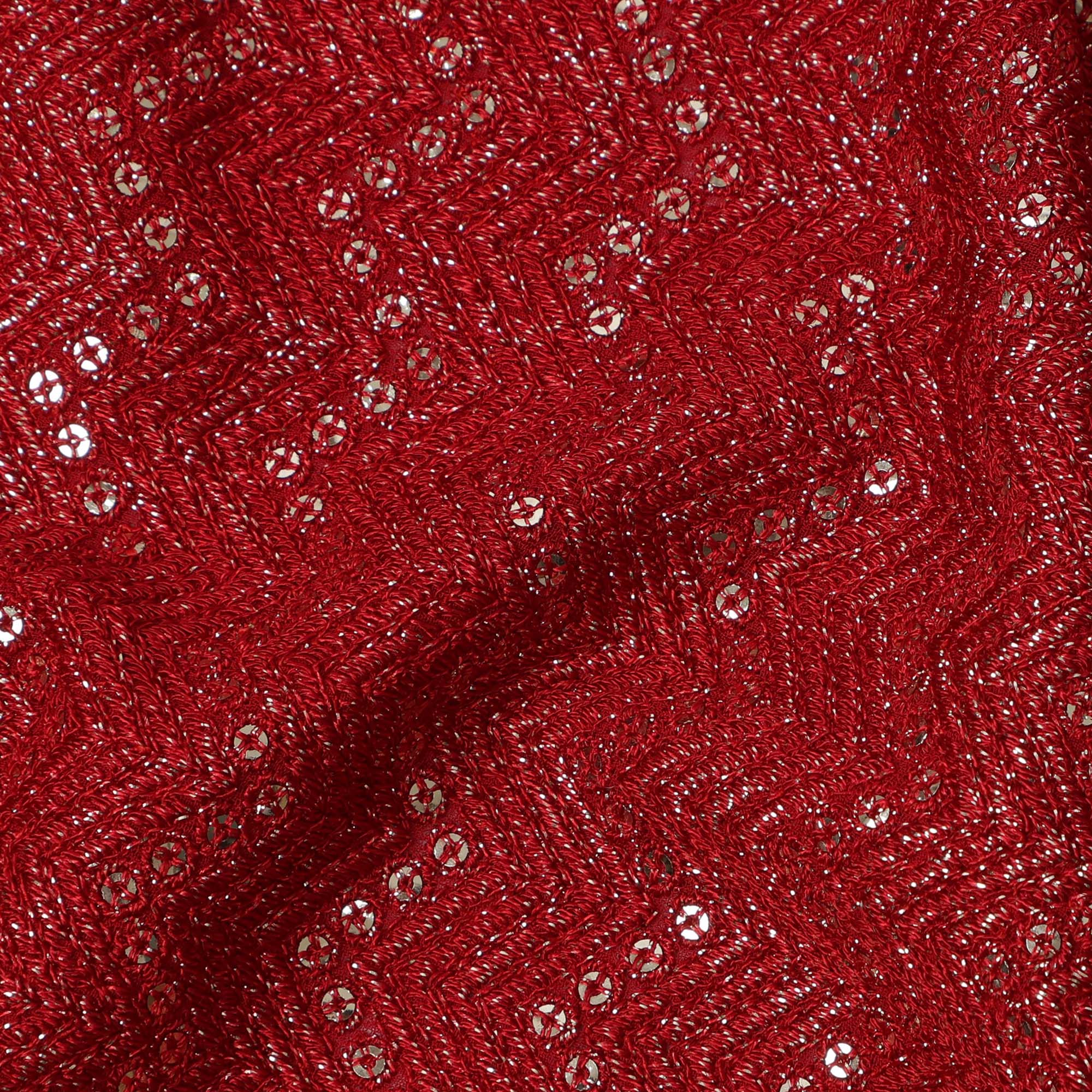 Crimson red chevron mirror embroidered synthetic blended viscose fabric, 110 Cms, India-D23828