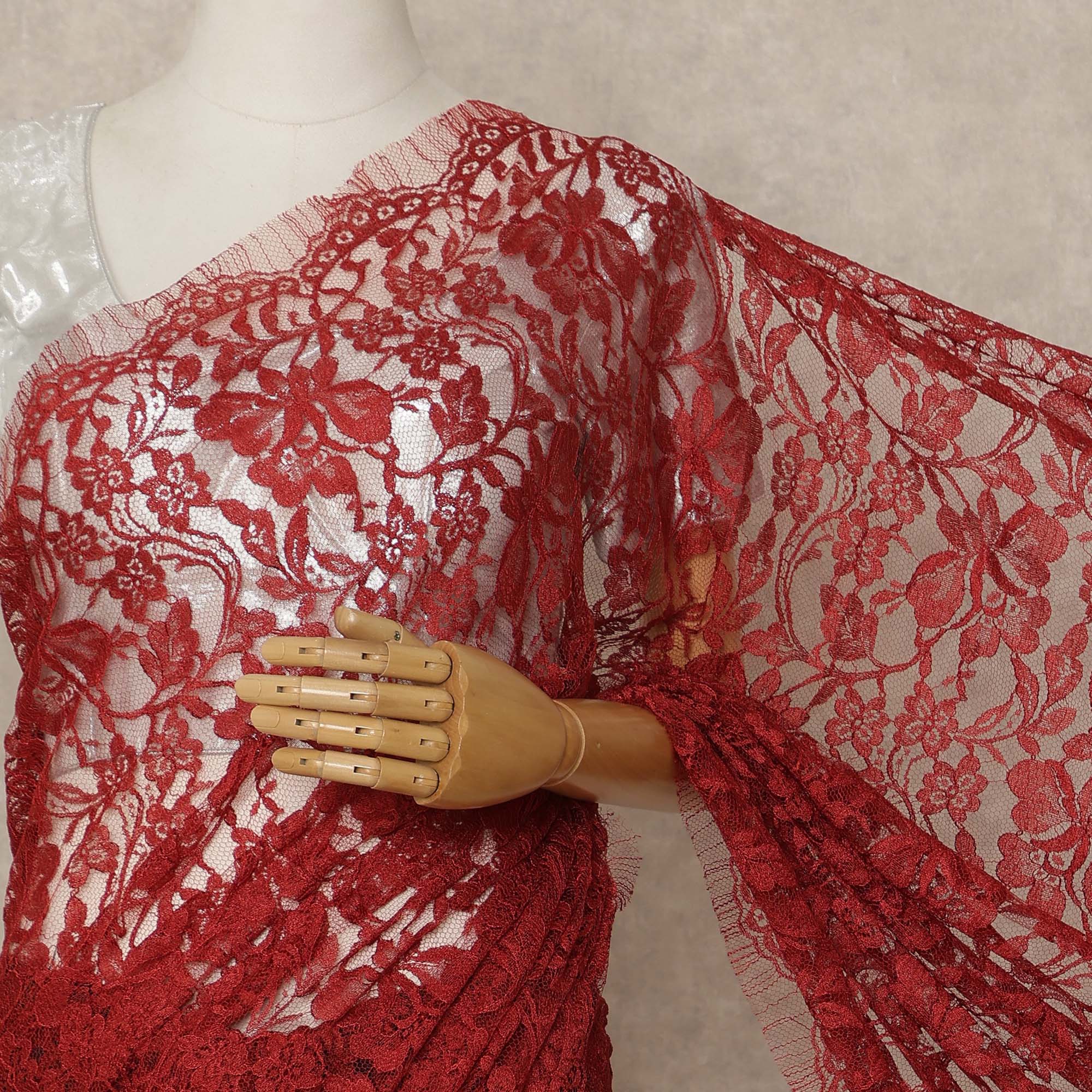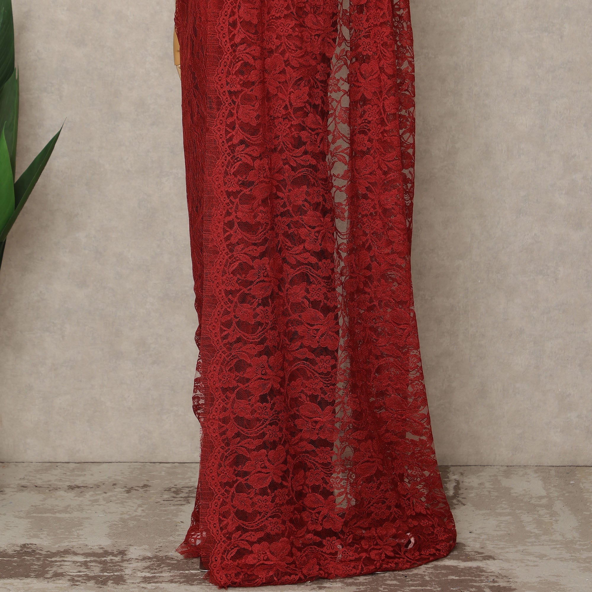 Crimson Red Premium French Chantilly Saree Lace Fabric 5.5 Meters x 110 Cms Width Elegant Floral Net Material From France Unstitched Blouse Not Included-D28157