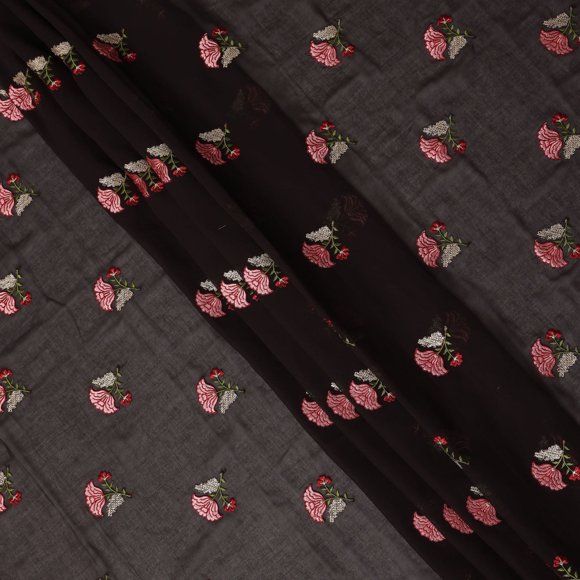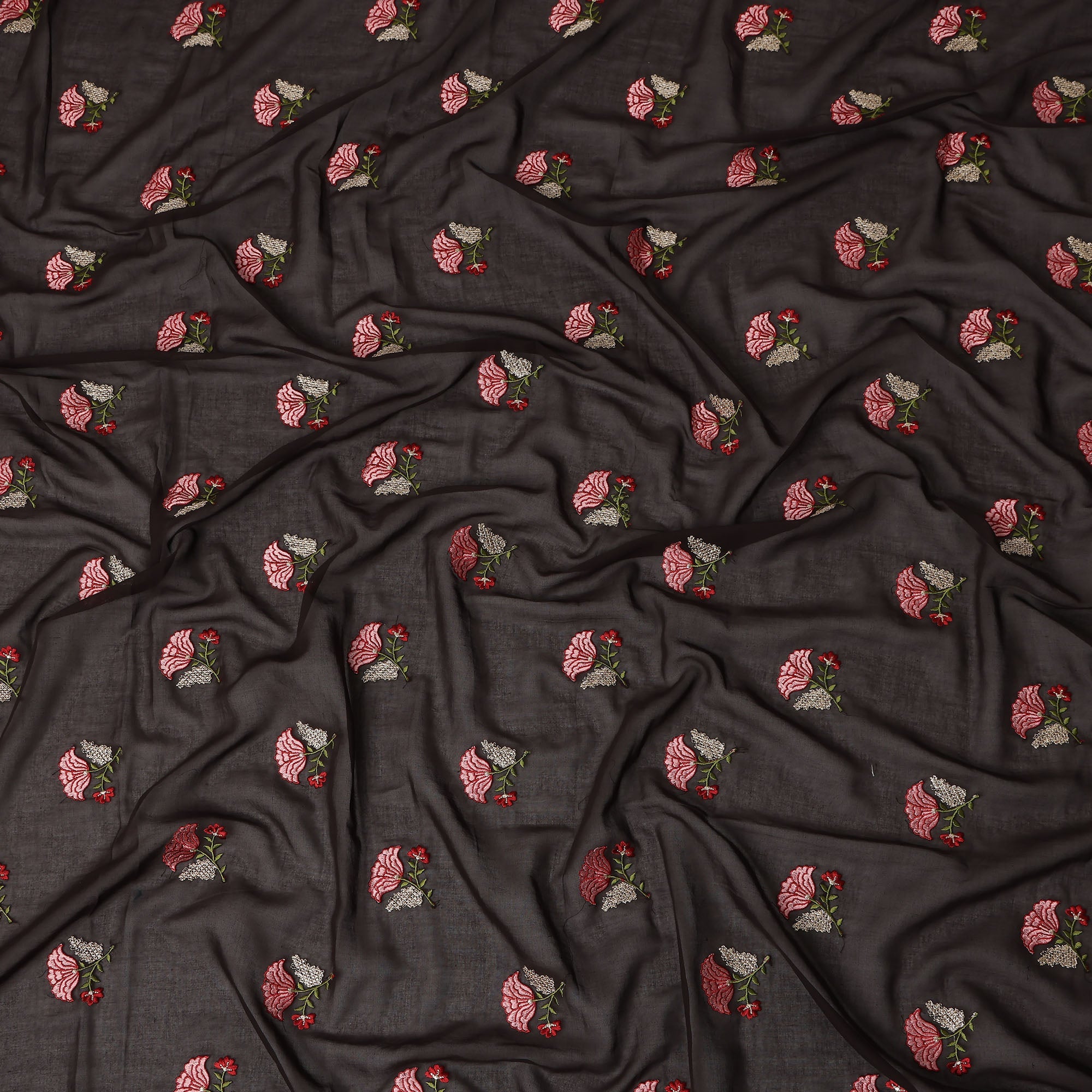 Dark Brown Traditional Sudanese Thobe Fabric Pure Cotton Voile 4.5 Meters Piece Width 140 Cms Soft Breathable Ethnic Wear Material with Elegant Woven Floral Motifs Made in India-D27590