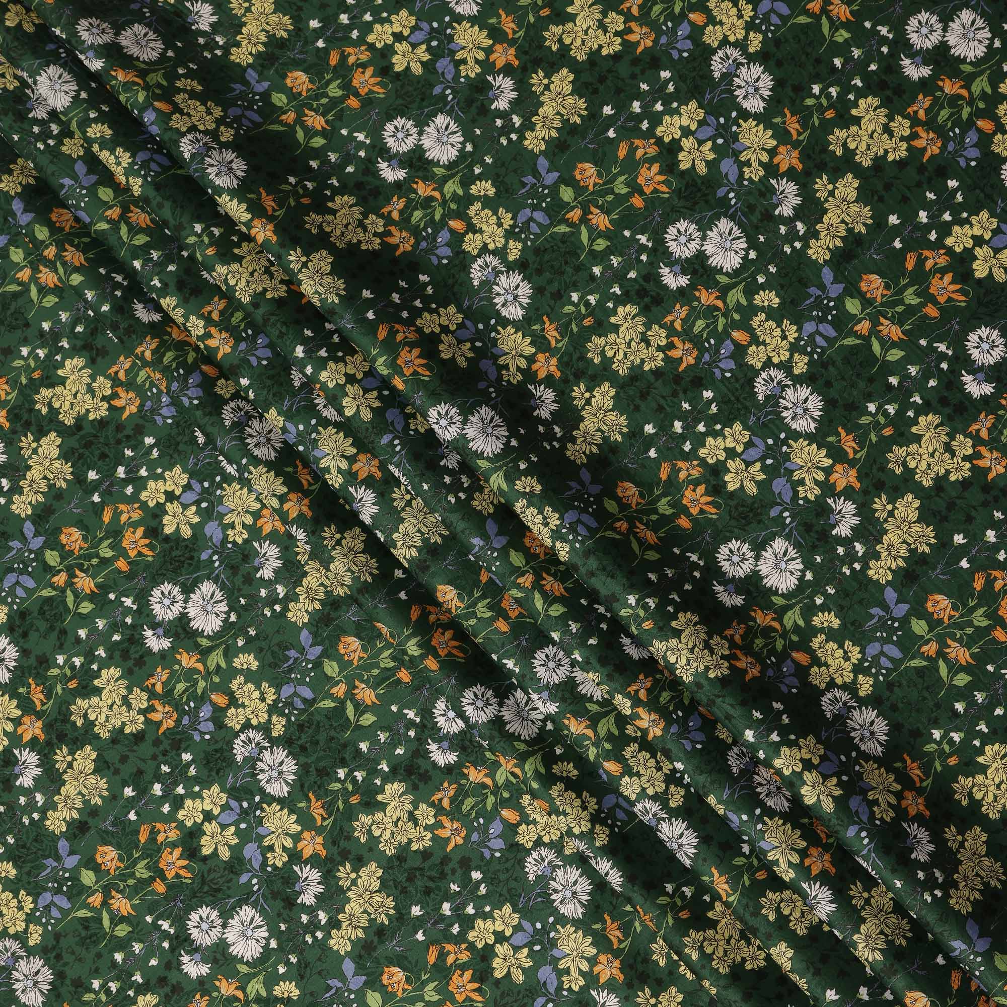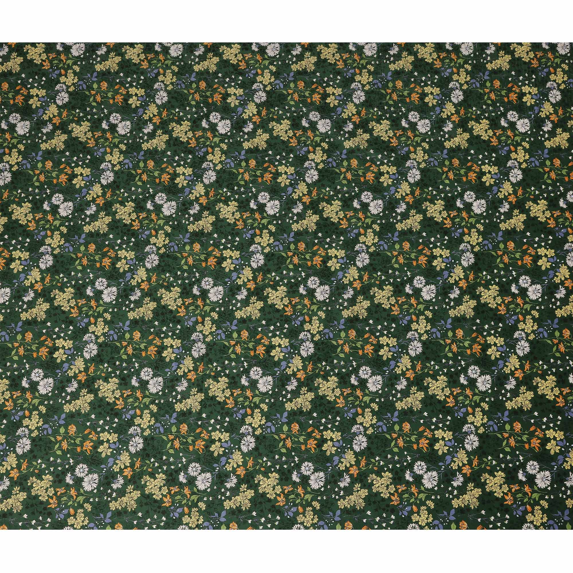 Dark Green Floral Printed Cotton Lawn Fabric All Over Wildflower Garden Design Soft Dressmaking Material 4.0 Meters Length 110 Cms Width India-D27654