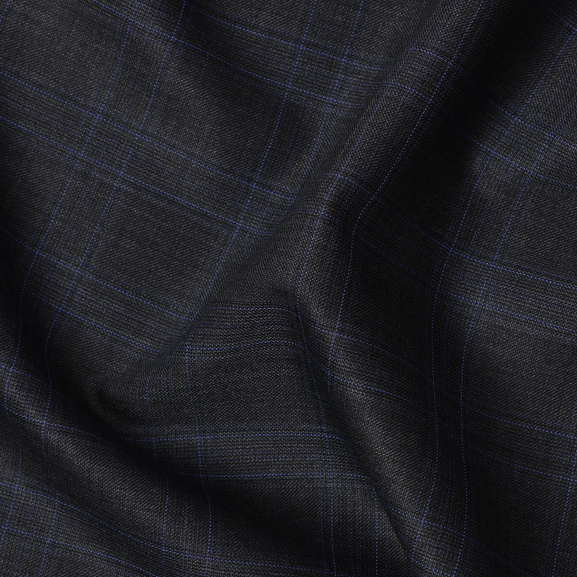 Dark Grey with Blue Check Italian Wool Suiting Fabric, 150 Cms, Italy-D25132