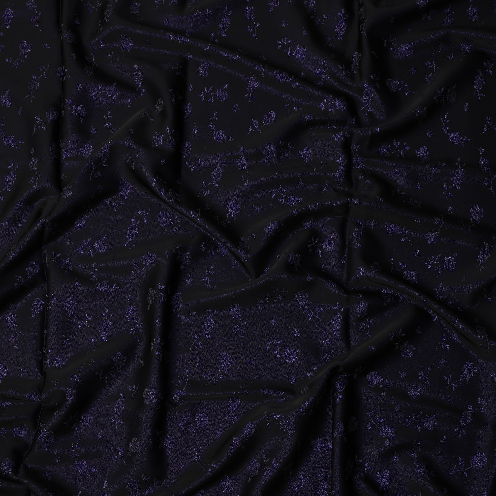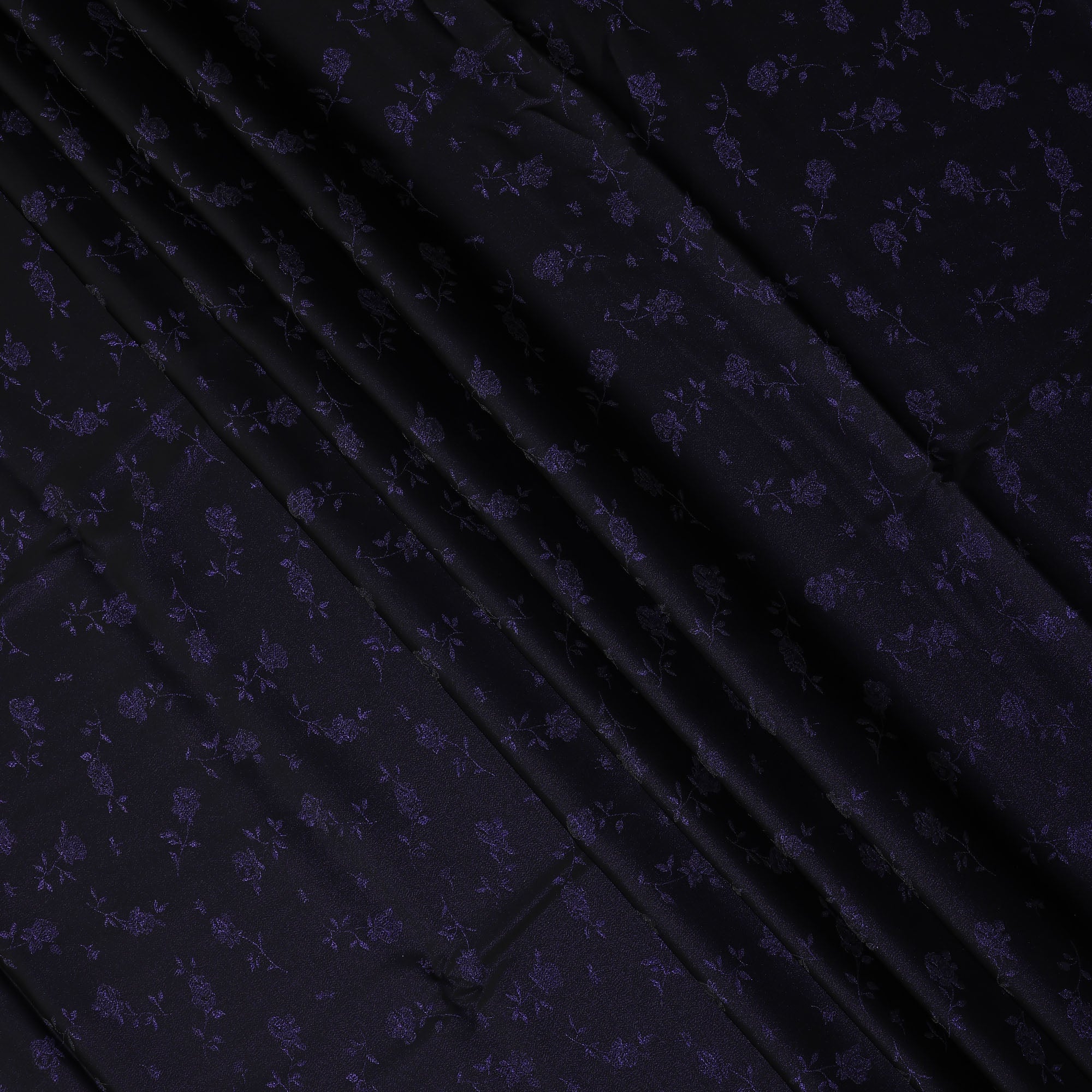 Dark Purple Floral Jacquard Pure Silk Satin Fabric with black base 140 Cms Width Made in China-D24914