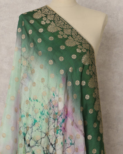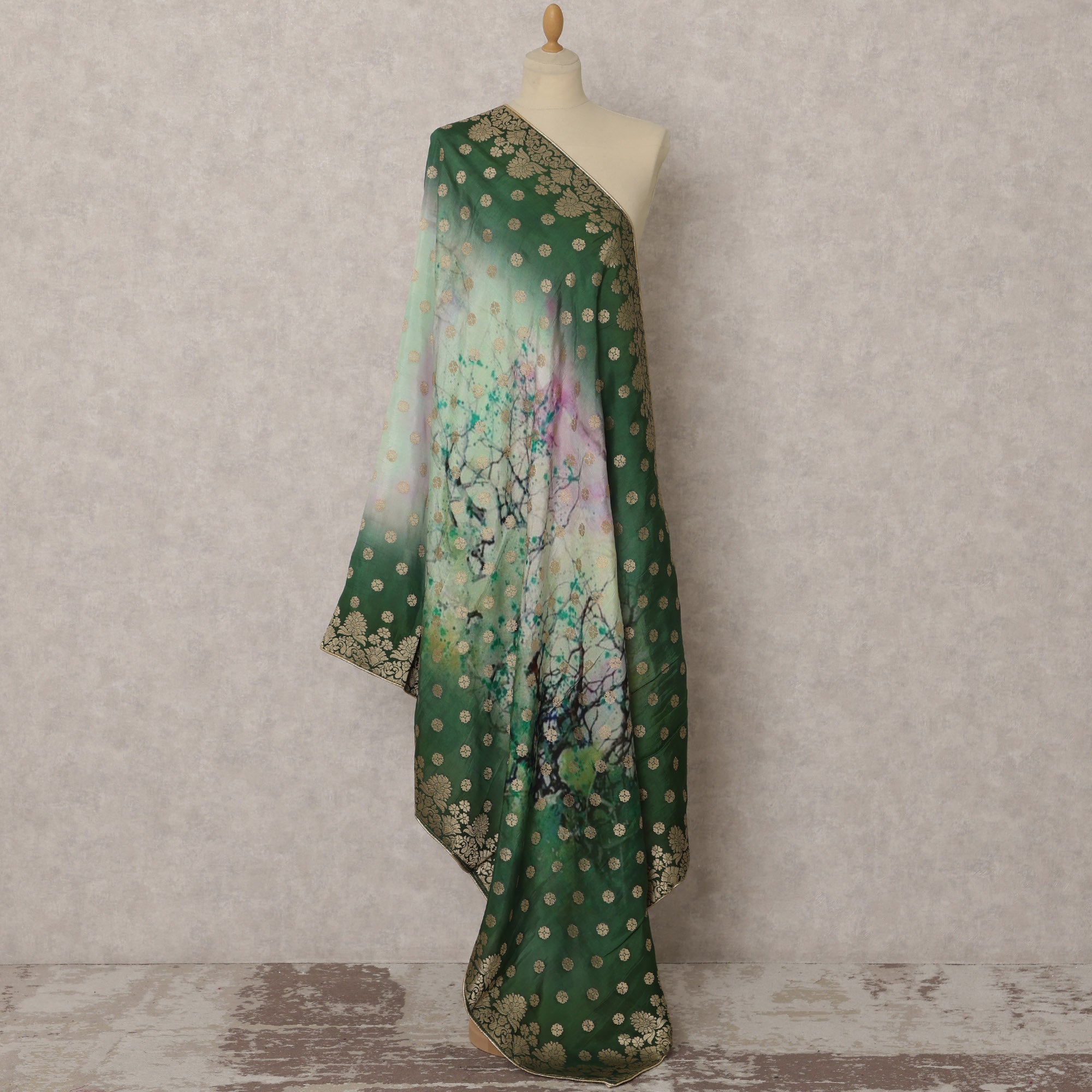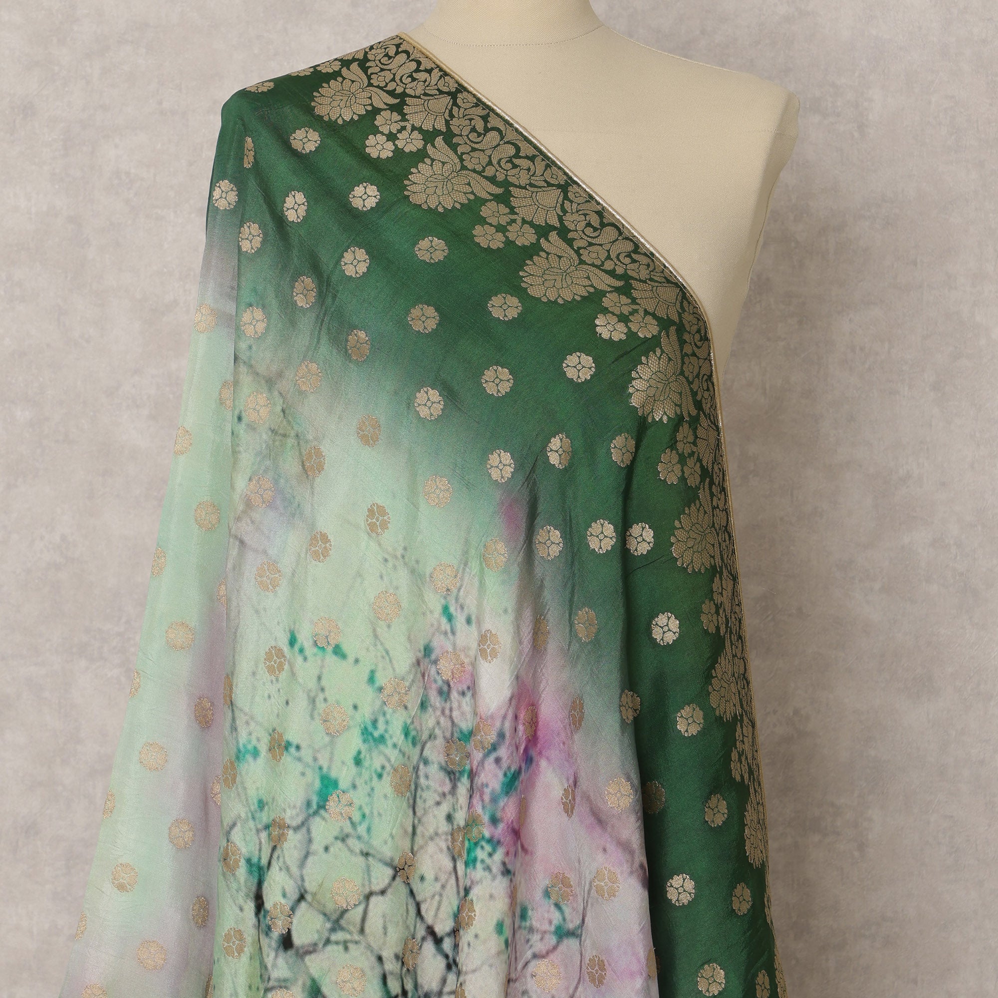 Deep Green Ombre & Gold Woven Synthetic Brocade Dupatta, Elegant Ethnic Stole, 230X95 CMS, India-D22375