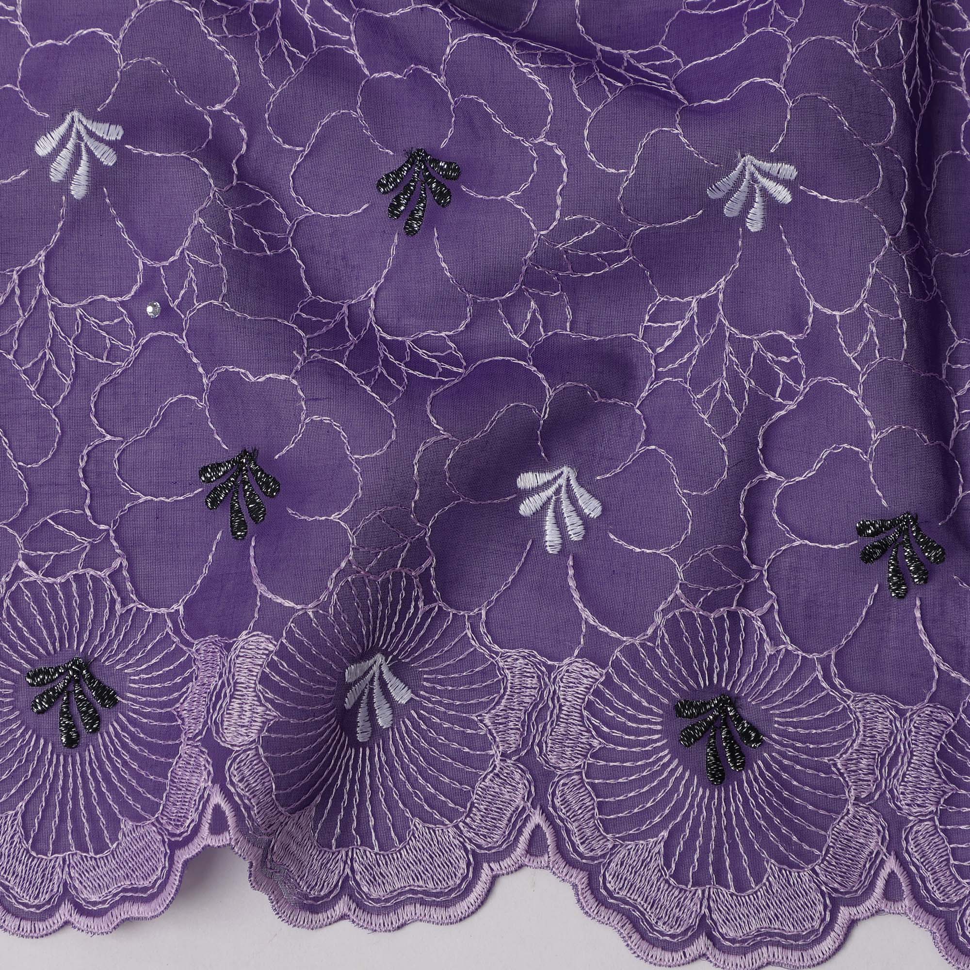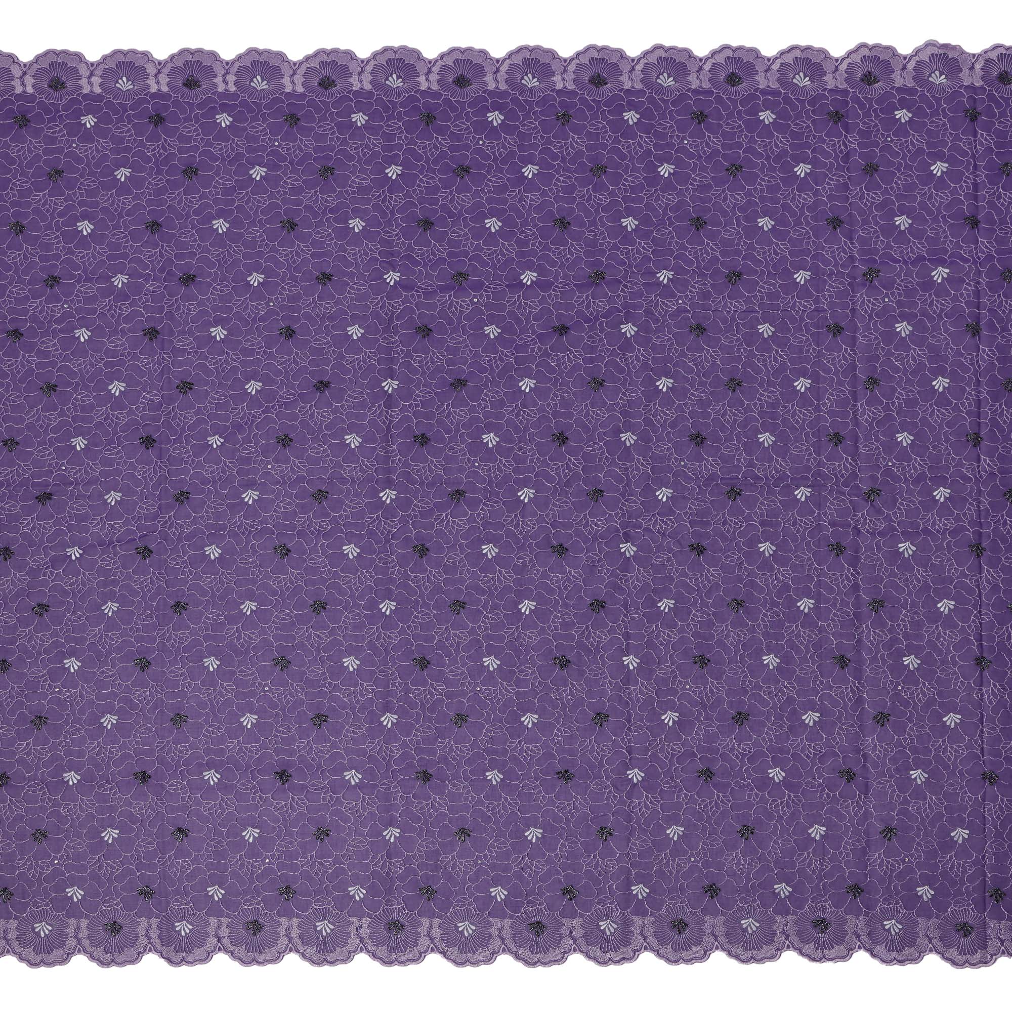 Deep Purple Traditional Sudanese Thobe in Pure Cotton Voile Embroidery Fabric with Stone Work, 4.5 Mtrs Piece, 140 Cms Width, Made in Switzerland-D23273