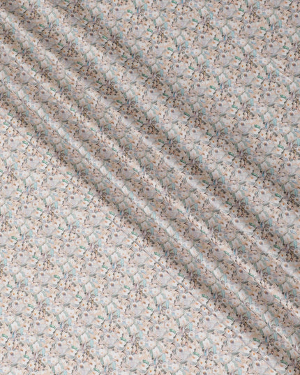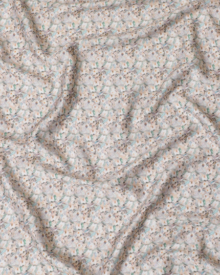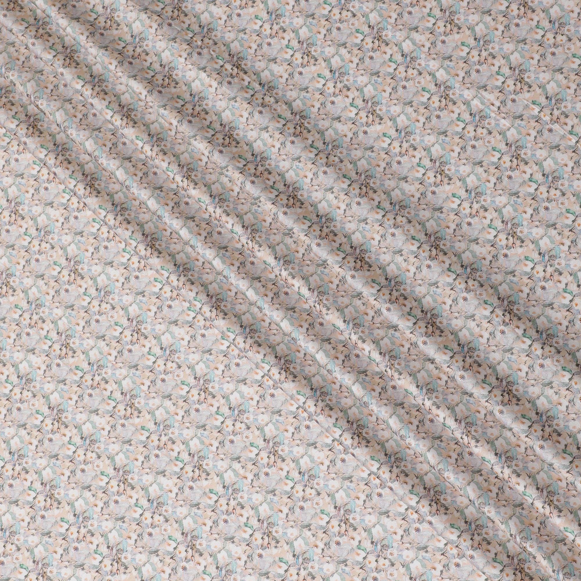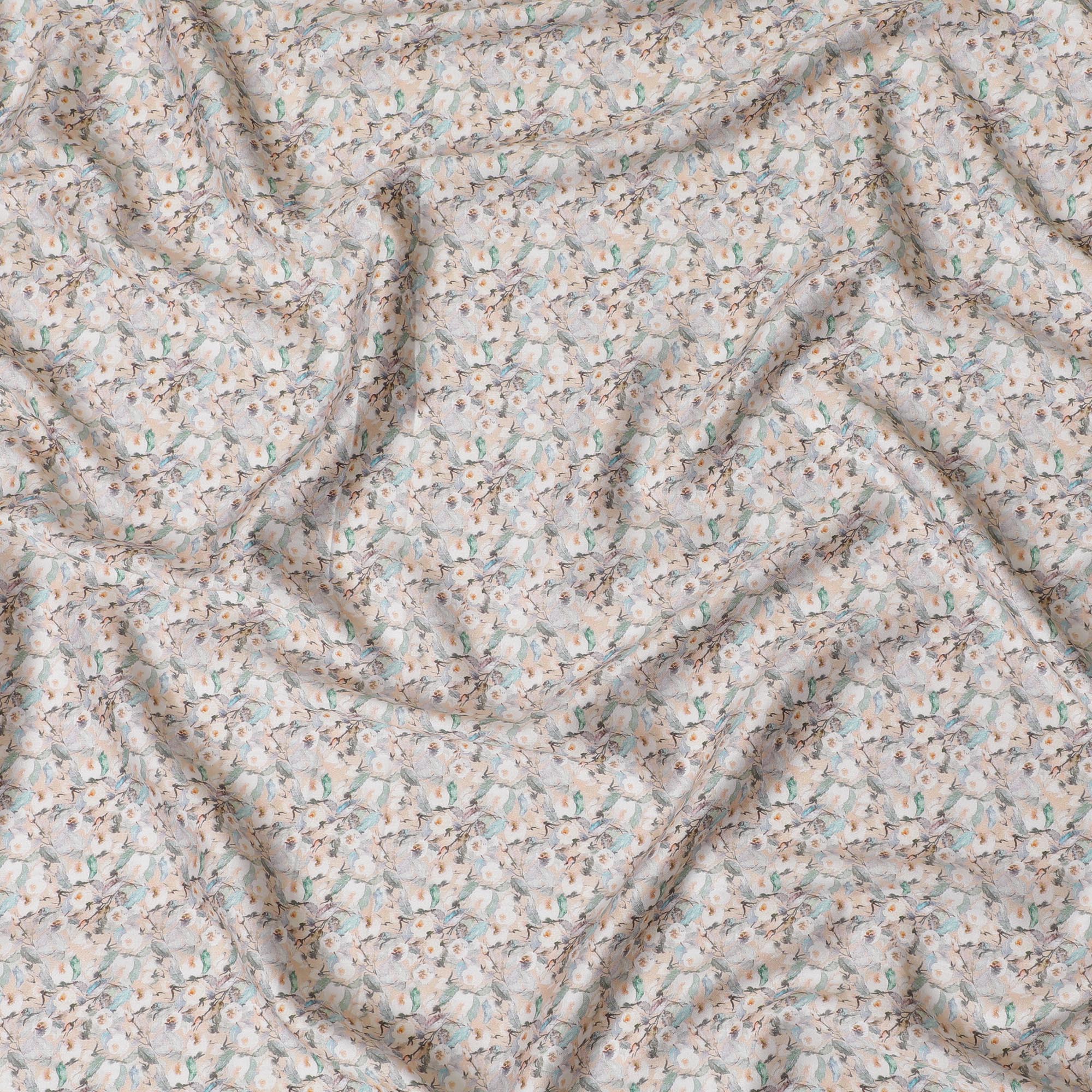 Delicate Cream with Pastel Floral Cotton Satin Fabric, 110 cm Width-20062